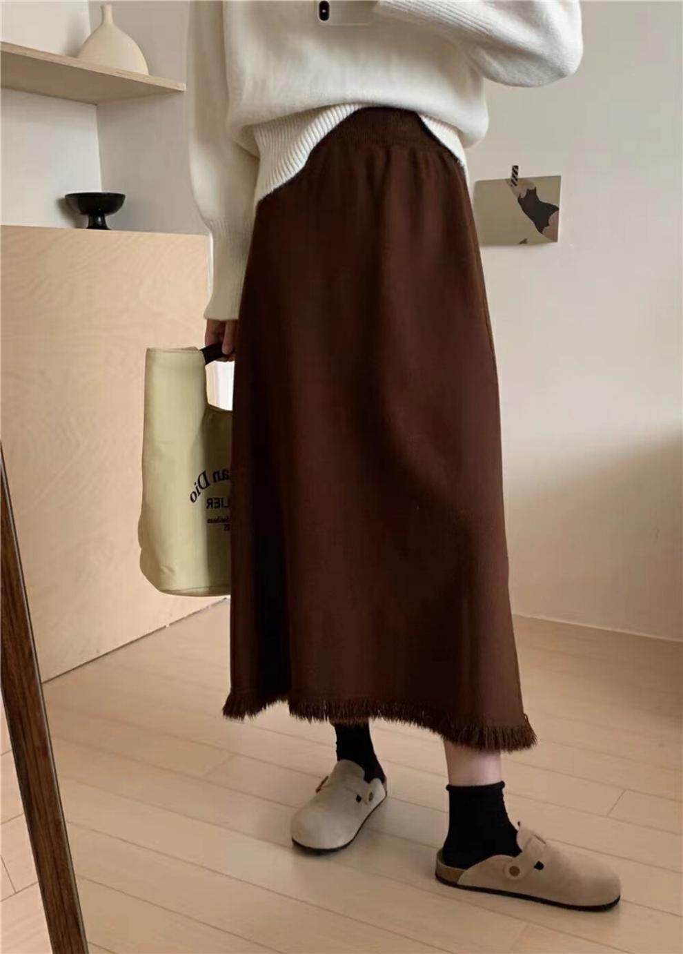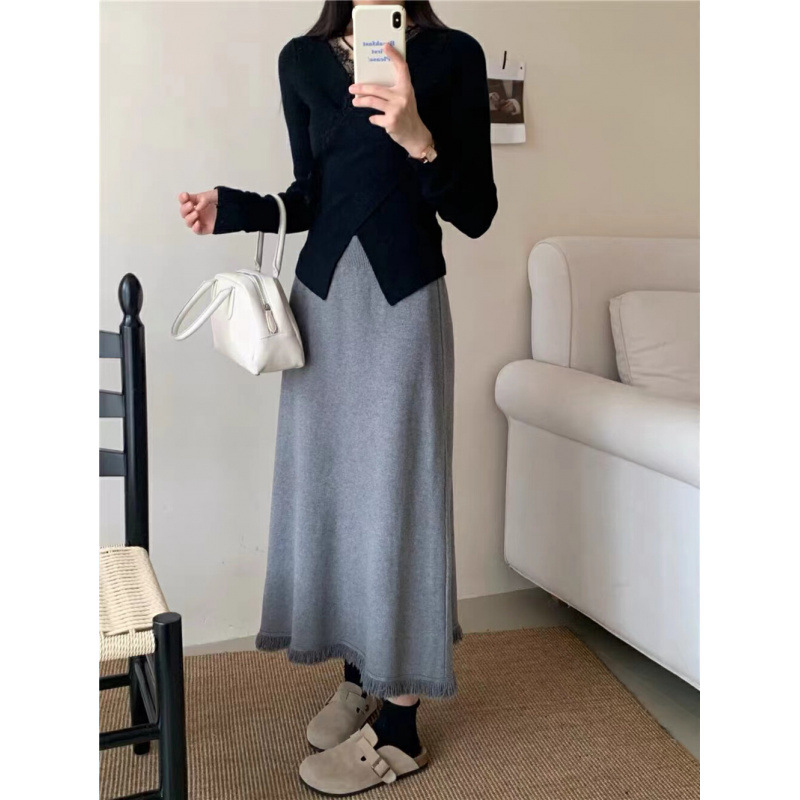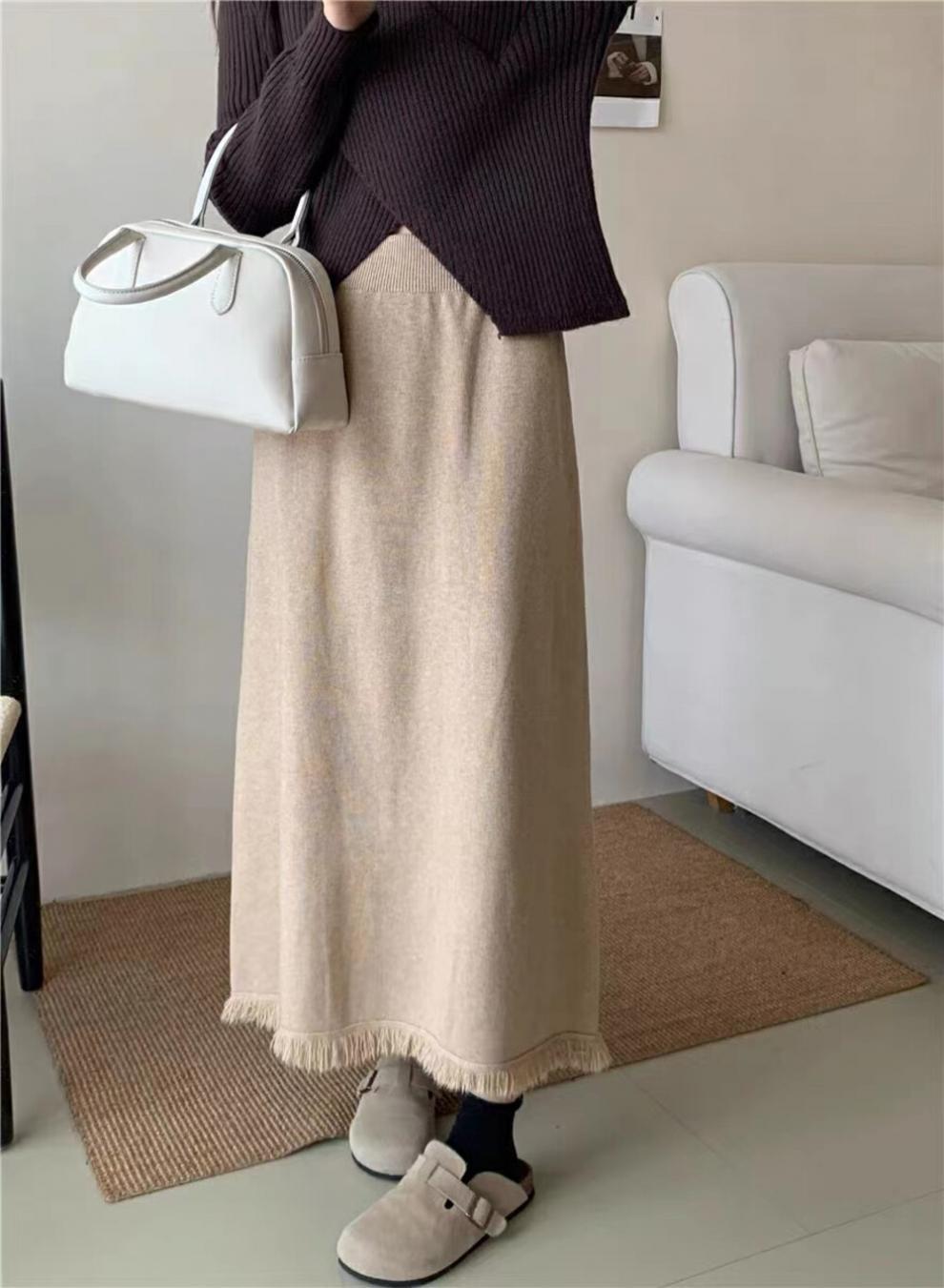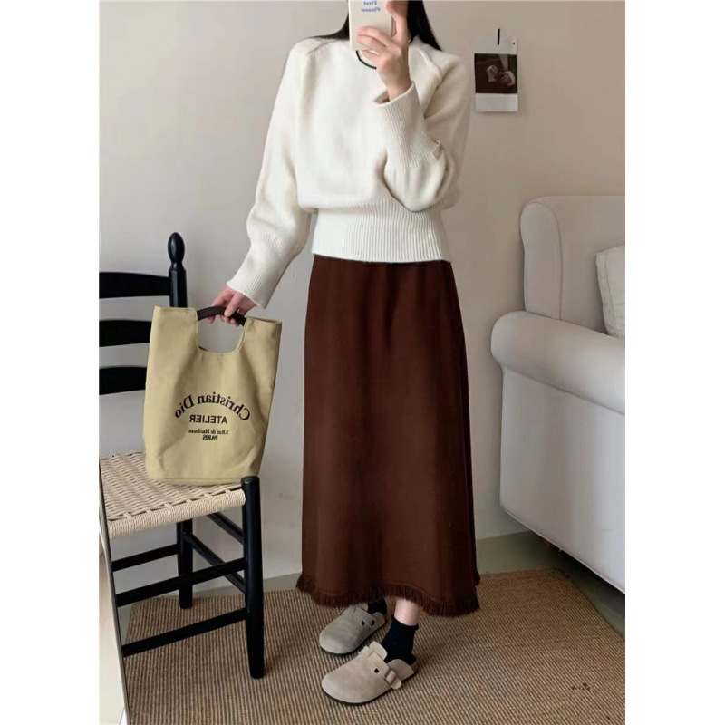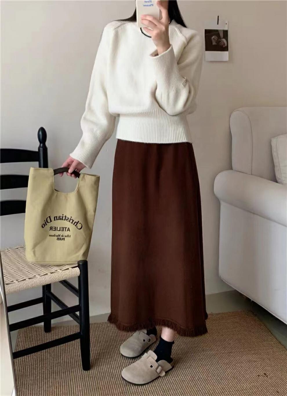 두꺼운 미디 헝겊, 니트 스커트 여성용 2024 겨울 새 스타일 디자인 센스 스트레이트 튜브 트렌디 스커트스토어 가기