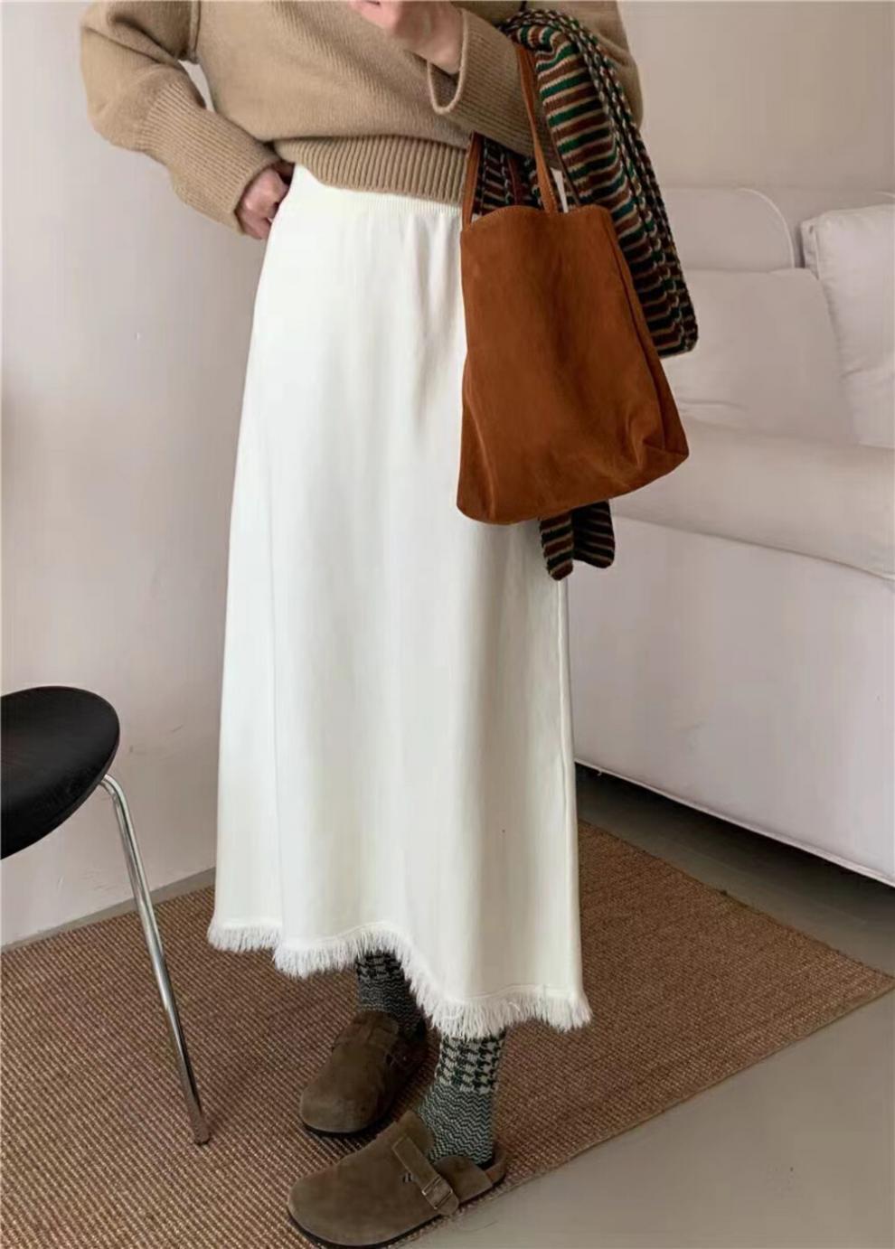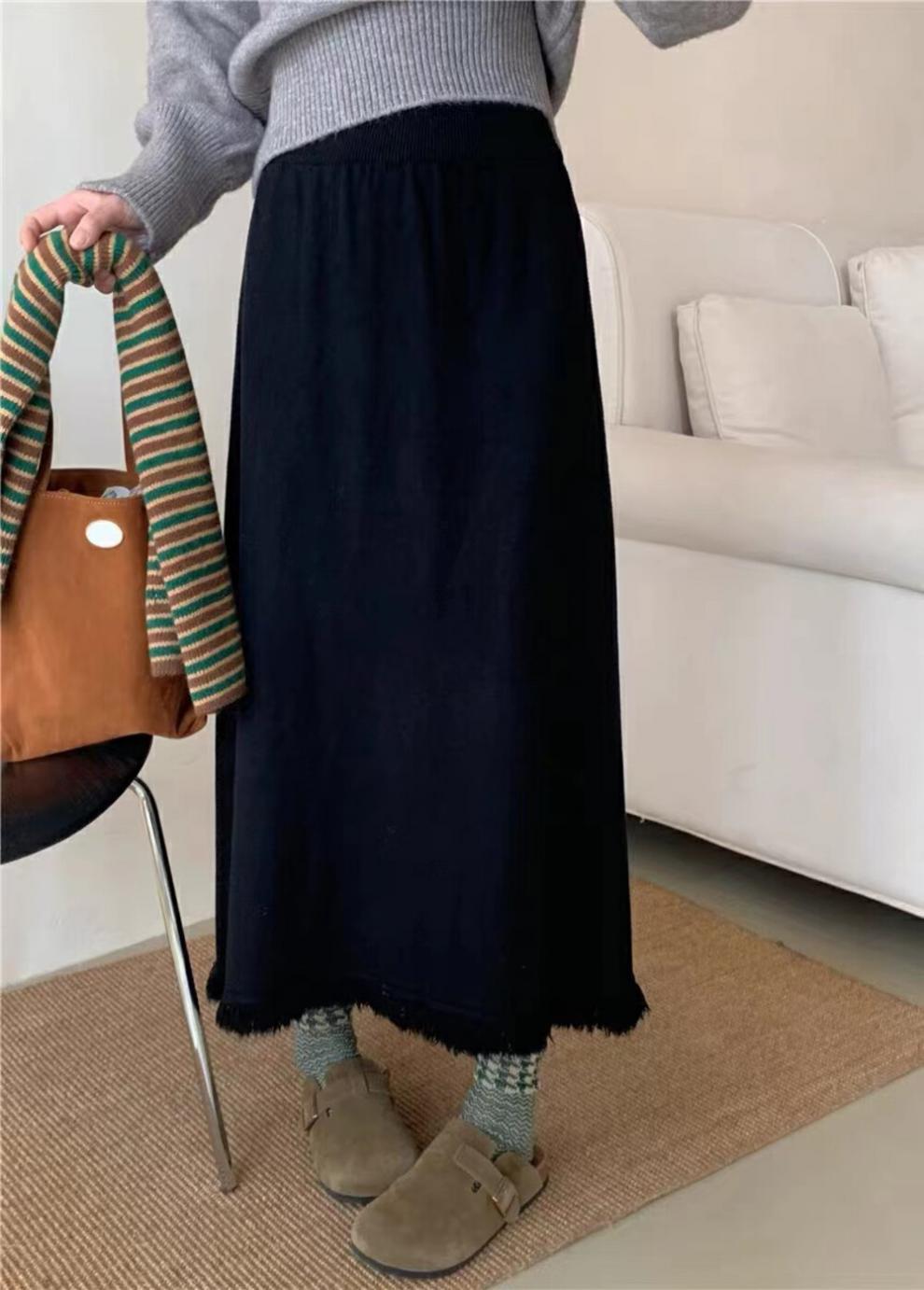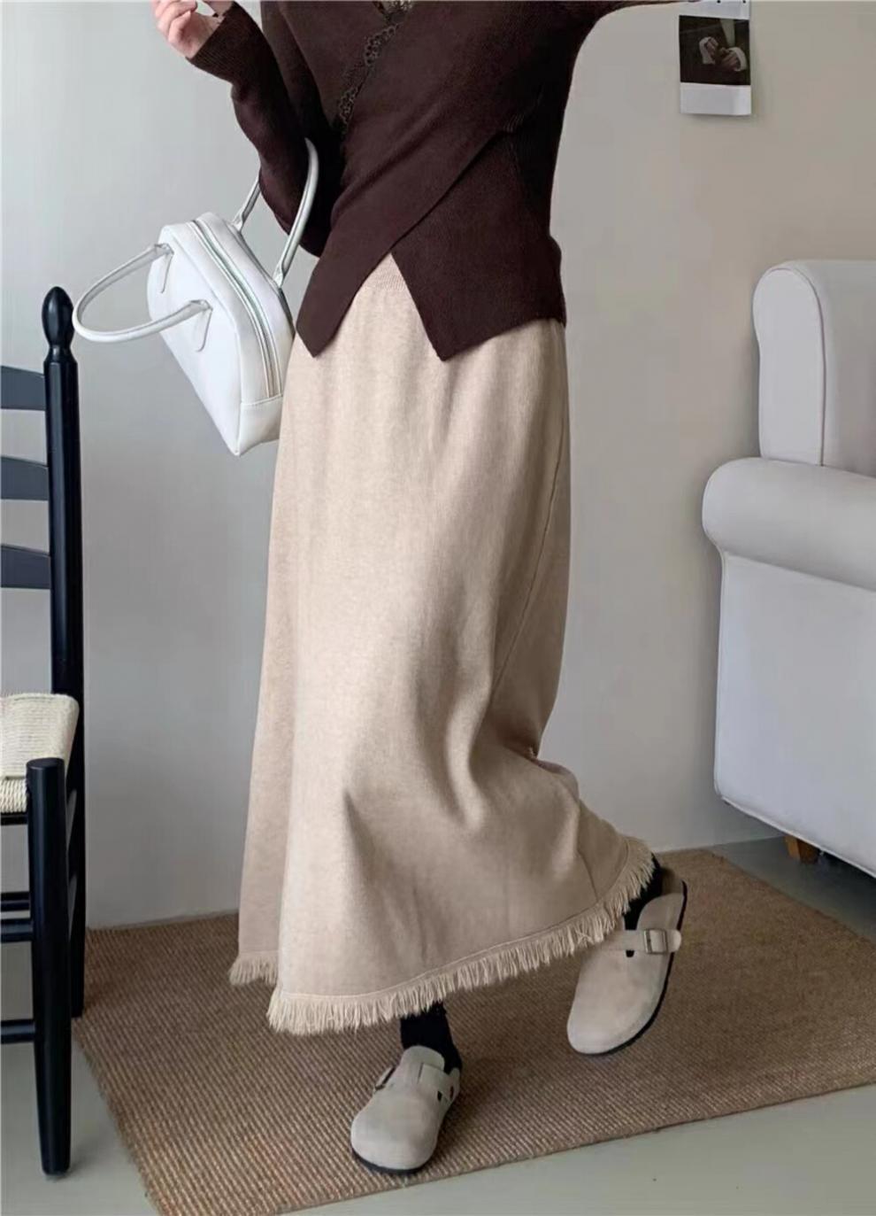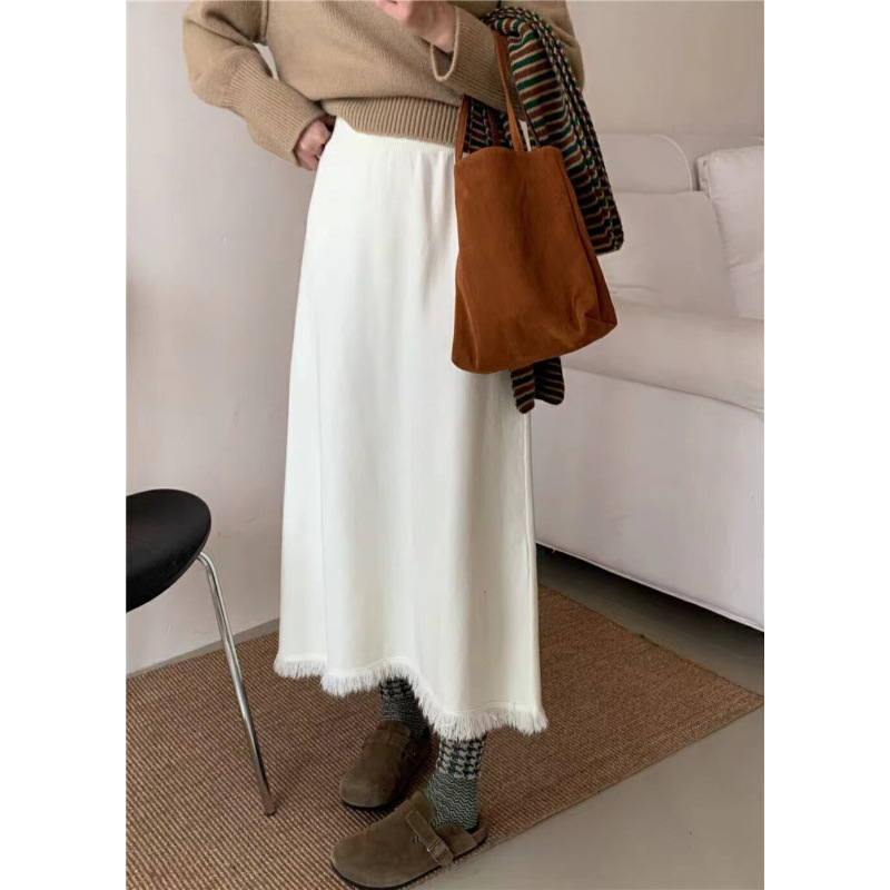 두꺼운 미디 헝겊, 니트 스커트 여성용 2024 겨울 새 스타일 디자인 센스 스트레이트 튜브 트렌디 스커트스토어 가기