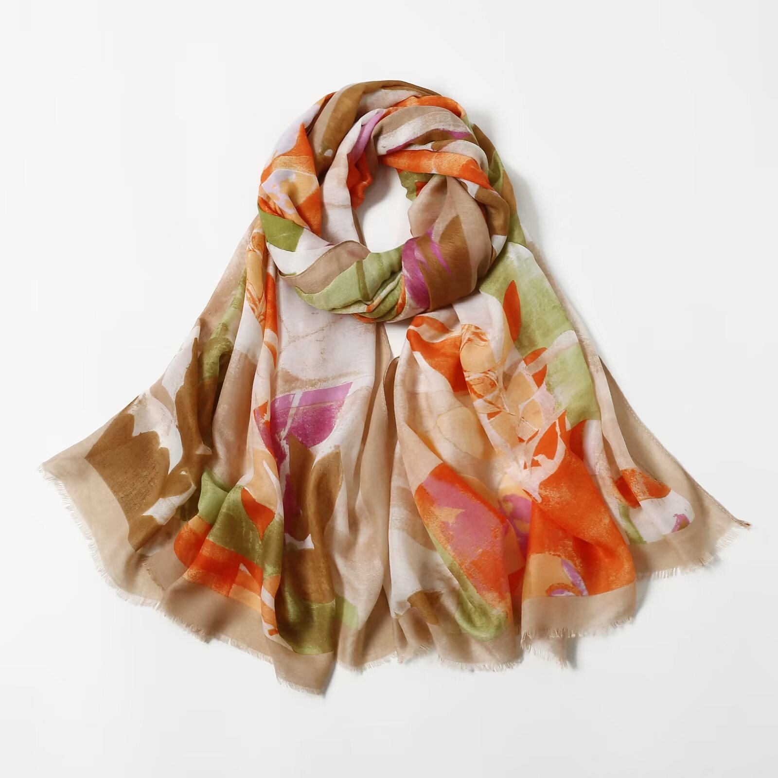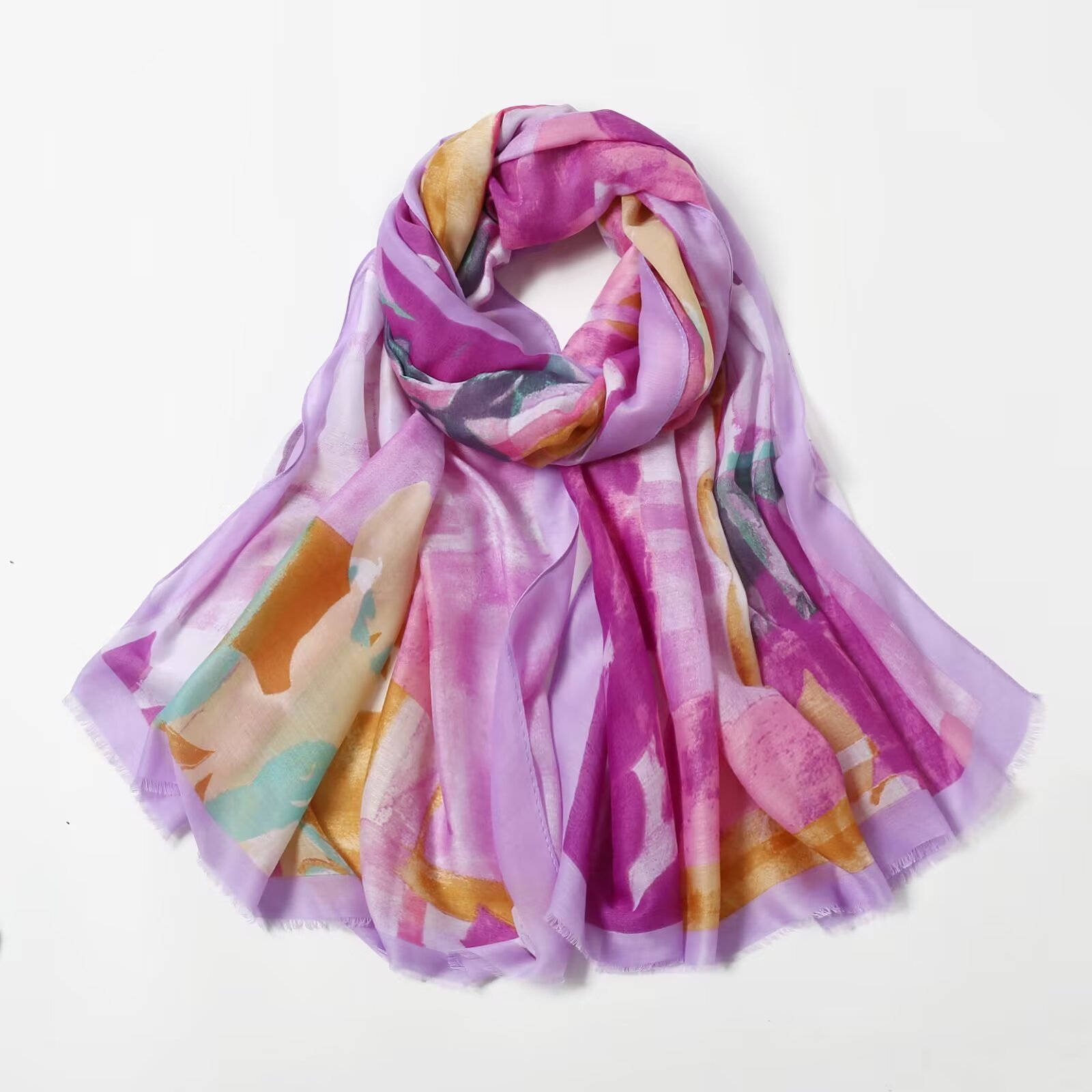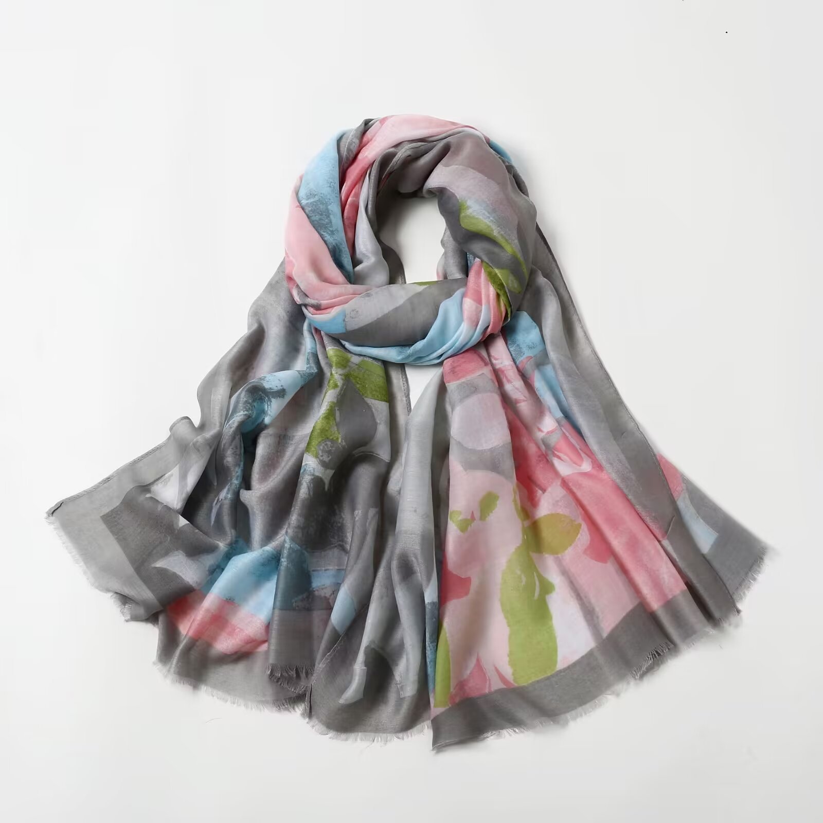 가을 겨울용 여성용 새틴 스카프, 컬러풀한 그라데이션 느낌의 부드러운 스카프, 유럽과 미국에서 인기 있는 만능 프린트 숄