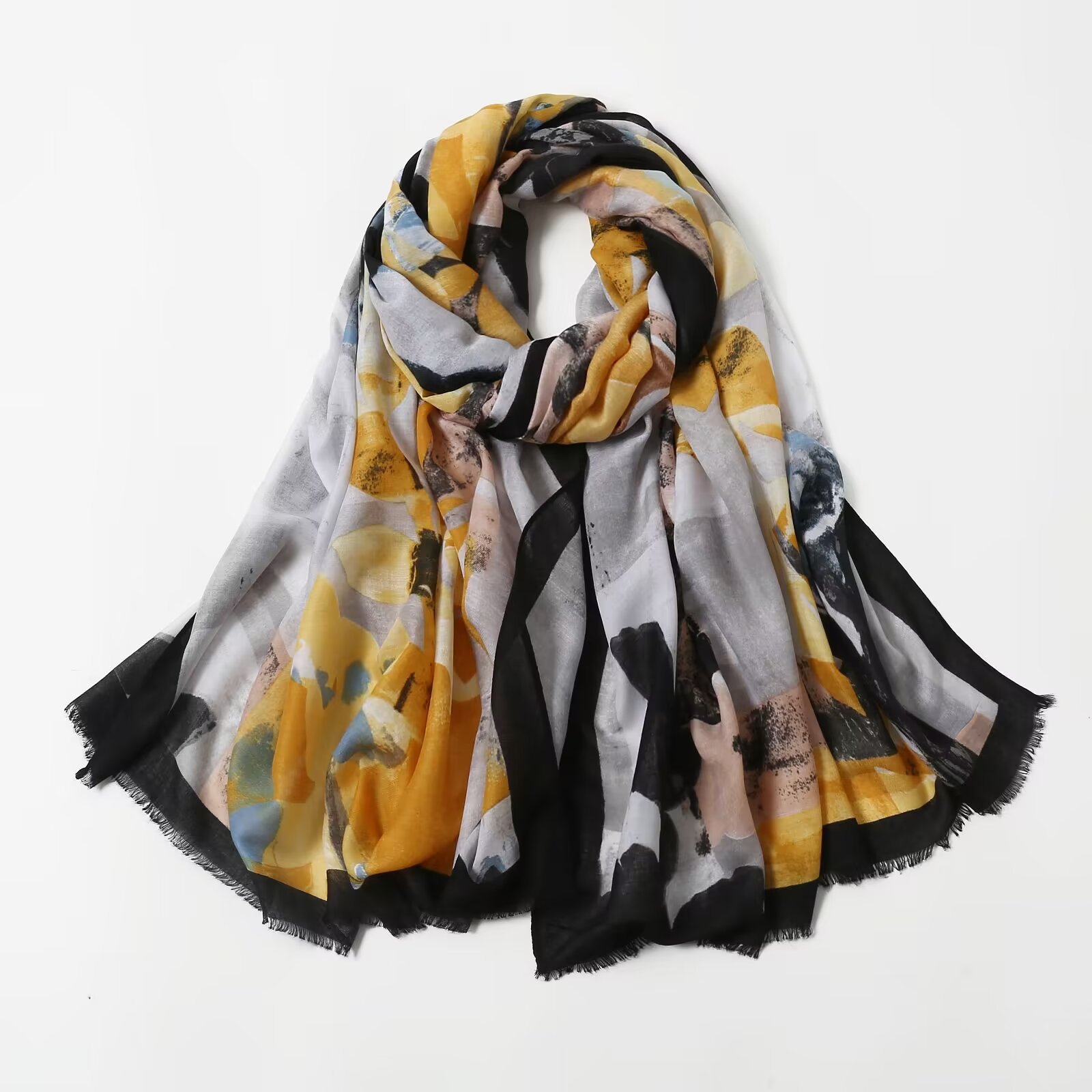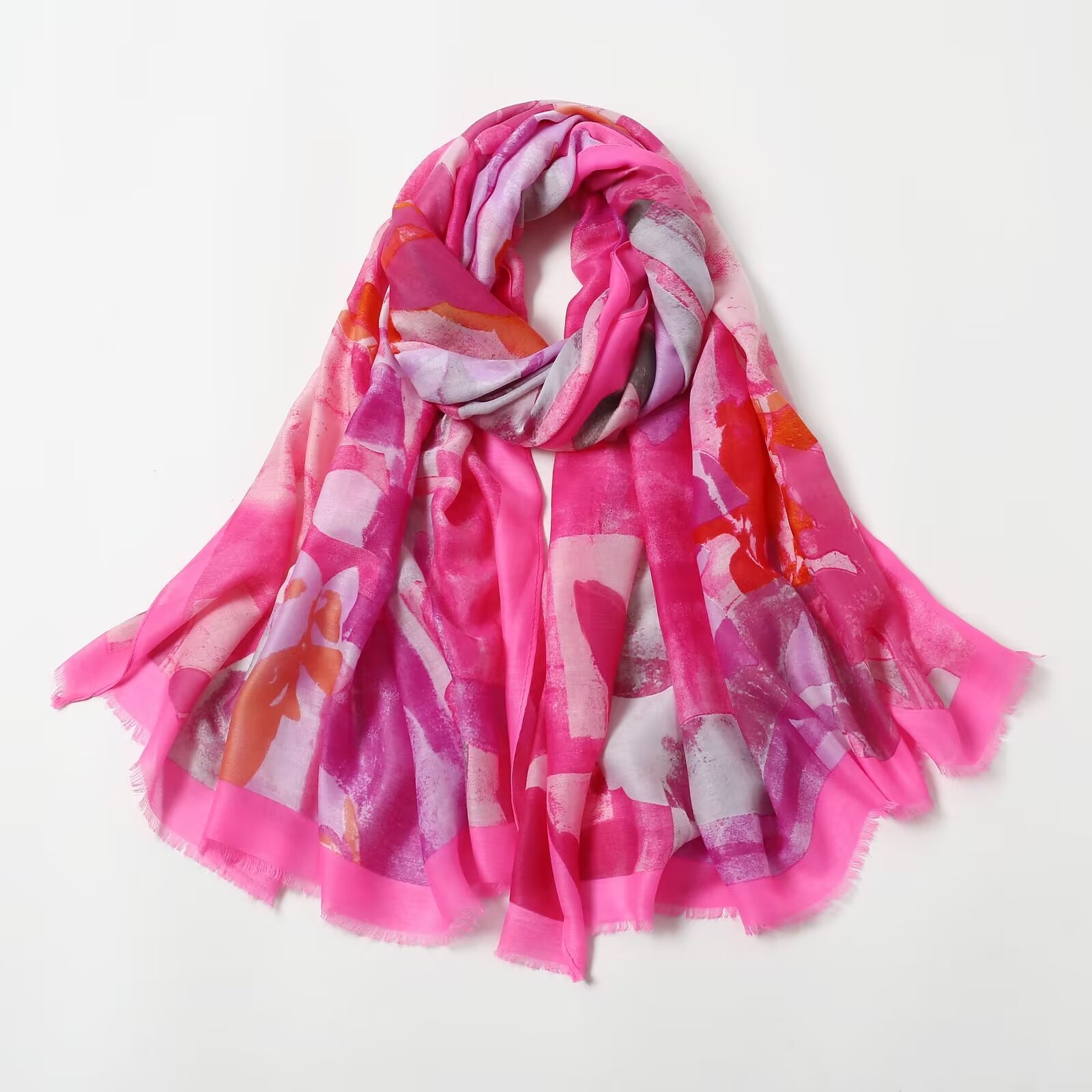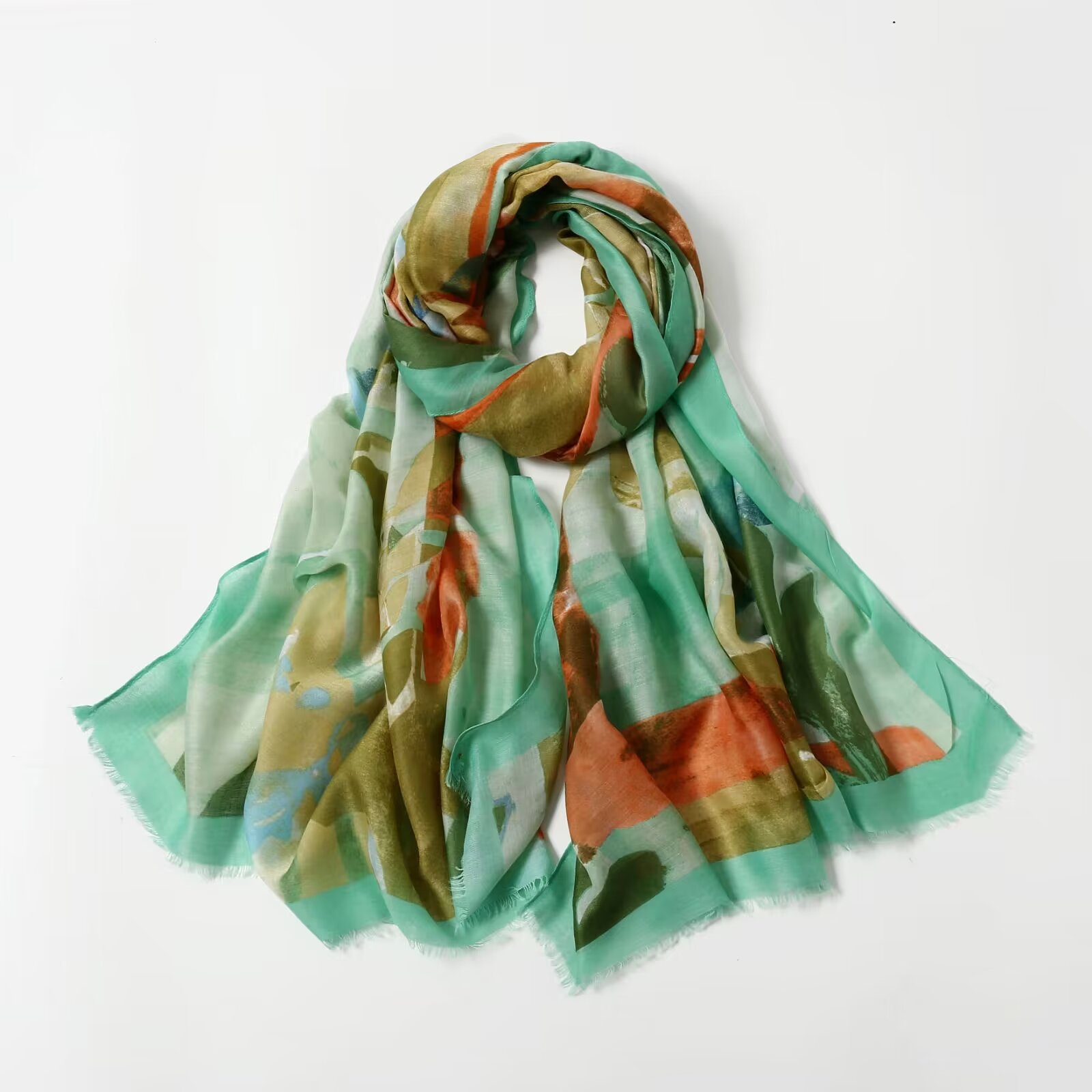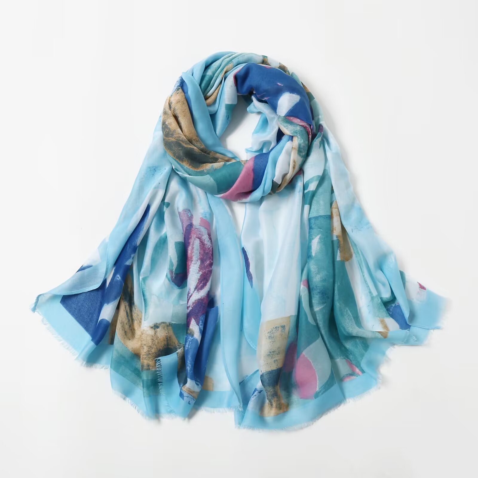 가을 겨울용 여성용 새틴 스카프, 컬러풀한 그라데이션 느낌의 부드러운 스카프, 유럽과 미국에서 인기 있는 만능 프린트 숄