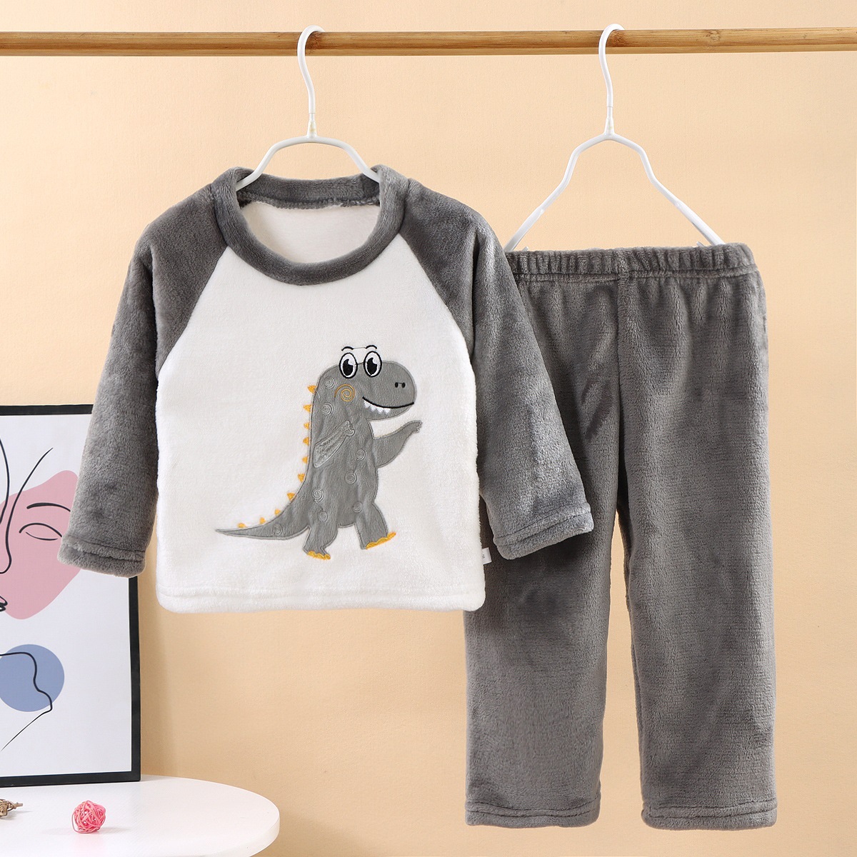 가을과 겨울 세트 어린이 플란넬 잠옷 기모 큰 어린이를위한 두꺼운 소년 소녀 집 옷 따뜻한 산호 양털스토어 가기