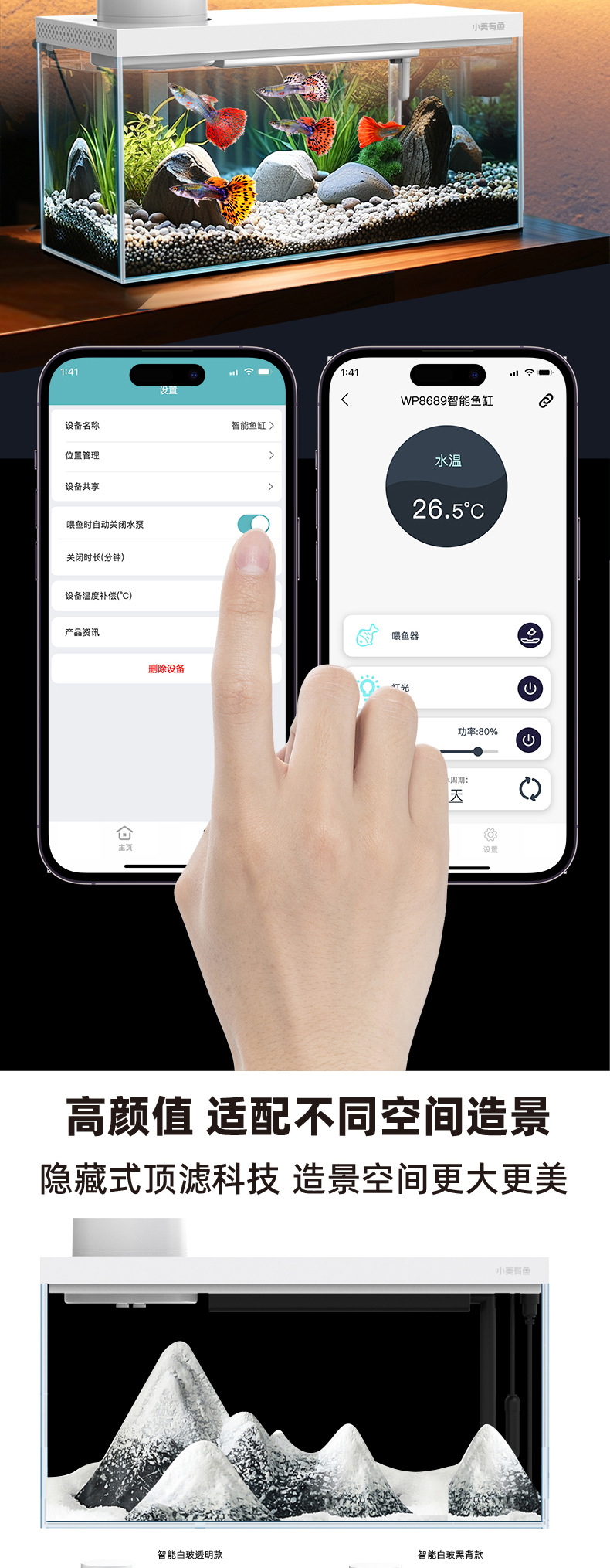 • (WiFi 버전) 소형 스마트 수조(유리탱크)