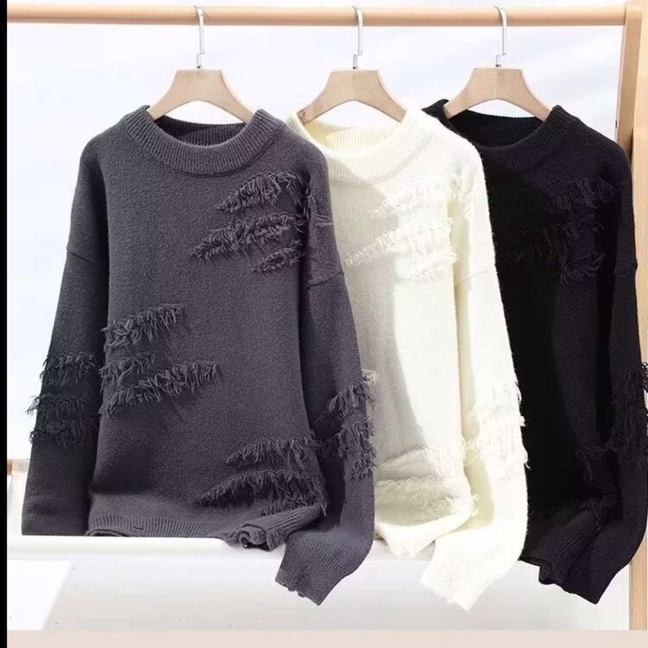 독특한 크루넥 스웨터 남자 가을 겨울 2024 기모 두꺼운 니트 스웨터 남자 레트로 게으른 스웨터 재킷스토어 가기