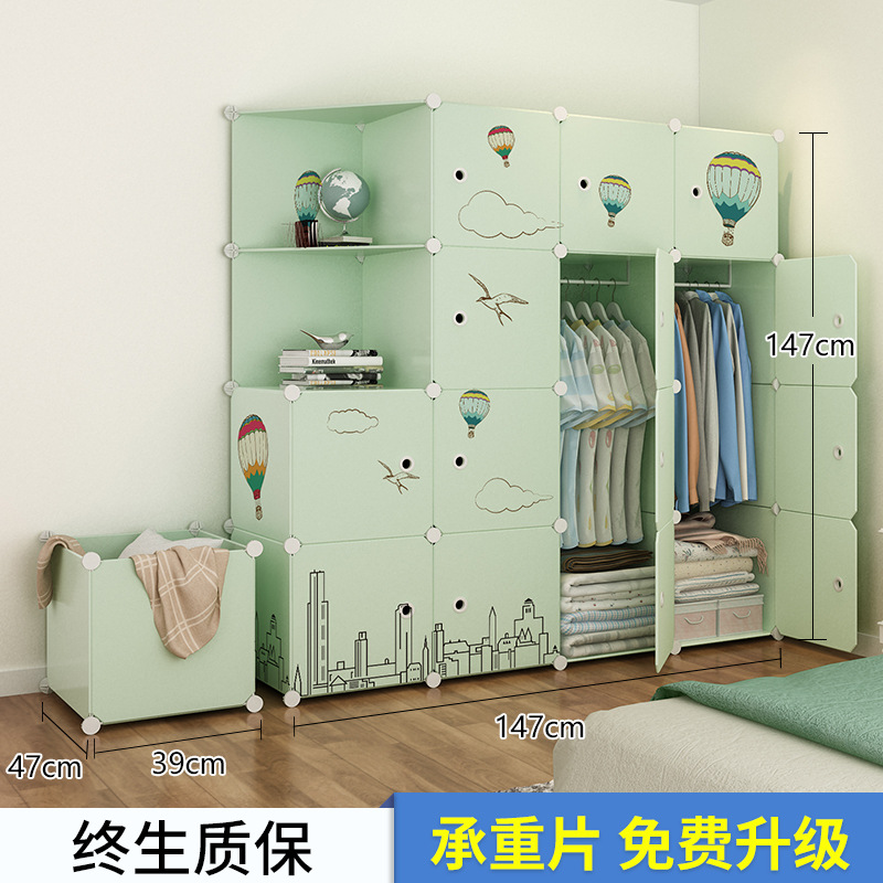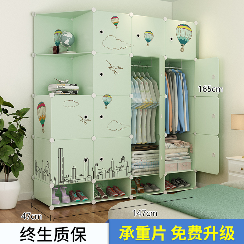 간단한 옷장 조립 보관 캐비닛 가정용 침실 임대실 어린이 저장 캐비닛 단단한 플라스틱 옷감