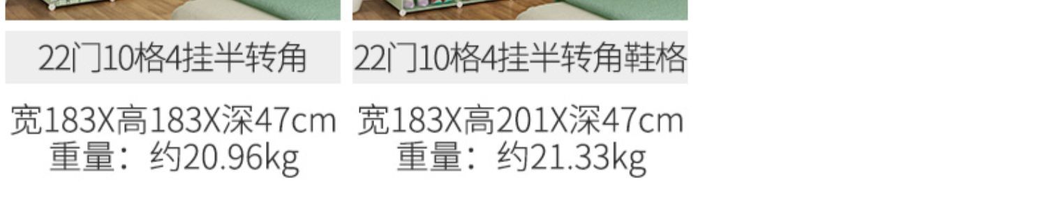 • 문 14개, 걸이형 반코너 3개, 신발 수납공간 있음 [녹색과 흰색 대비 색상]