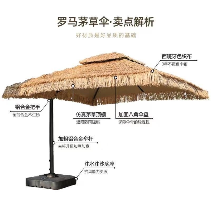 • 2.7m 쌍 상단 중앙 기둥 모조 밀짚 우산//베이스 없음