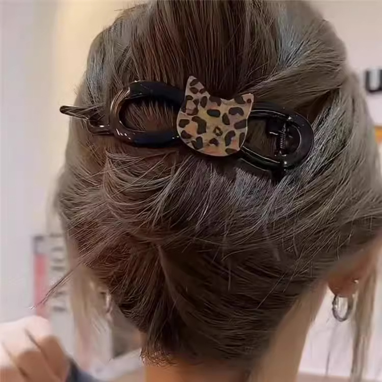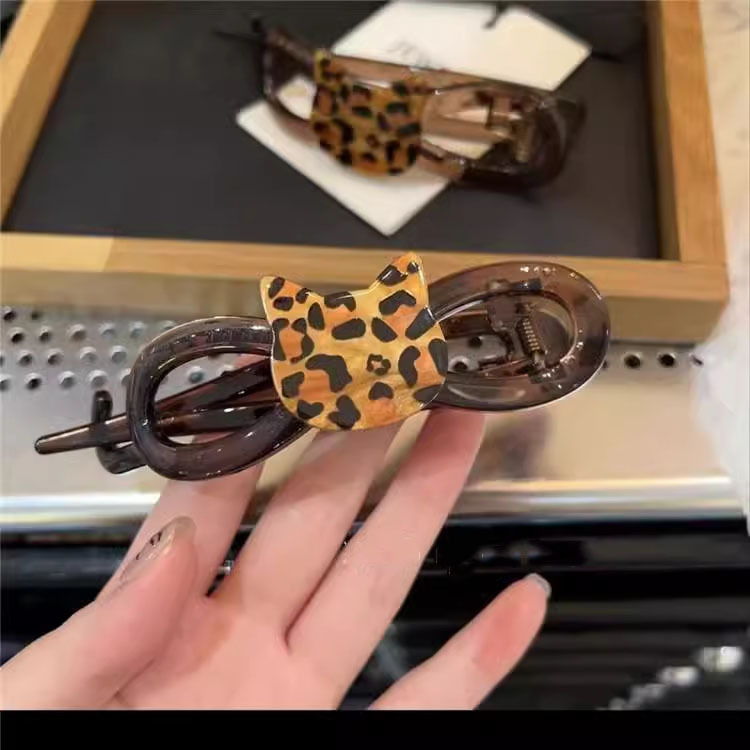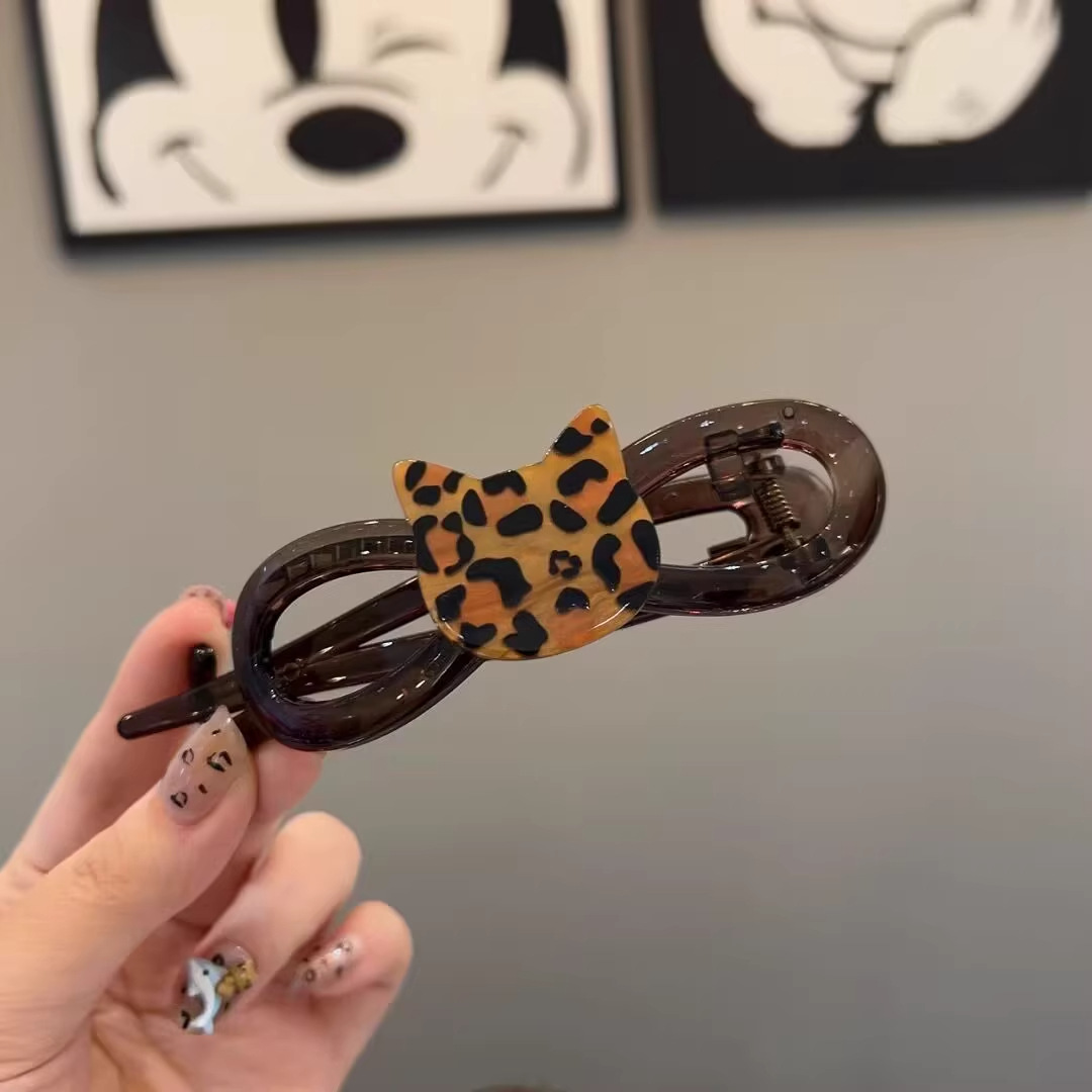귀엽고 귀여운 레오파드 고양이 트위스트 클립 하이 센스 헤드 클립 여성용 헤어 트렌디 올매치 헤드웨어