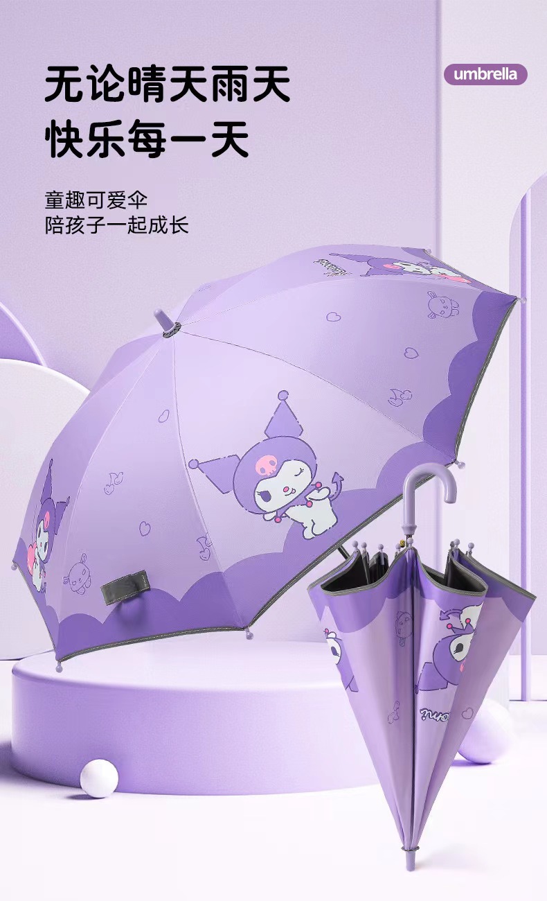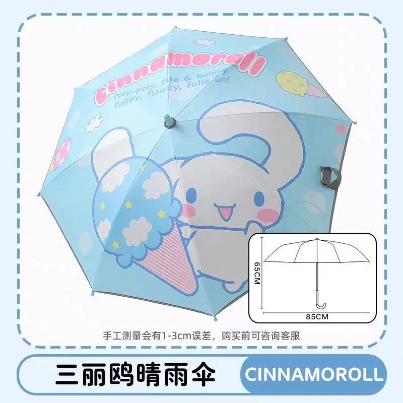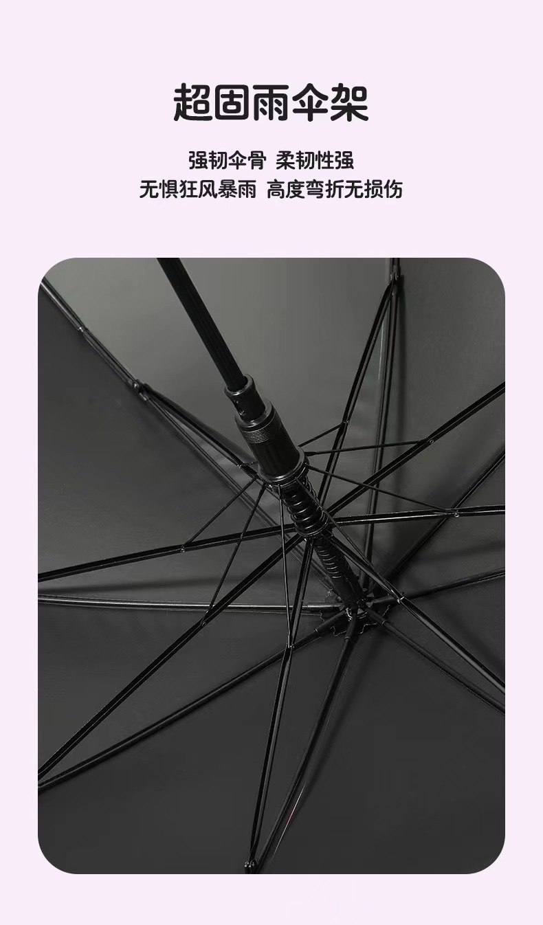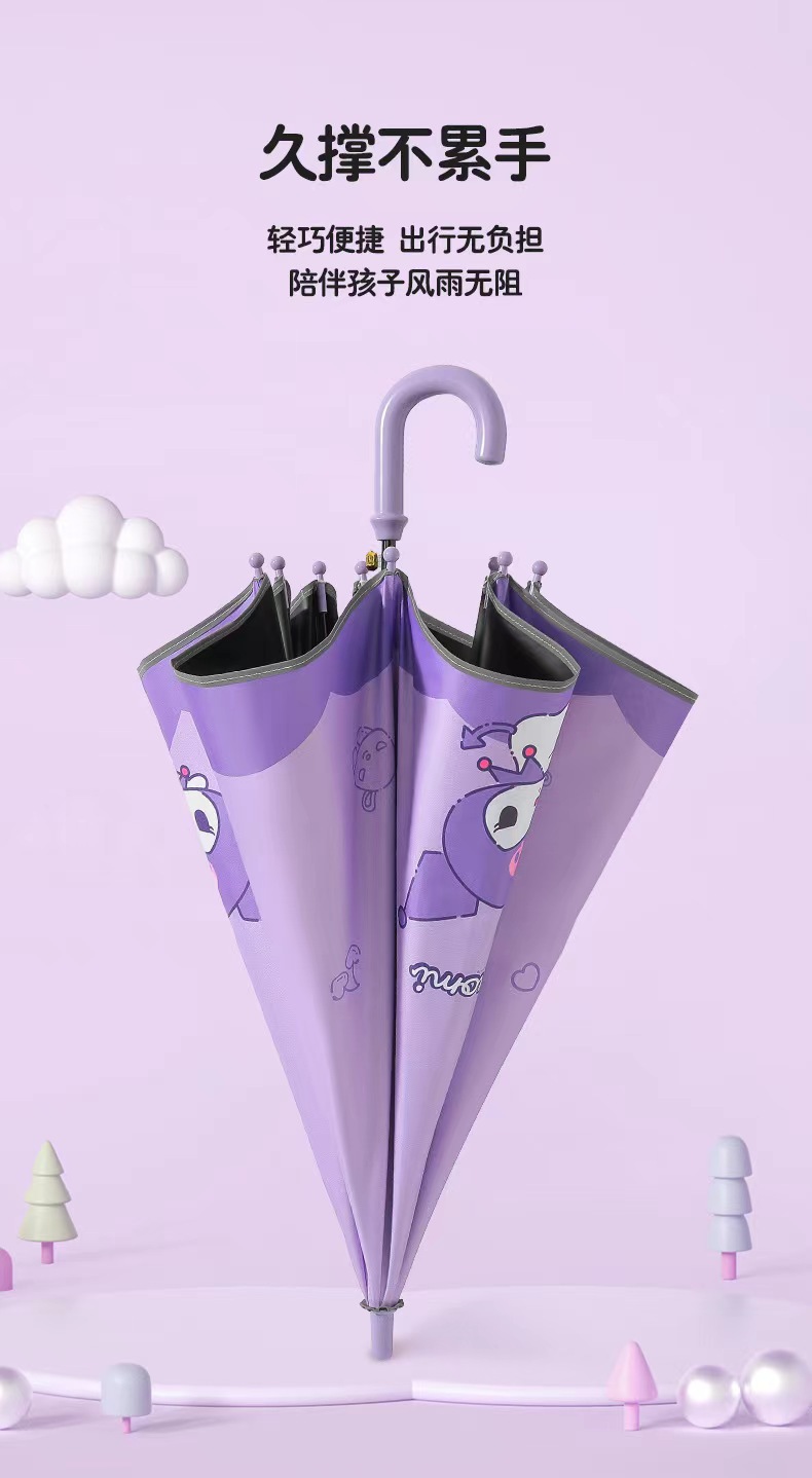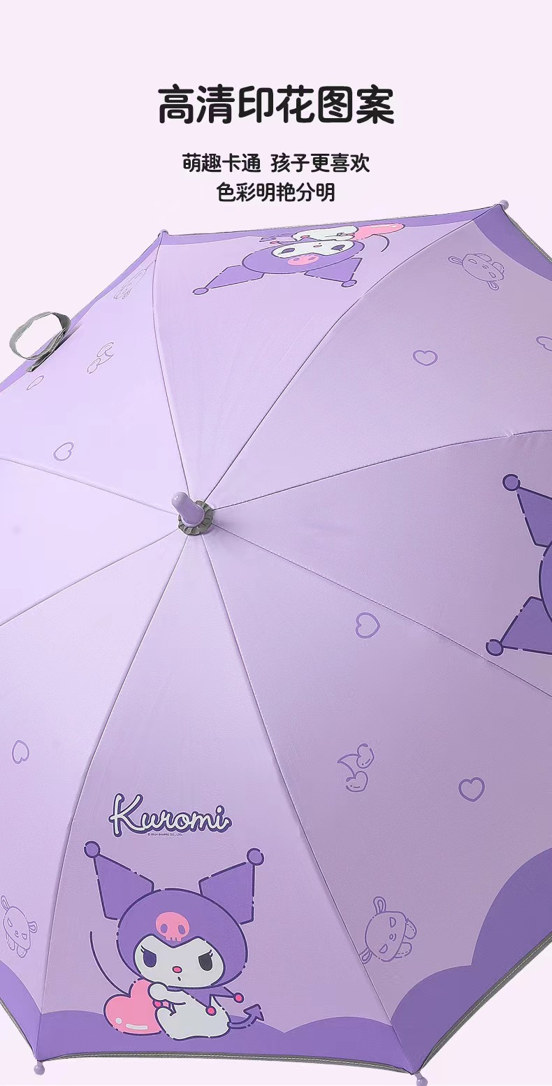 정품 산리오 직각 긴 손잡이 우산, 블랙 글로시 자외선 차단, 방풍, 방수, 햇빛 가리개, 8K 반사 스트립 안전스토어 가기