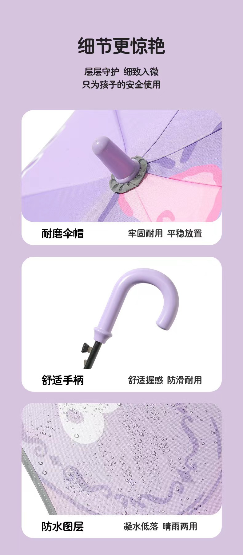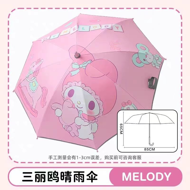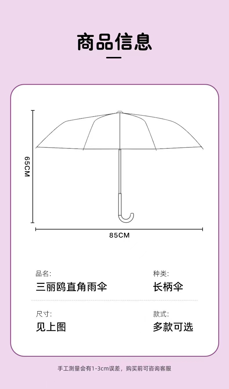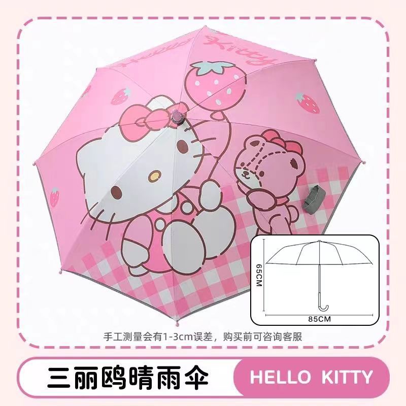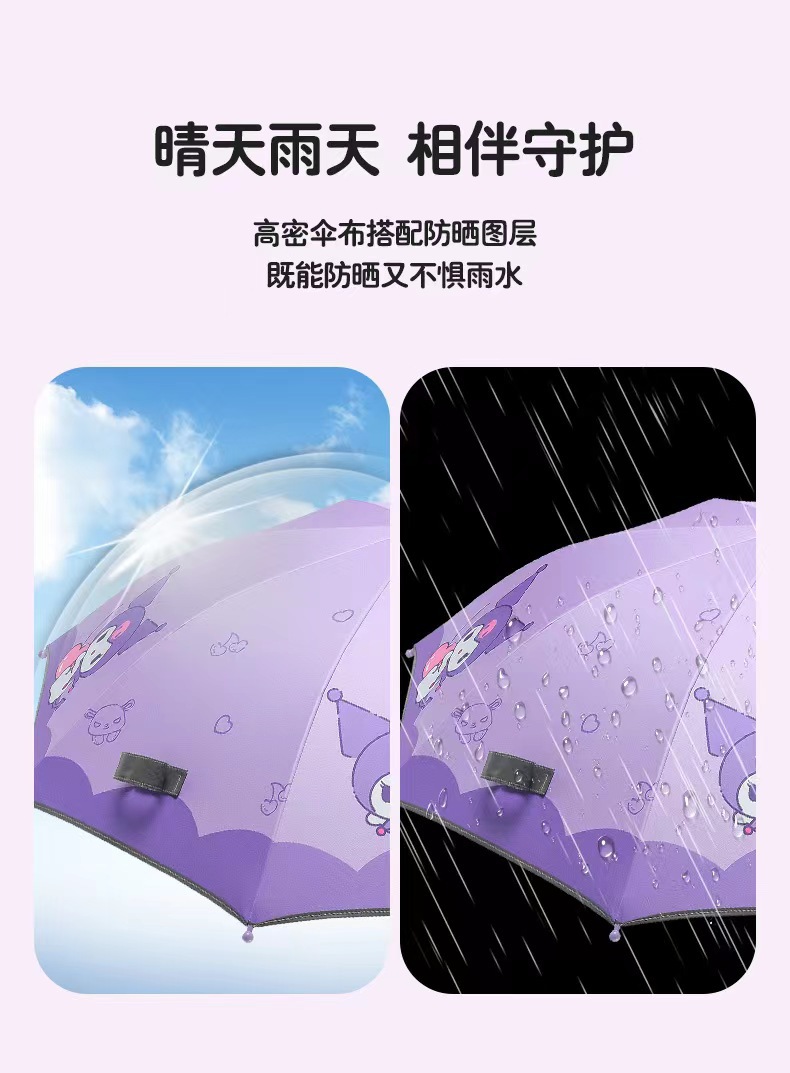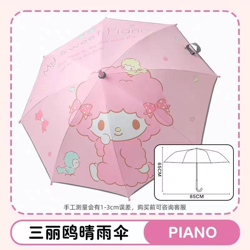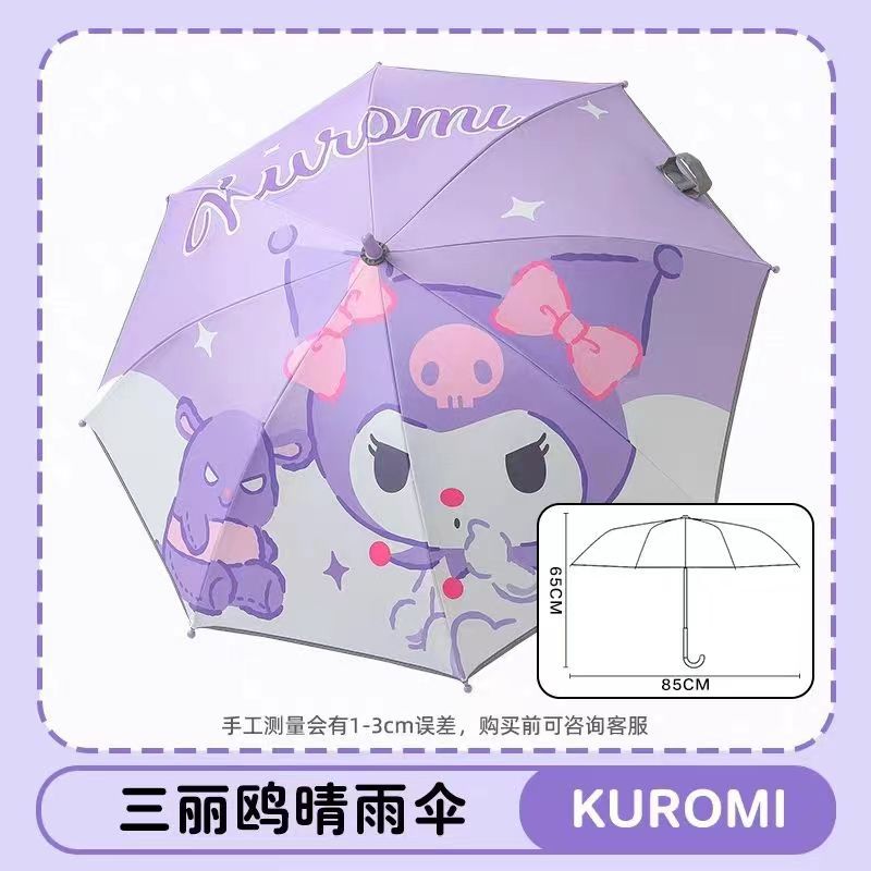 정품 산리오 직각 긴 손잡이 우산, 블랙 글로시 자외선 차단, 방풍, 방수, 햇빛 가리개, 8K 반사 스트립 안전스토어 가기