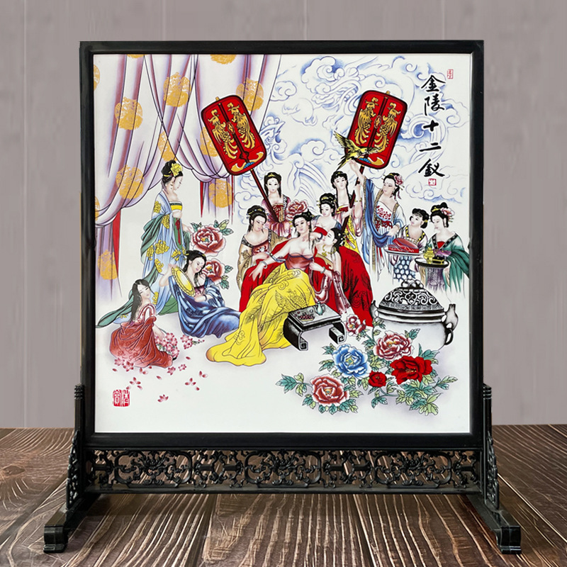 • Jinling 12자 도자기 패널 그림 (길이 30cm, 높이 36cm)