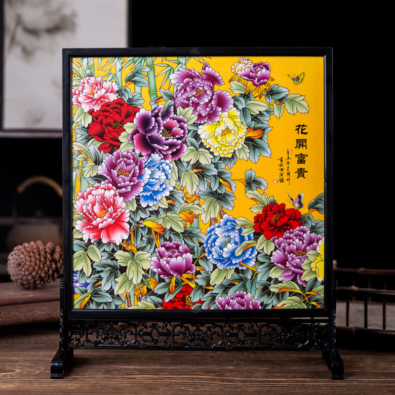 Jingdezhen 중국 스타일 파스텔 도자기 그림 홈 거실 세라믹 공예 입구 거실 장식 장식품