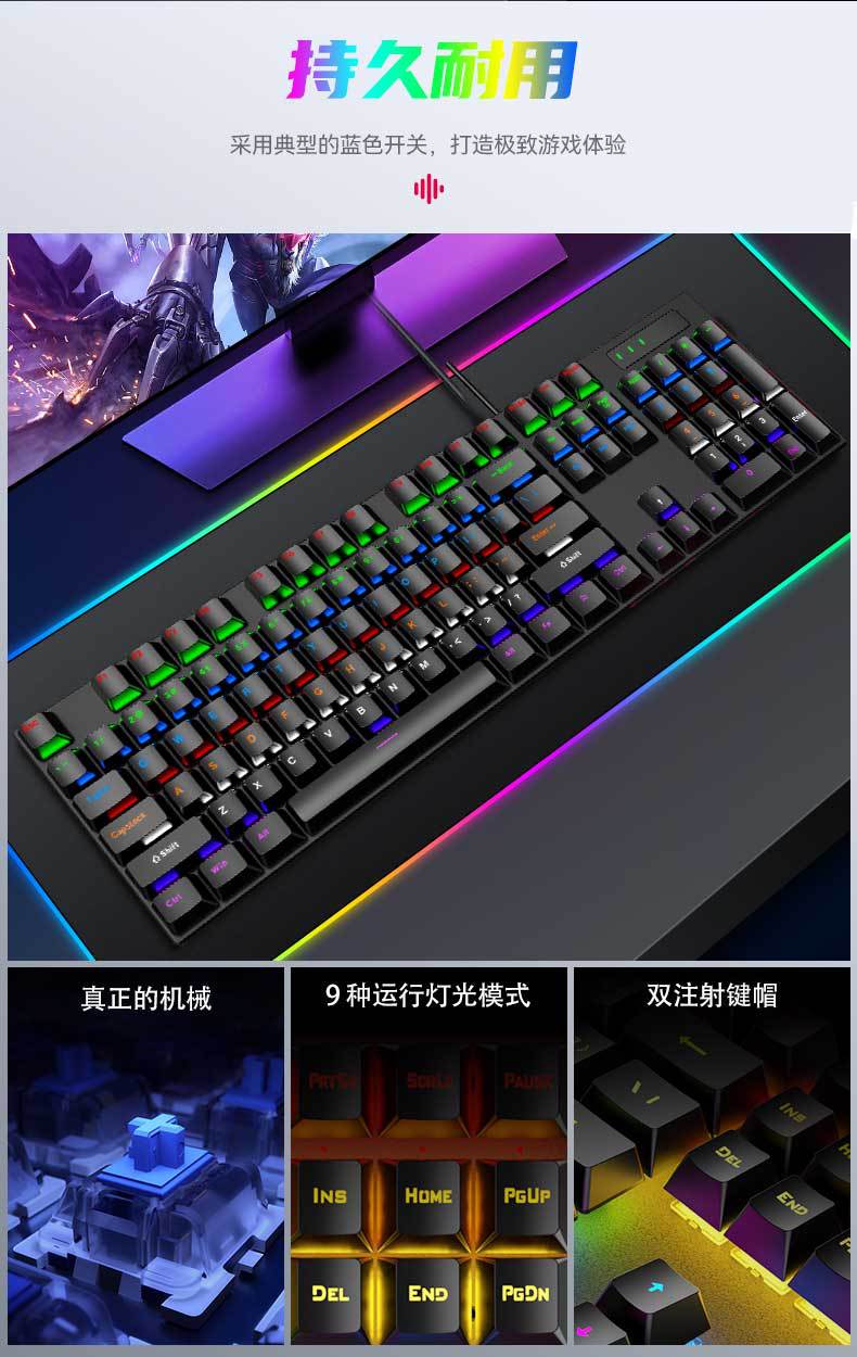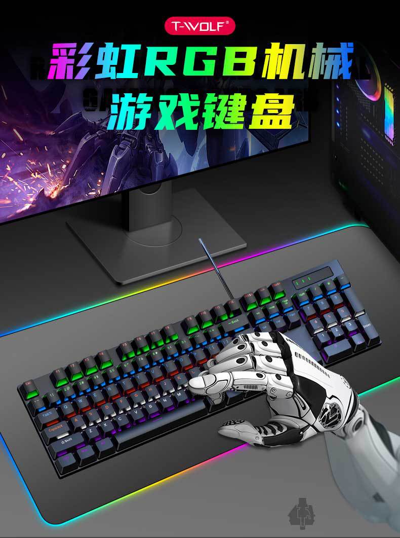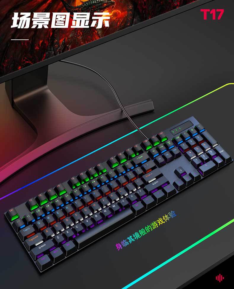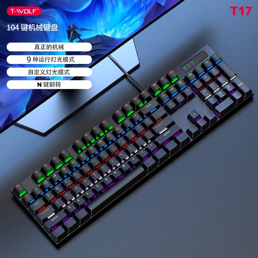 T-WOLF 레이울프 T17 기계식 키보드 게이밍 e스포츠 유선 혼합 발광 메탈 컴퓨터 키보드 청축 러시아어