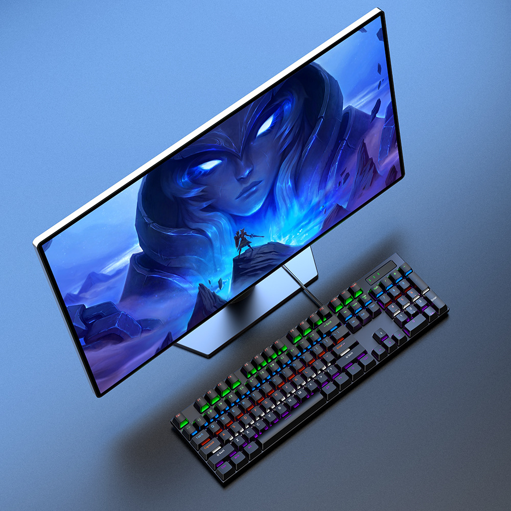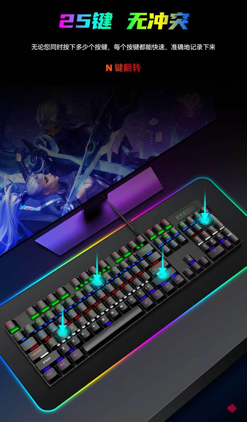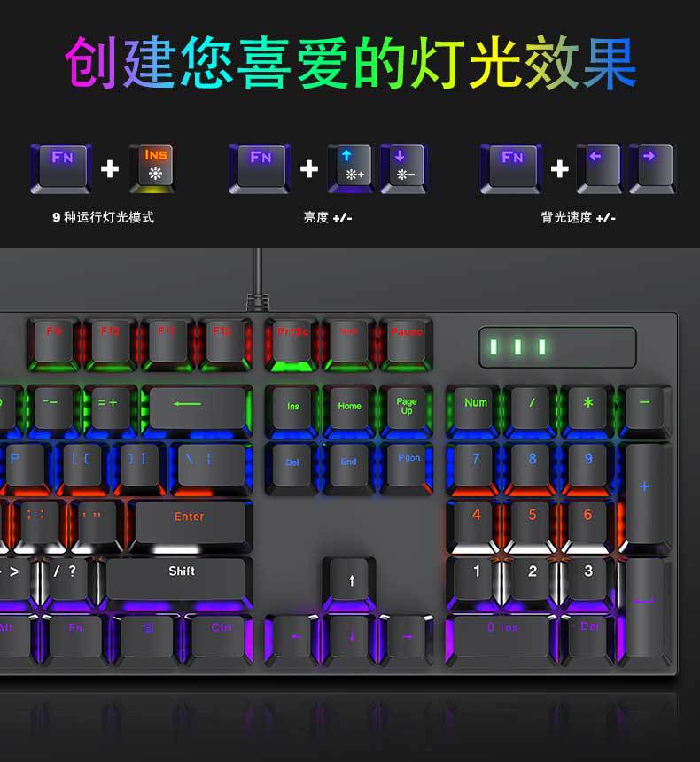 T-WOLF 레이울프 T17 기계식 키보드 게이밍 e스포츠 유선 혼합 발광 메탈 컴퓨터 키보드 청축 러시아어