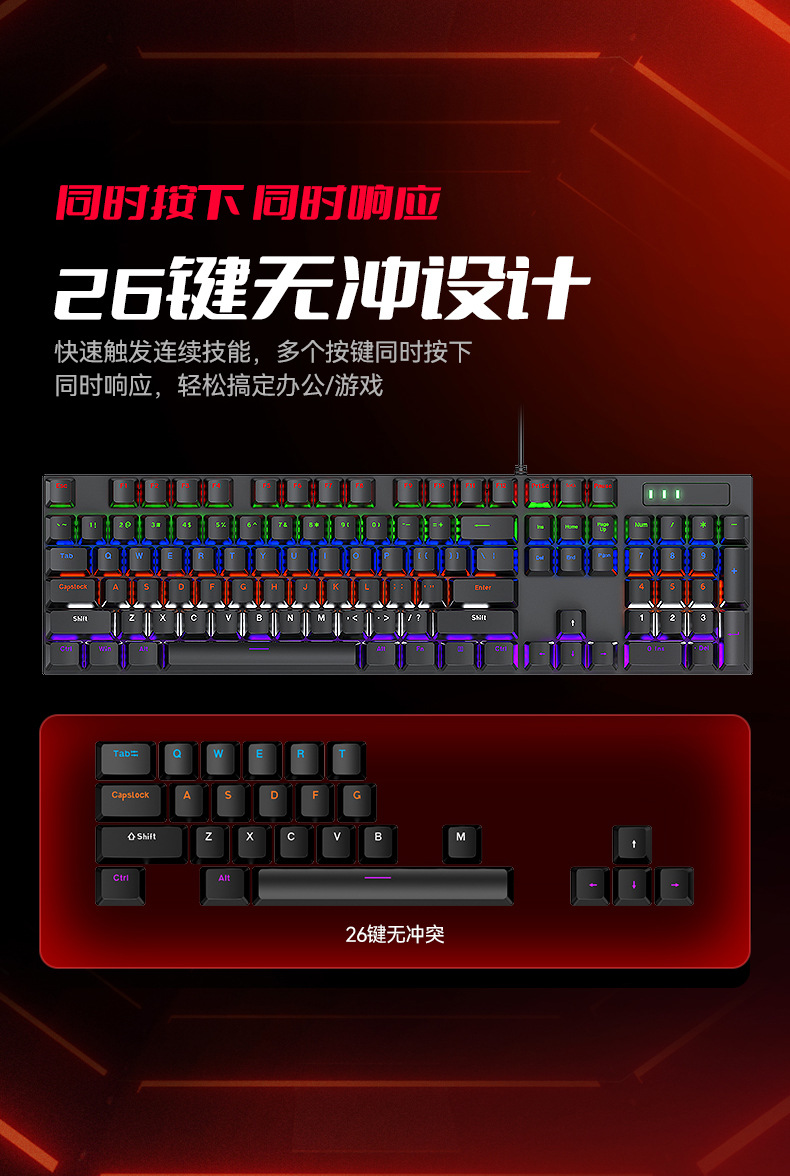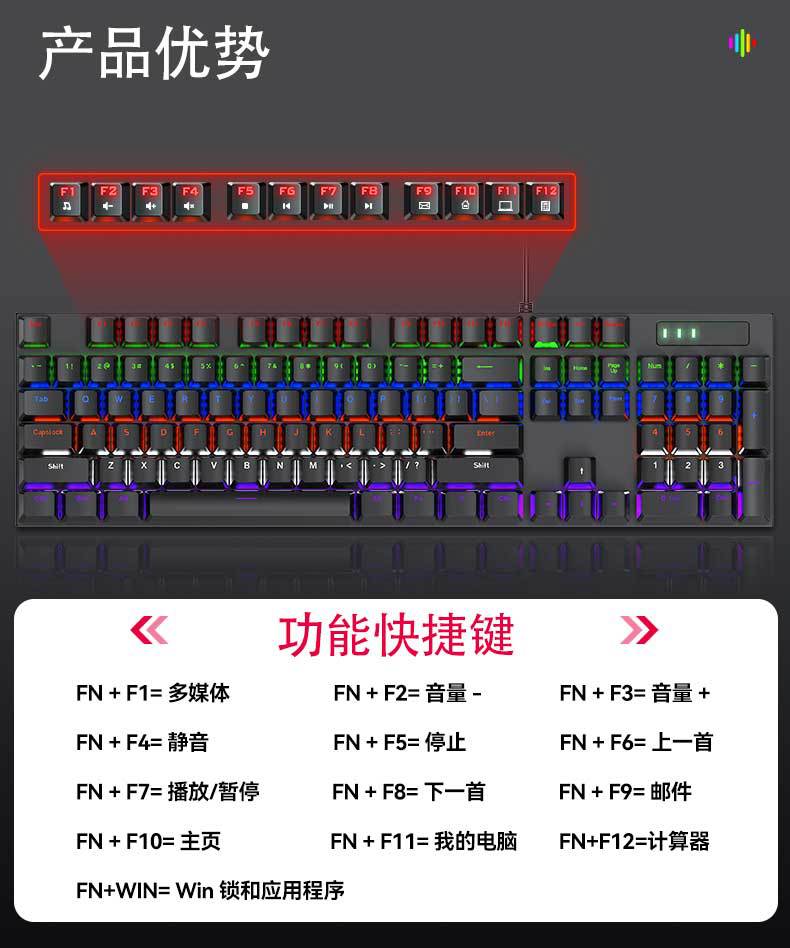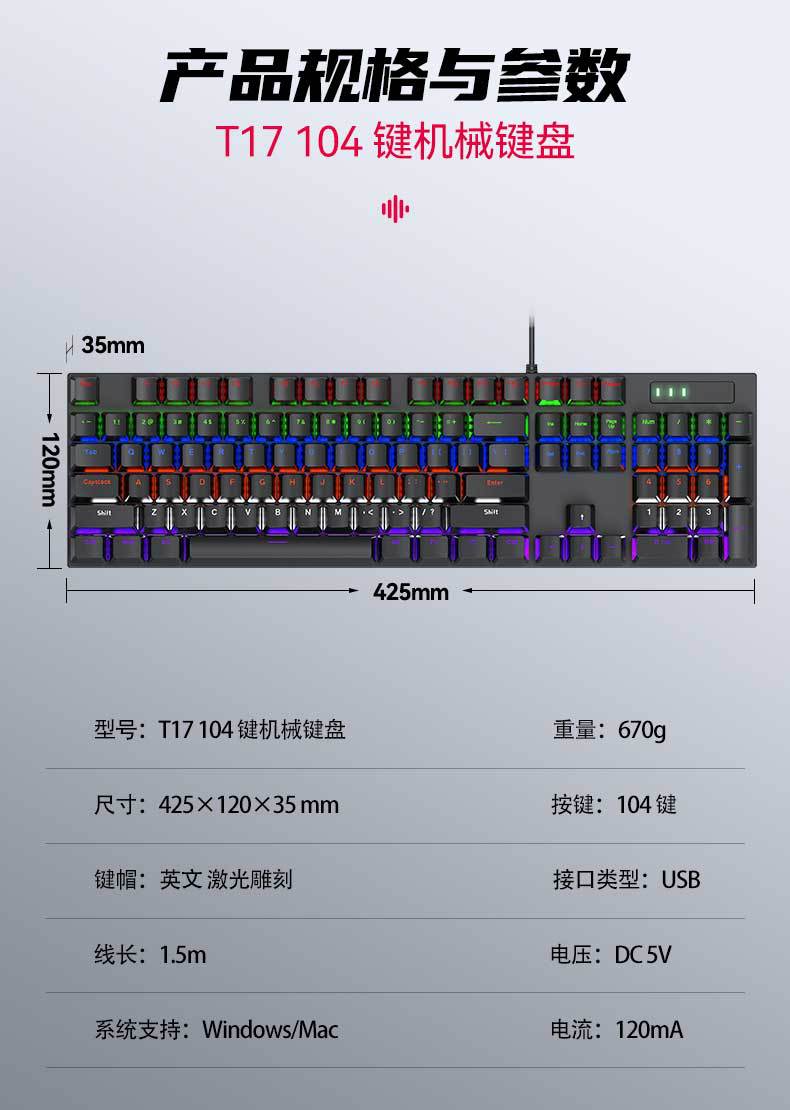 键盘尺寸: 425*120*35mm 裸机重量:560G