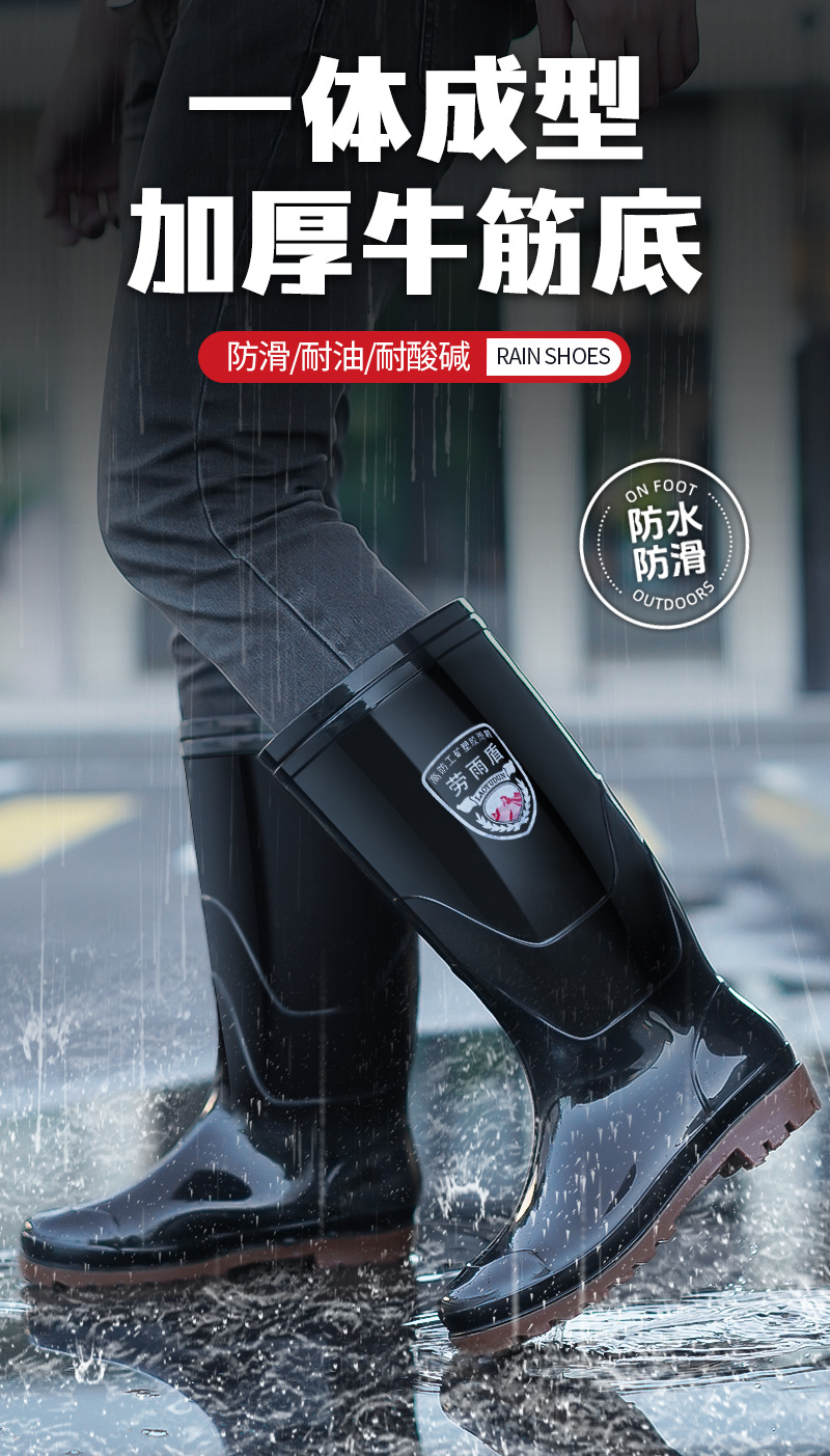 남성용 무료 배송 두꺼운 워터 슈즈, 미끄럼 방지 방수 고무 신발, 남성용 수산물 작업 하이 레인 부츠스토어 가기