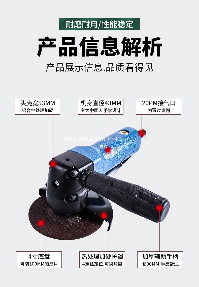 4 인치 공압 앵글 그라인더 산업 등급 공압 핸드 연삭 휠 절단 및 연삭 5 인치 고속 그라인더 연마 공작 기계스토어 가기