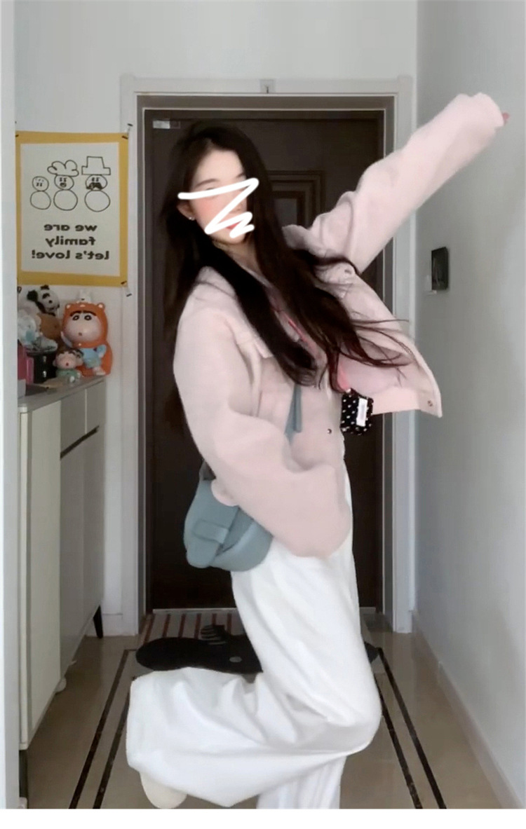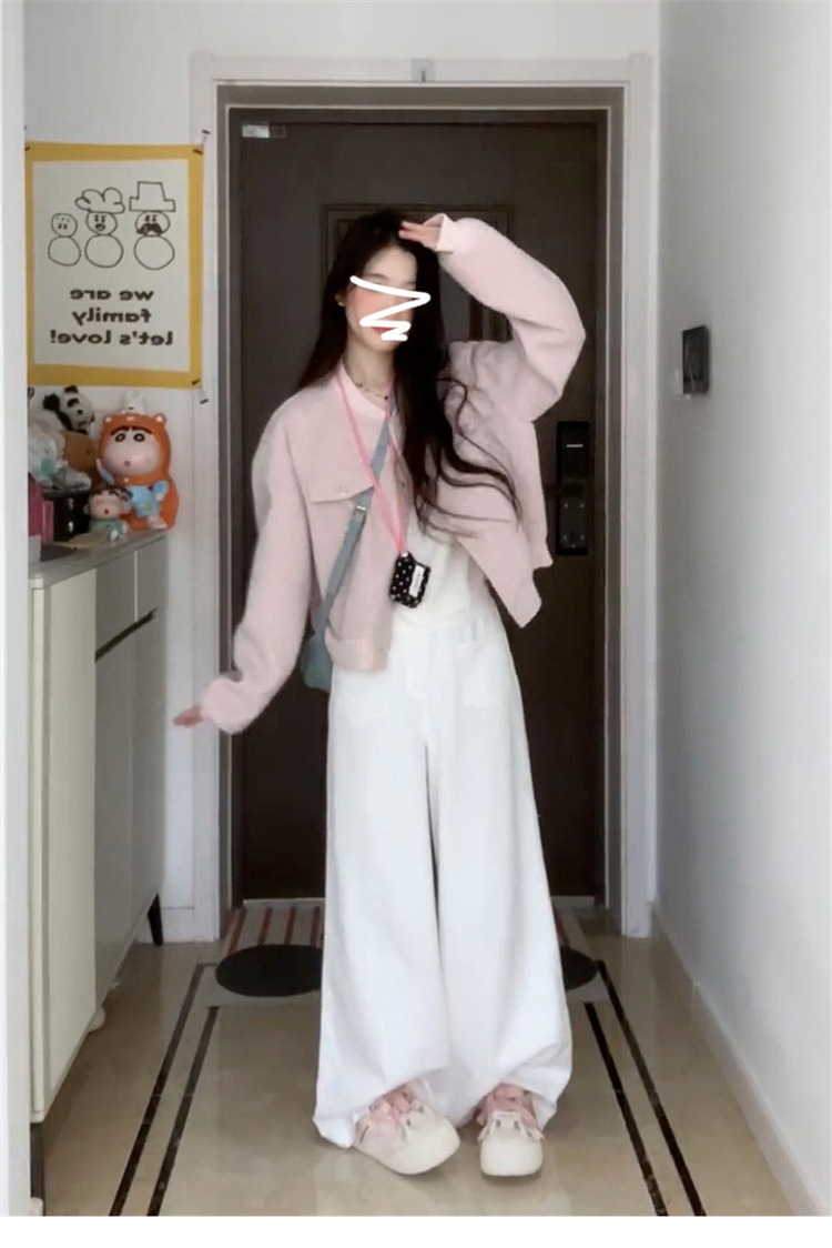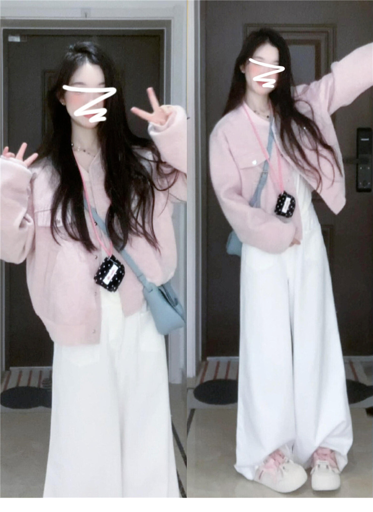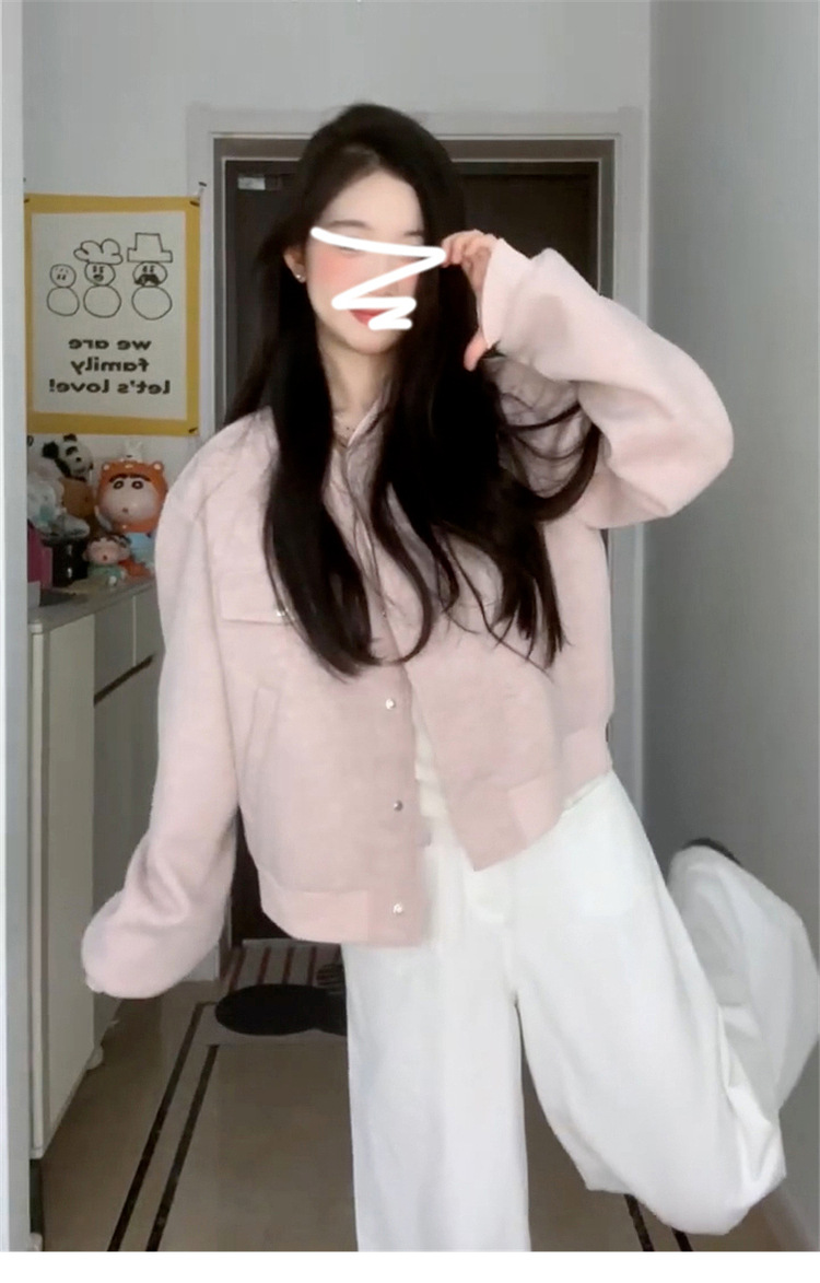 한국 스타일 핑크 짧은 야구 세트 코트 여자 가을 겨울 2024 새로운 스타일 작은 잘 생긴 달콤한 멋진 재킷 탑스토어 가기