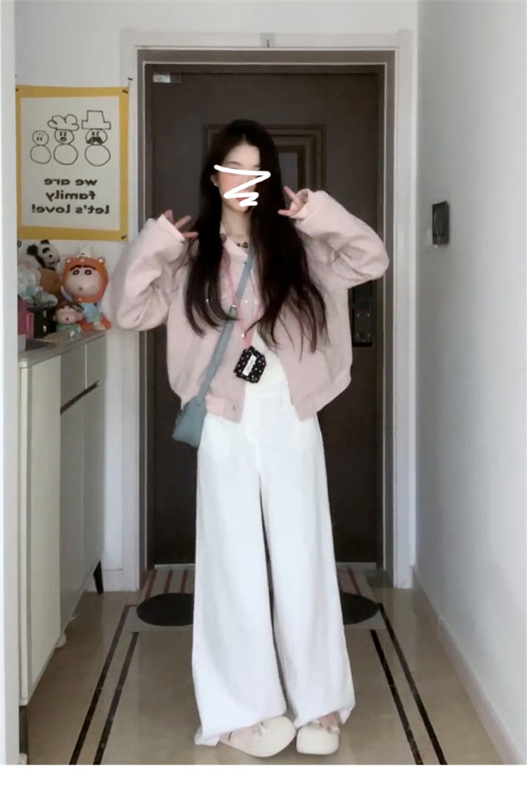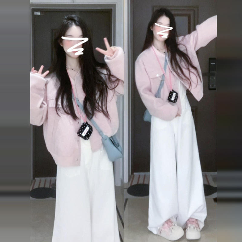 한국 스타일 핑크 짧은 야구 세트 코트 여자 가을 겨울 2024 새로운 스타일 작은 잘 생긴 달콤한 멋진 재킷 탑