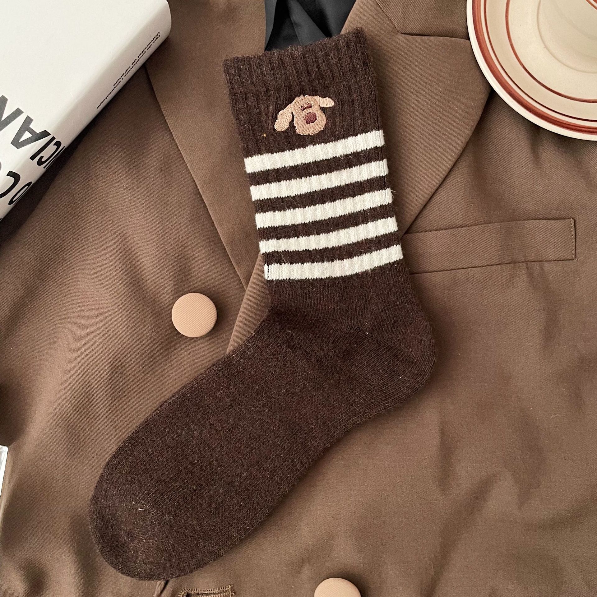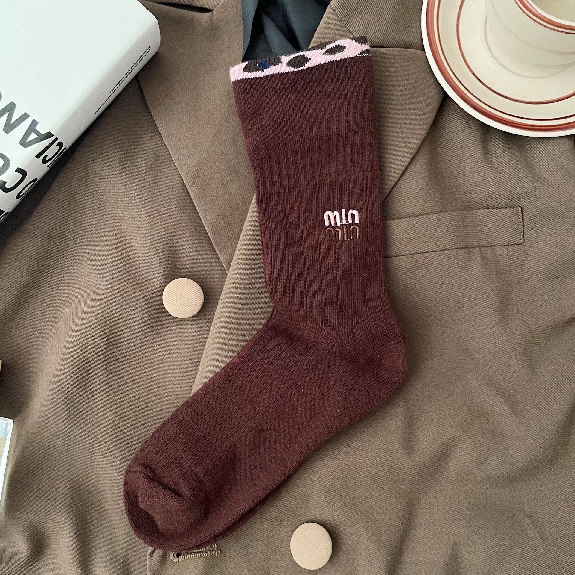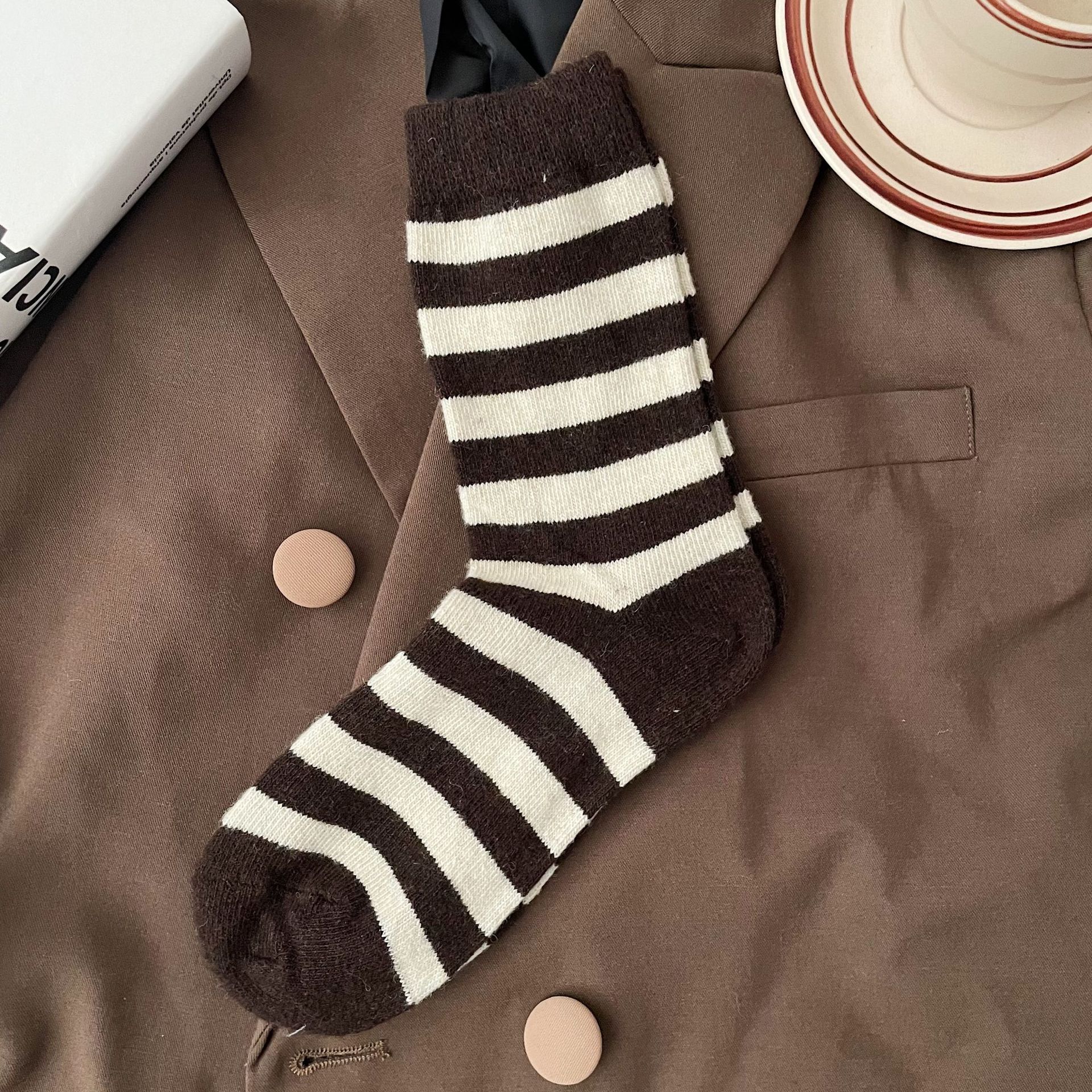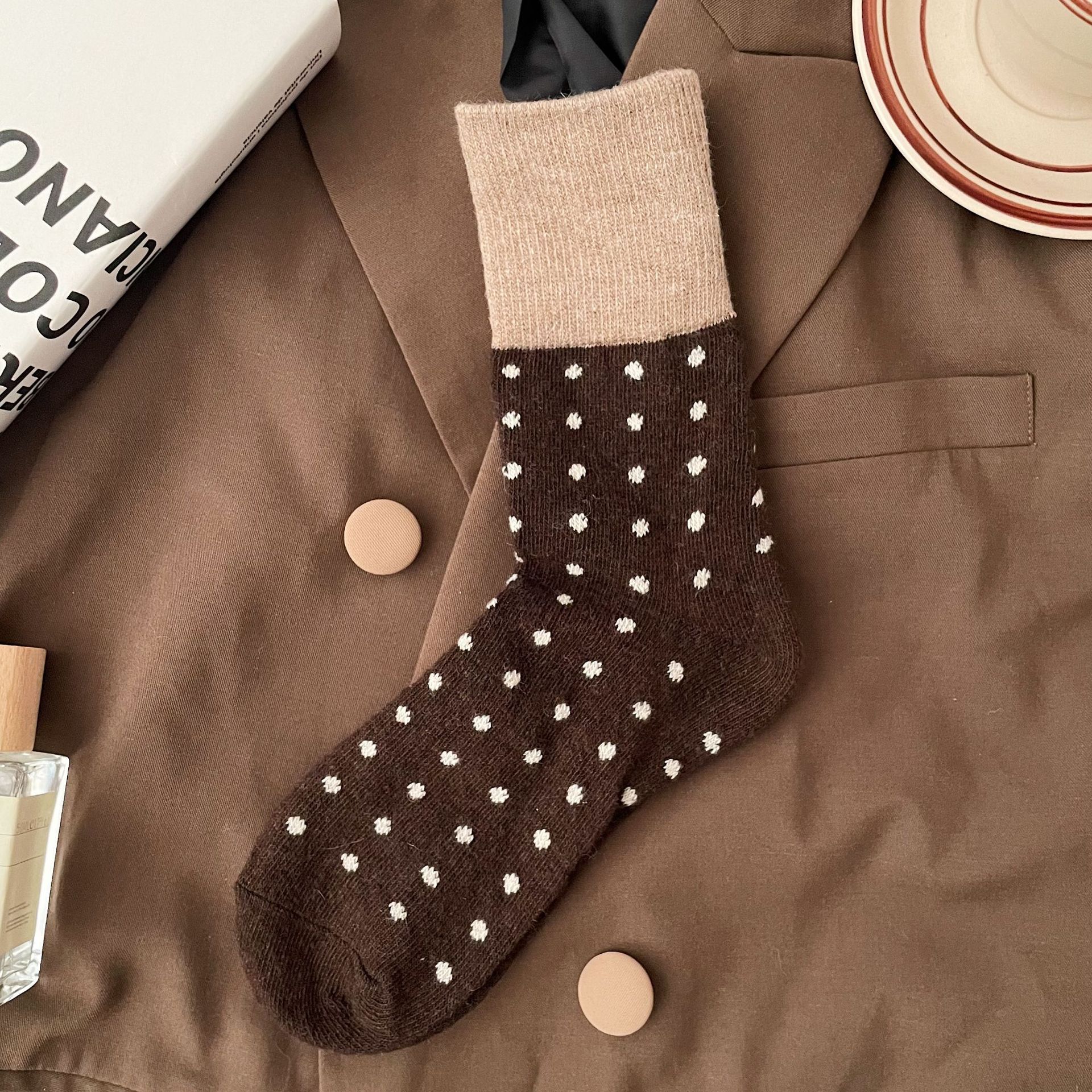 가을 겨울 양말 여성용 밀라 드 다크 브라운 울 양말 웨이브 도트 스트라이프 스타킹 양말 한국 귀여운 스타킹 코튼