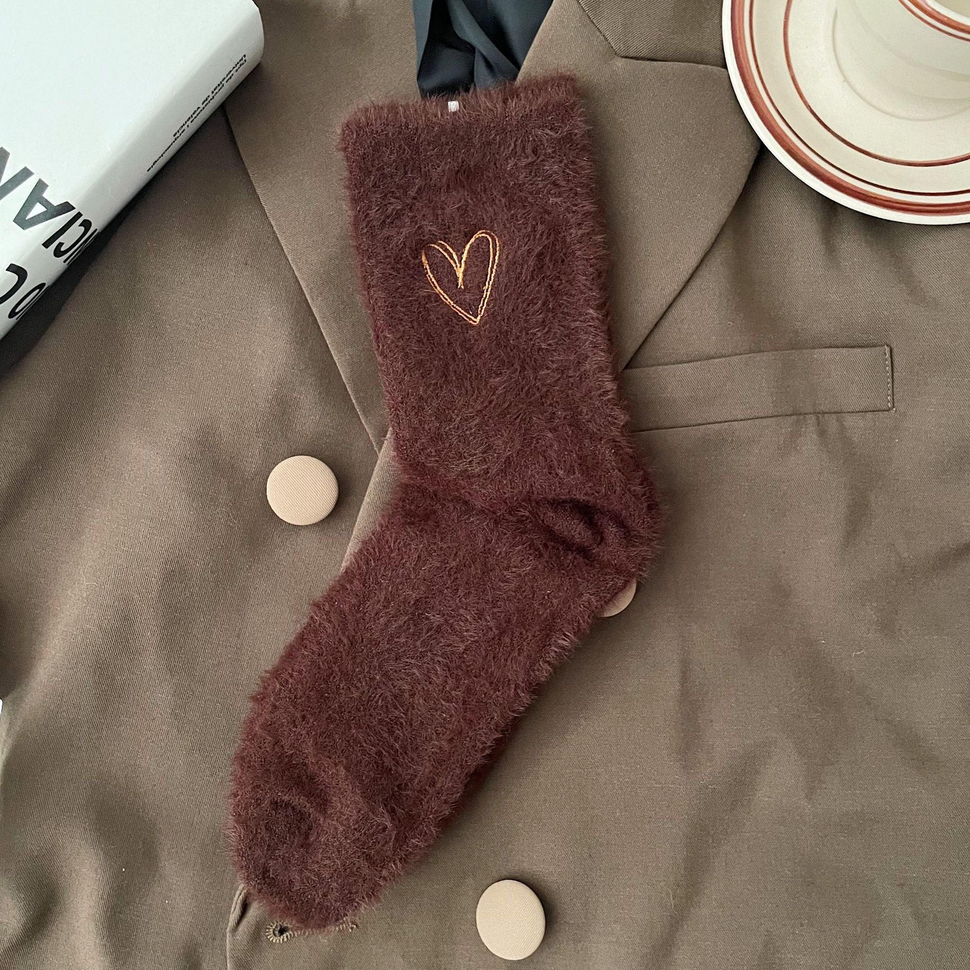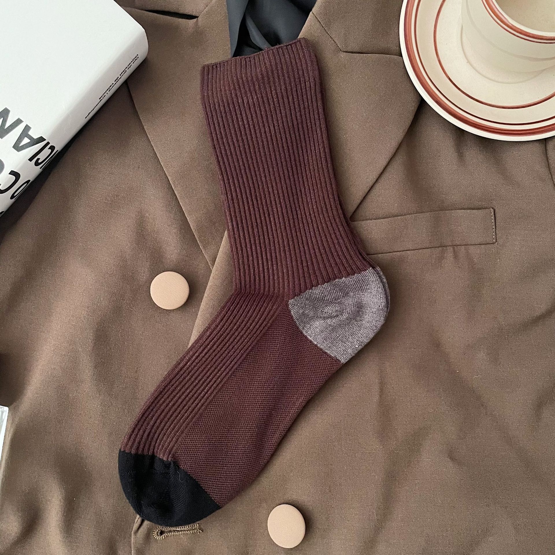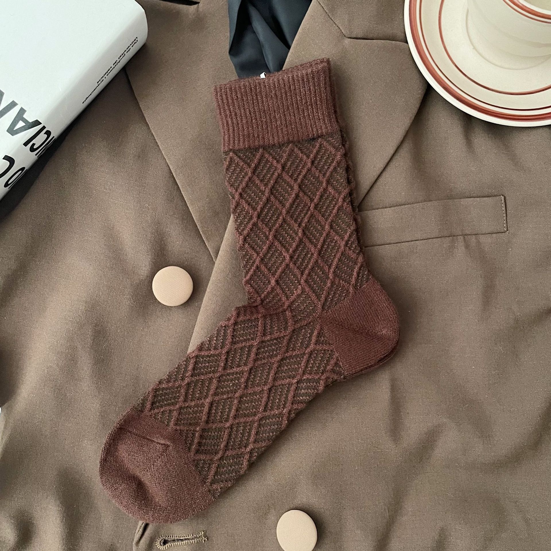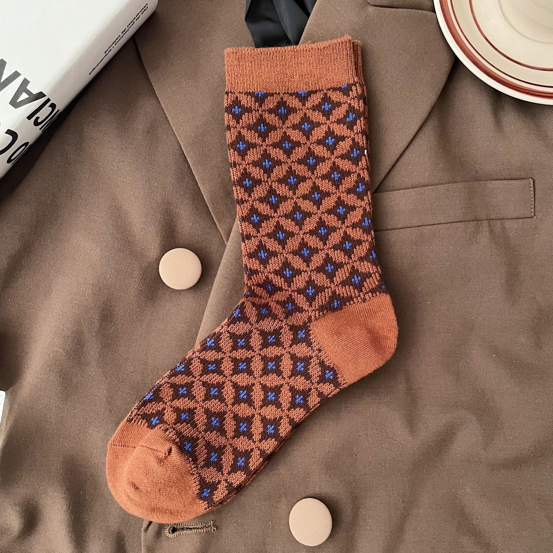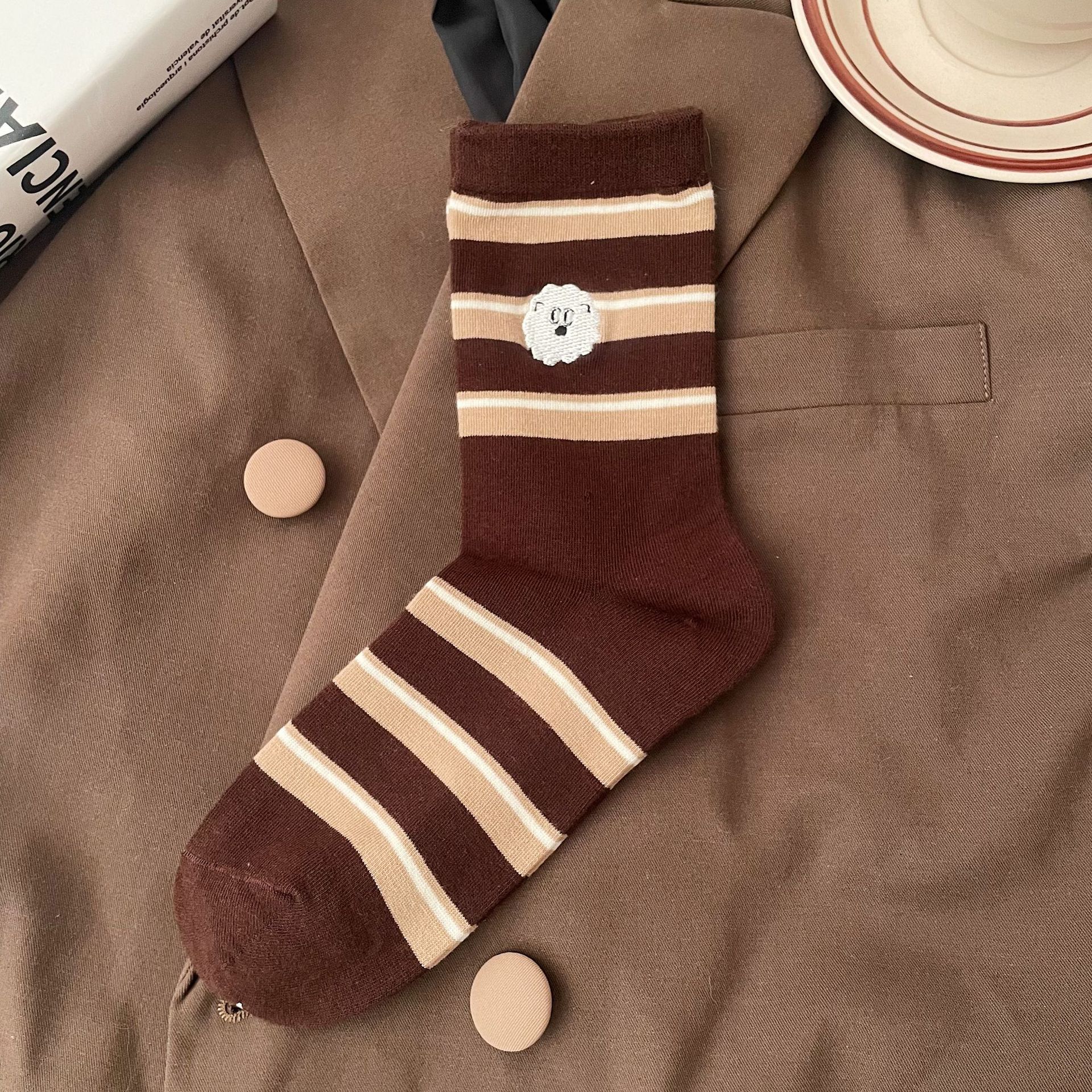 가을 겨울 양말 여성용 밀라 드 다크 브라운 울 양말 웨이브 도트 스트라이프 스타킹 양말 한국 귀여운 스타킹 코튼