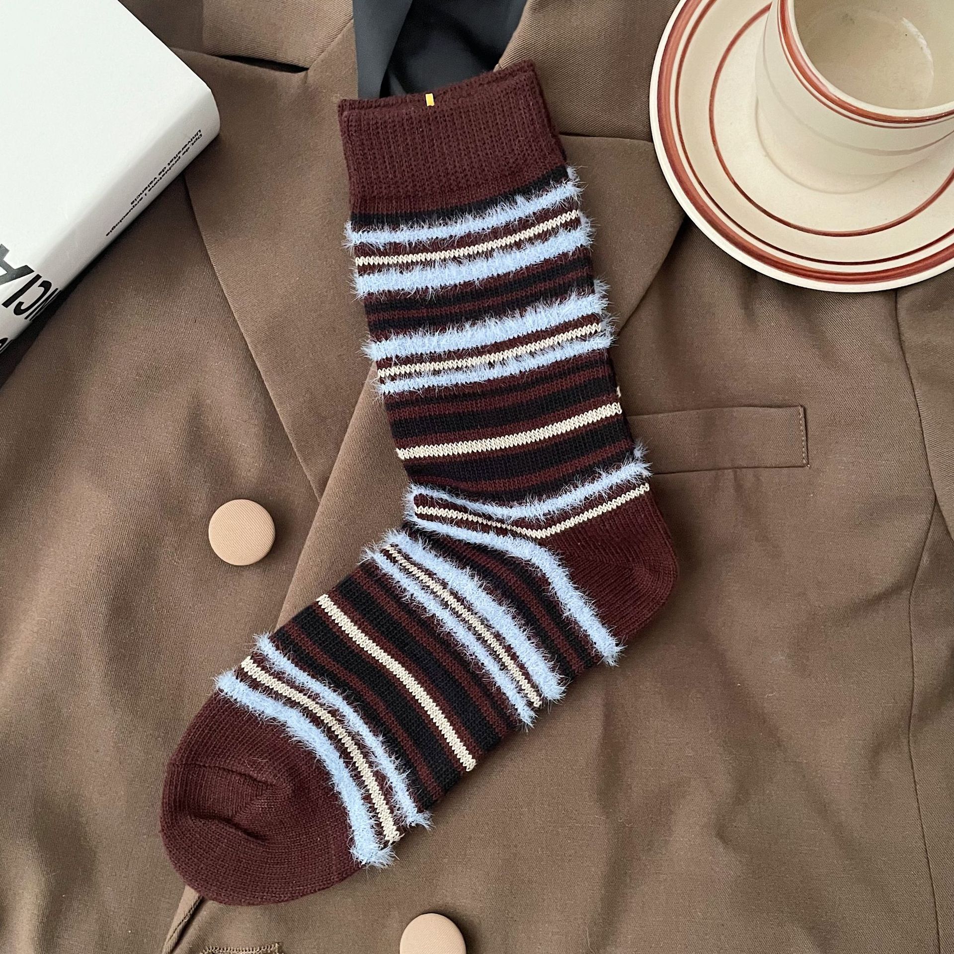 가을 겨울 양말 여성용 밀라 드 다크 브라운 울 양말 웨이브 도트 스트라이프 스타킹 양말 한국 귀여운 스타킹 코튼스토어 가기