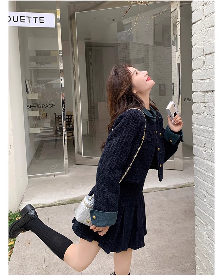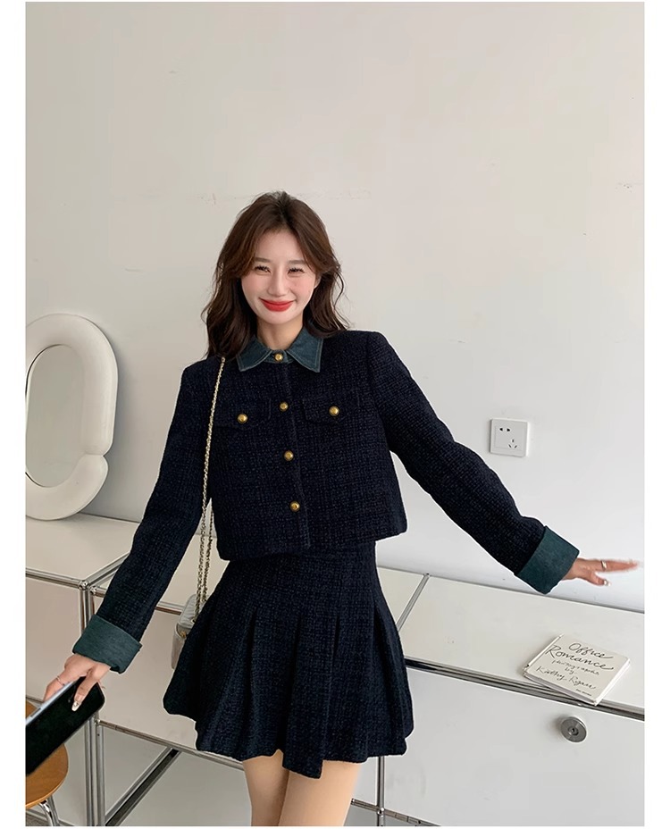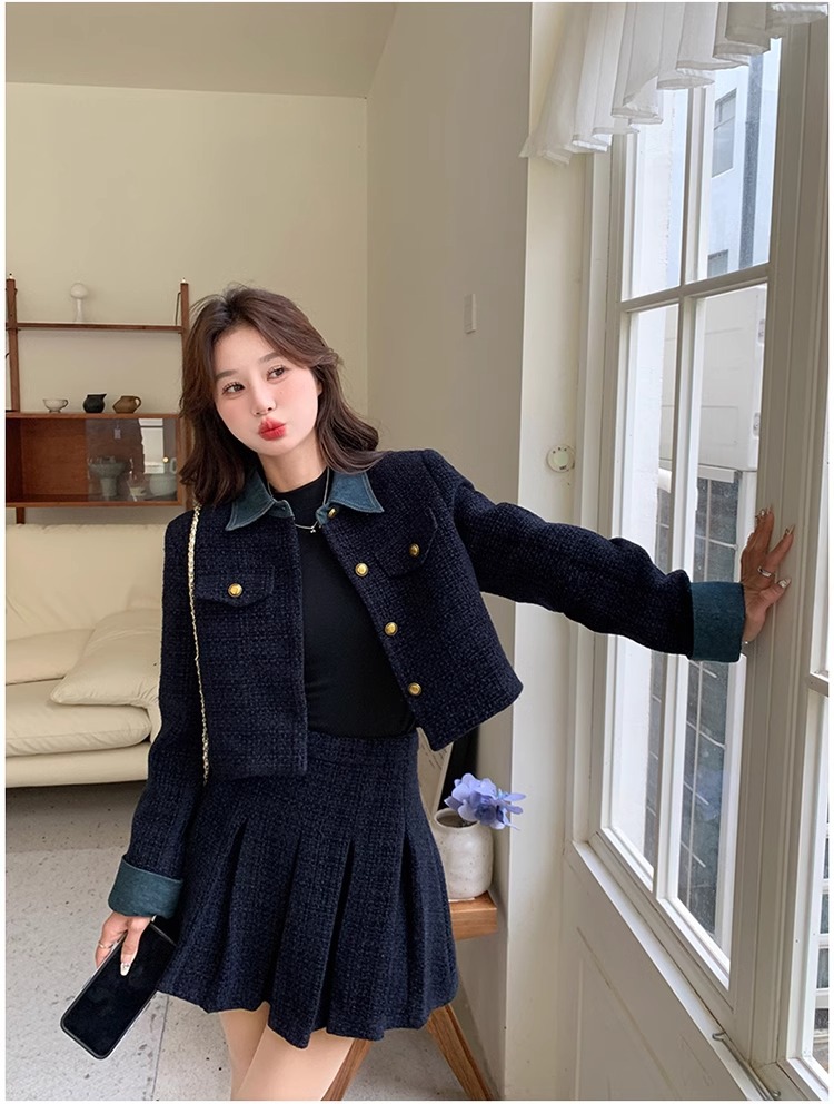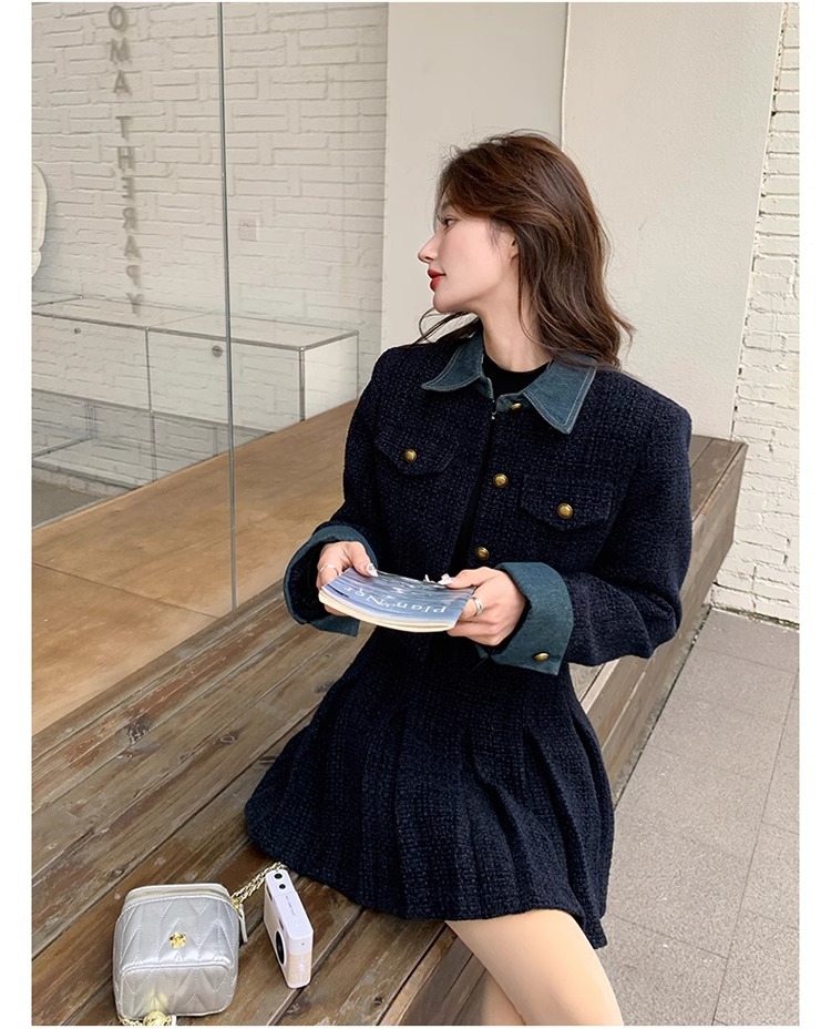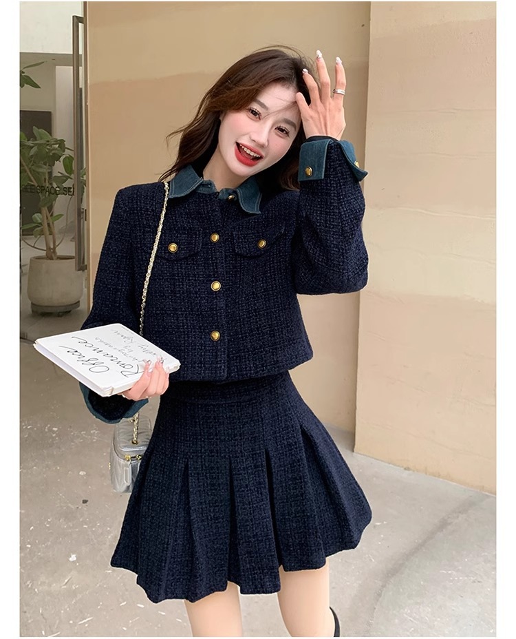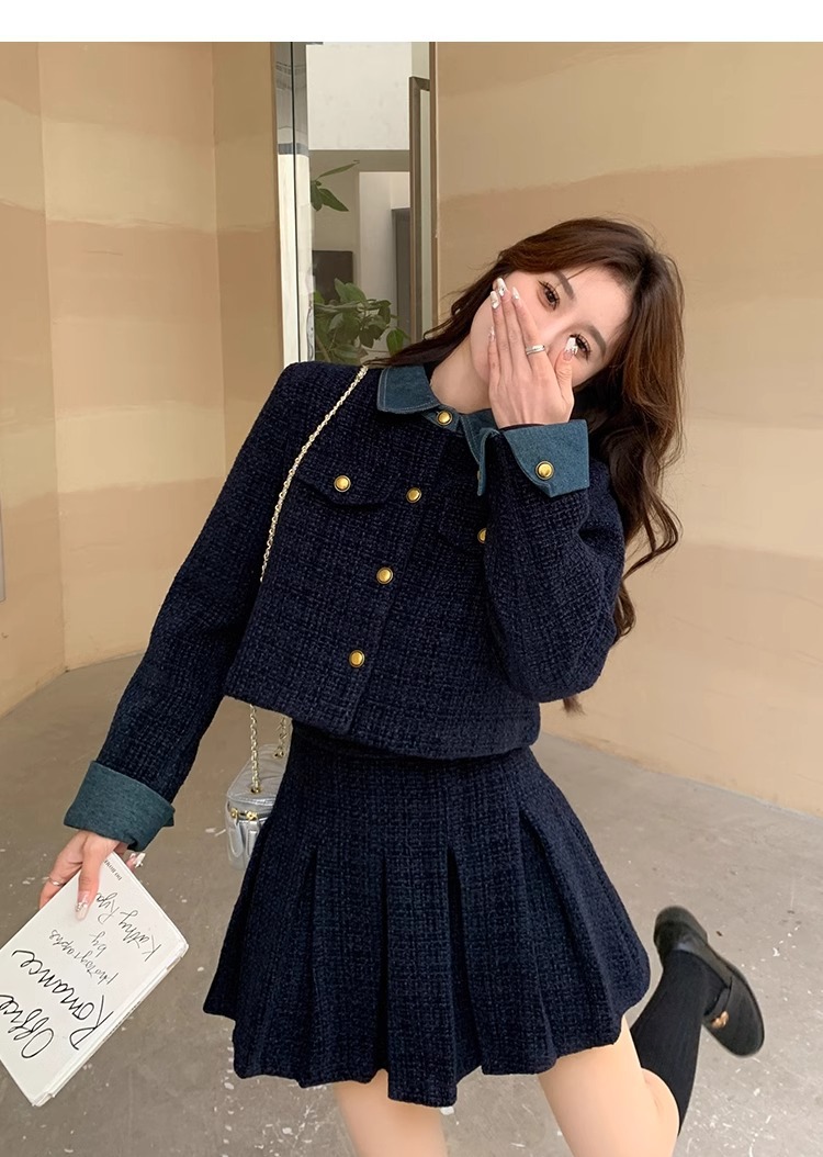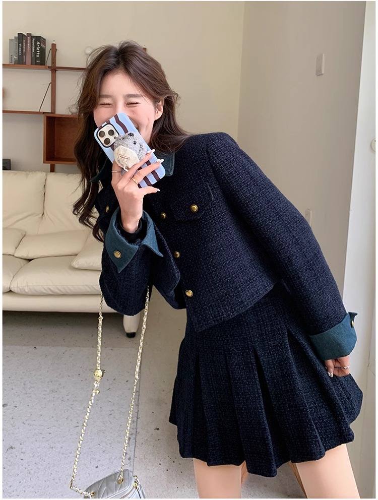 샤넬 스타일 두꺼운 코튼 패셔너블 세트 여성용 2024 겨울 새 울 코트 주름 스커트 투피스 세트 트렌디스토어 가기