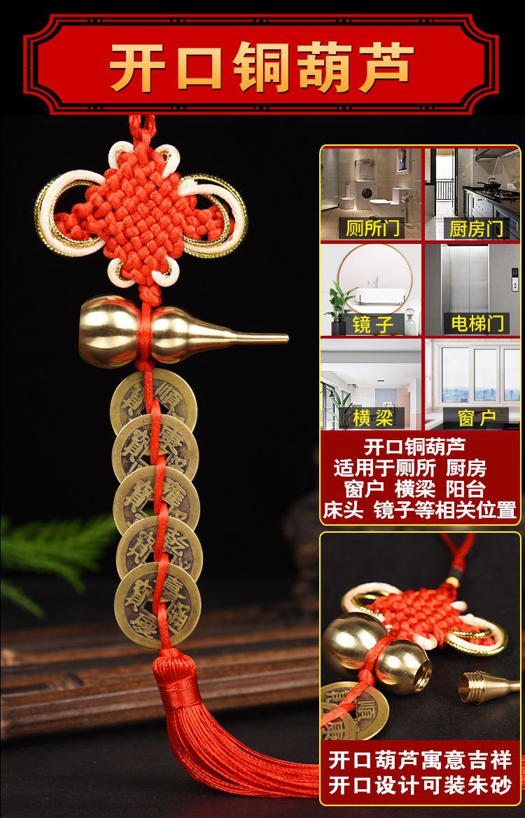 구리 조롱박 다섯 황제 돈 펜던트 문 문 문 열고 진짜 장식품 홈 문 화장실 문 Zhao Zhou