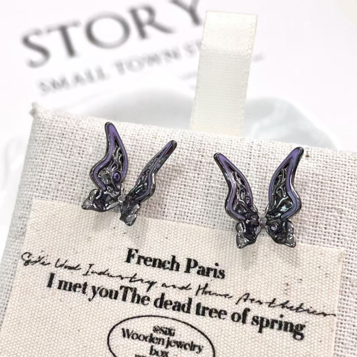새로운 작은 마법의 요정 보라색 나비 귀걸이 하이 엔드 럭셔리 귀걸이 틈새 여성을위한 독특한 올매치 우아한 다크 귀걸이