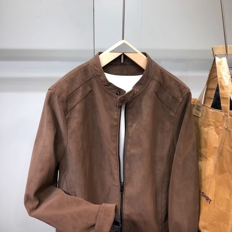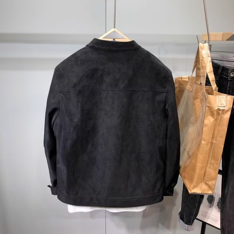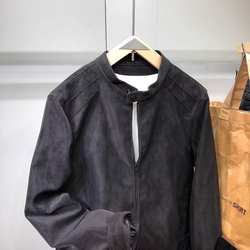 폭발성 코트 남자의 봄과 가을 2024 새로운 패션 브랜드 하이 엔드 스웨이드 오토바이 재킷 칼라 남성복스토어 가기
