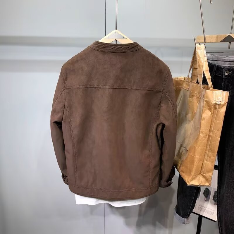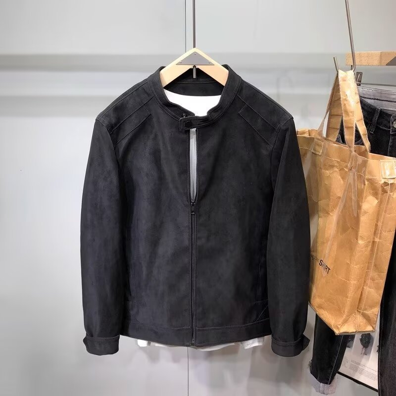 폭발성 코트 남자의 봄과 가을 2024 새로운 패션 브랜드 하이 엔드 스웨이드 오토바이 재킷 칼라 남성복