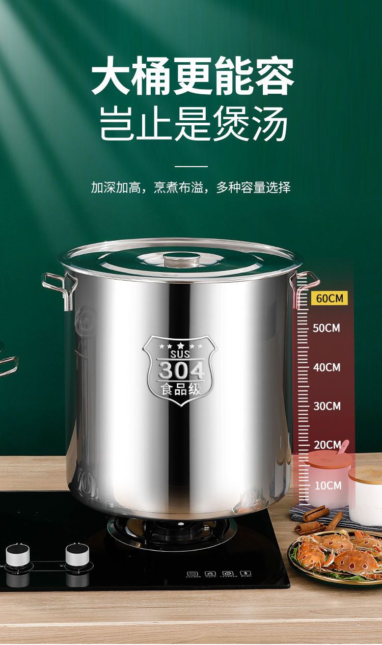 304 스테인레스 스틸 냄비 상업용 수프 버킷 대형 스테인레스 스틸 버킷 뚜껑 수프 냄비 가정용 물 저장 버킷 할로겐 자오스토어 가기