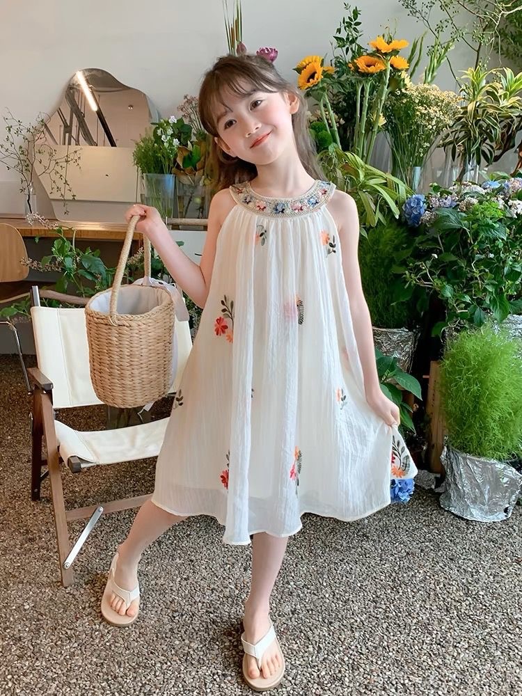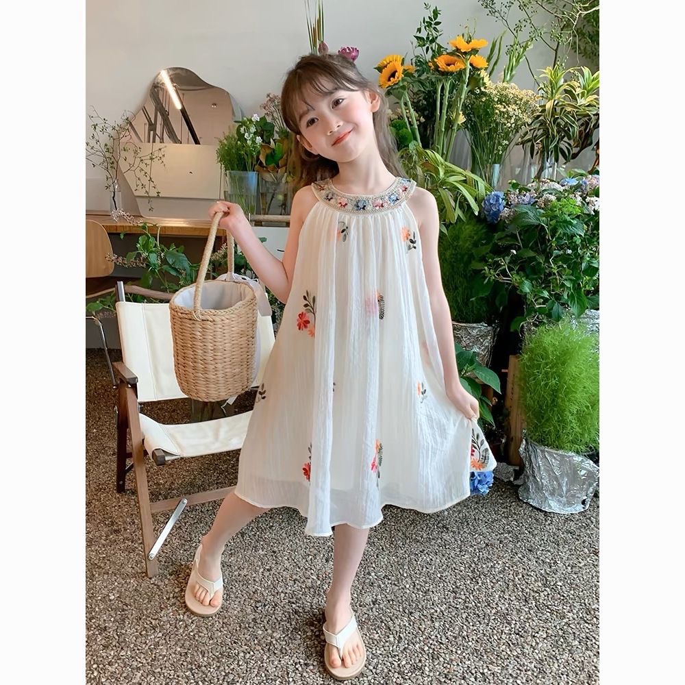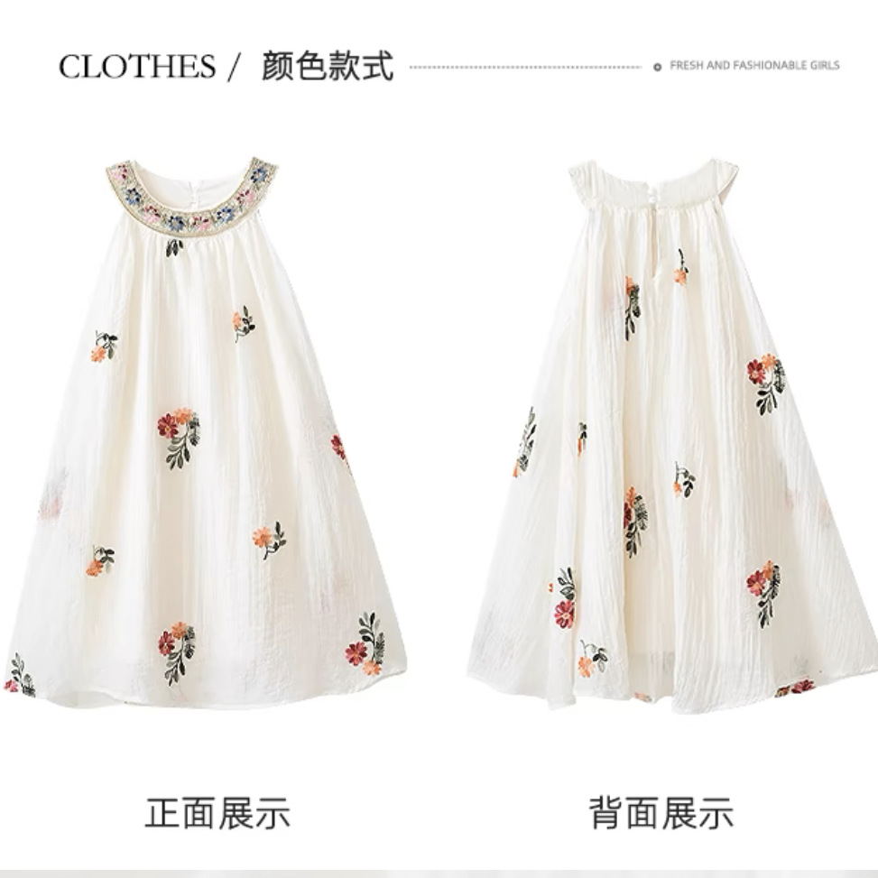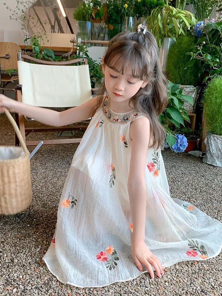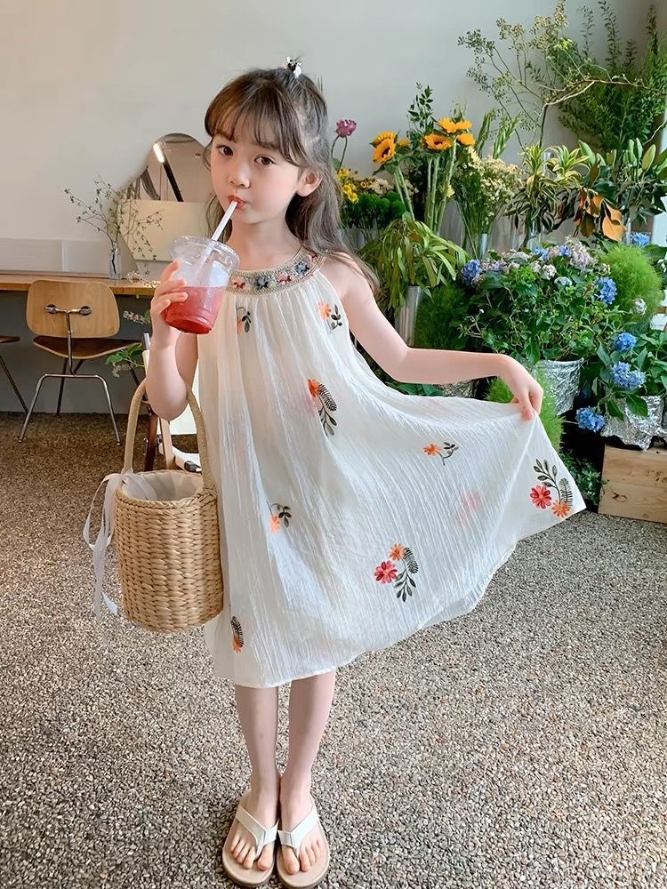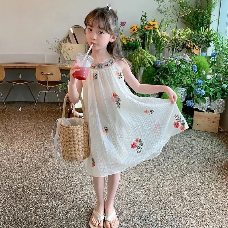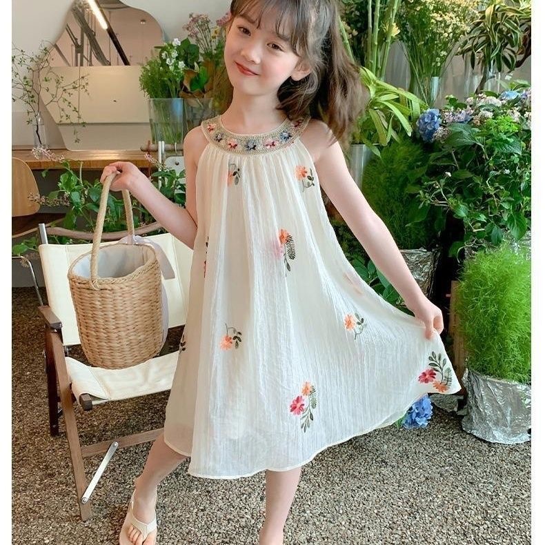 여름 소녀의 유행 드레스 2025 새로운 여름 스타일 어린이 달콤한 조끼 드레스 케이크 드레스 기질 요정 드레스스토어 가기