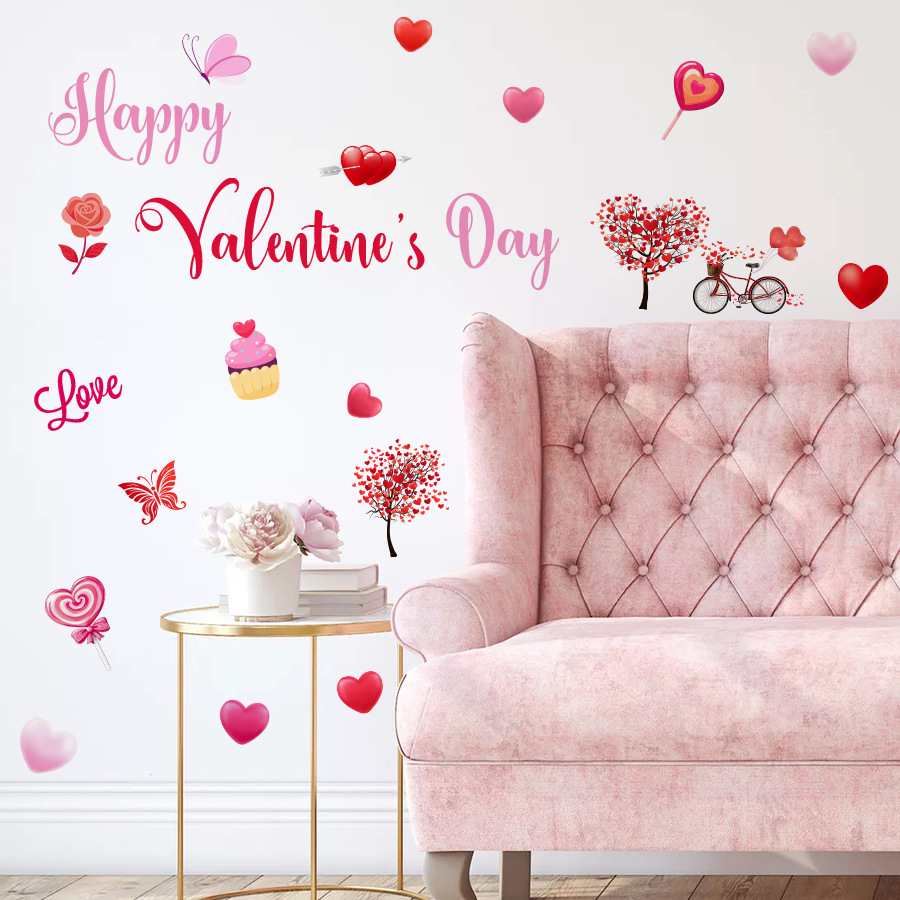 발렌타인 데이 로맨틱 러브 윈도우 스티커 셀프 접착 벽 스티커 양면 비주얼 룸 유리 장식 스티커 ZN3278C스토어 가기