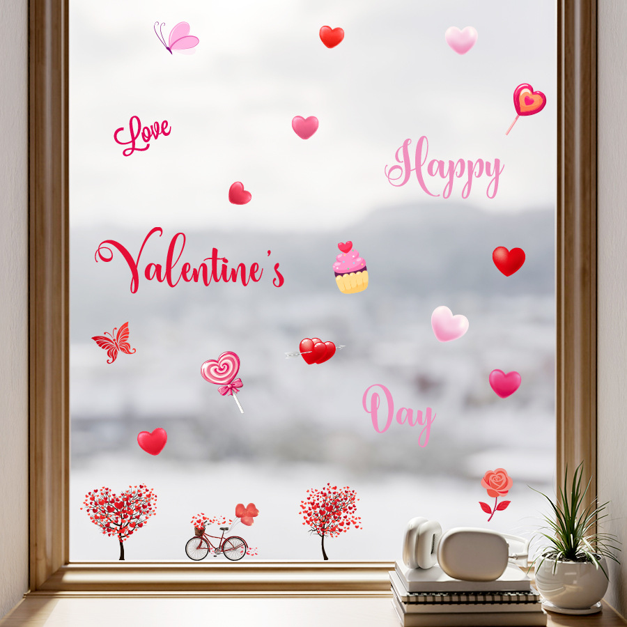 발렌타인 데이 로맨틱 러브 윈도우 스티커 셀프 접착 벽 스티커 양면 비주얼 룸 유리 장식 스티커 ZN3278C
