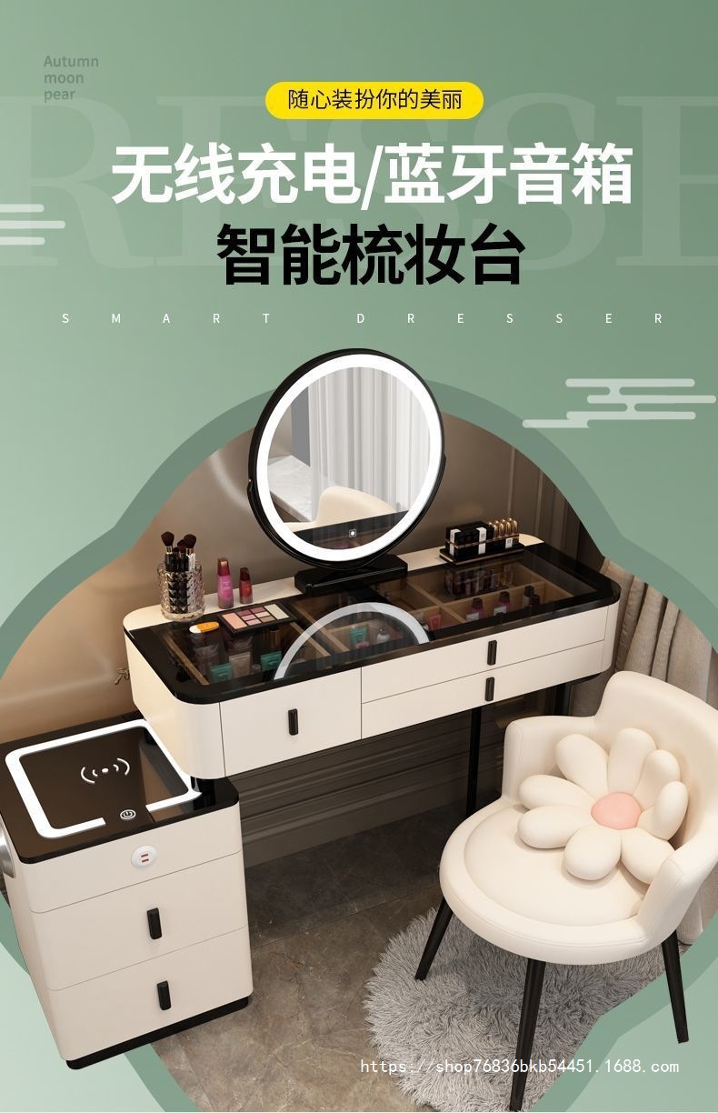 스마트 침실 드레싱 테이블 무선 충전 라이트 럭셔리 노르딕 침실 드레싱 테이블 현대 간단한 다기능 메이크업 테이블