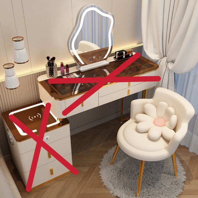 • 흰색 85.95 유리 테이블 + 캐비닛 + 거울 + 페인트 다리 + 작은 꽃 의자
