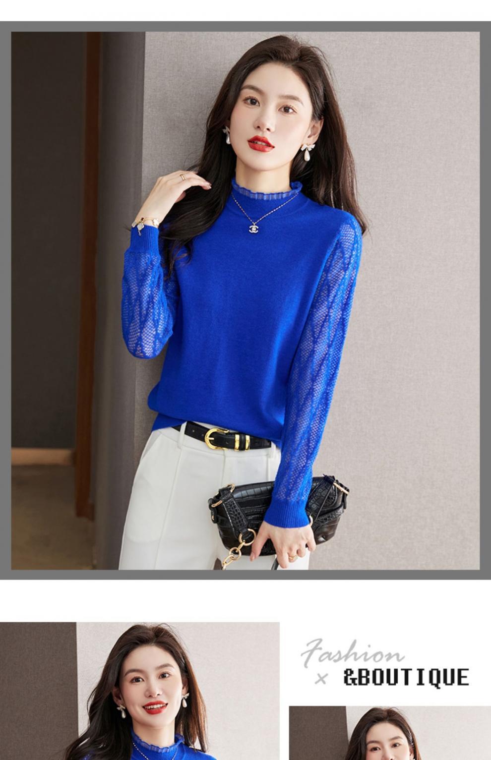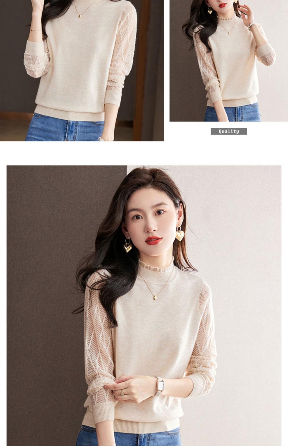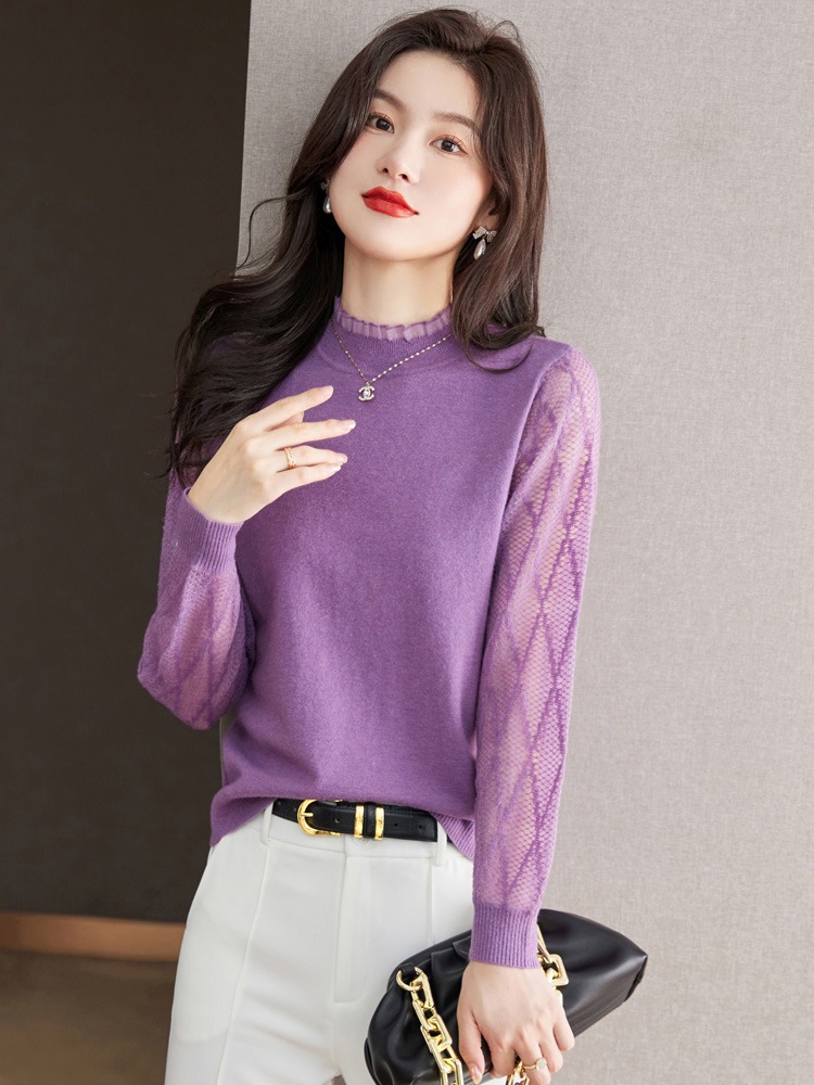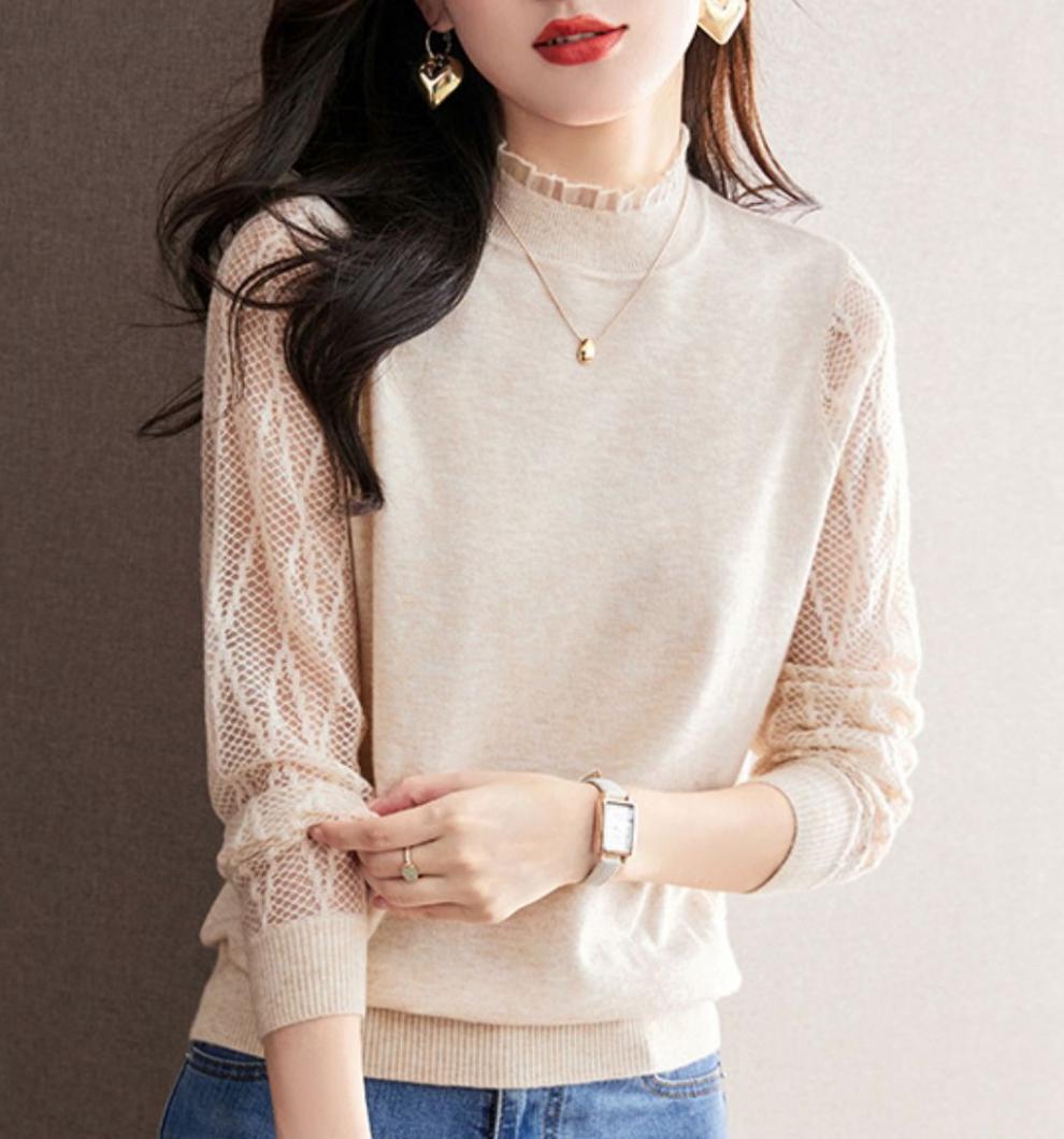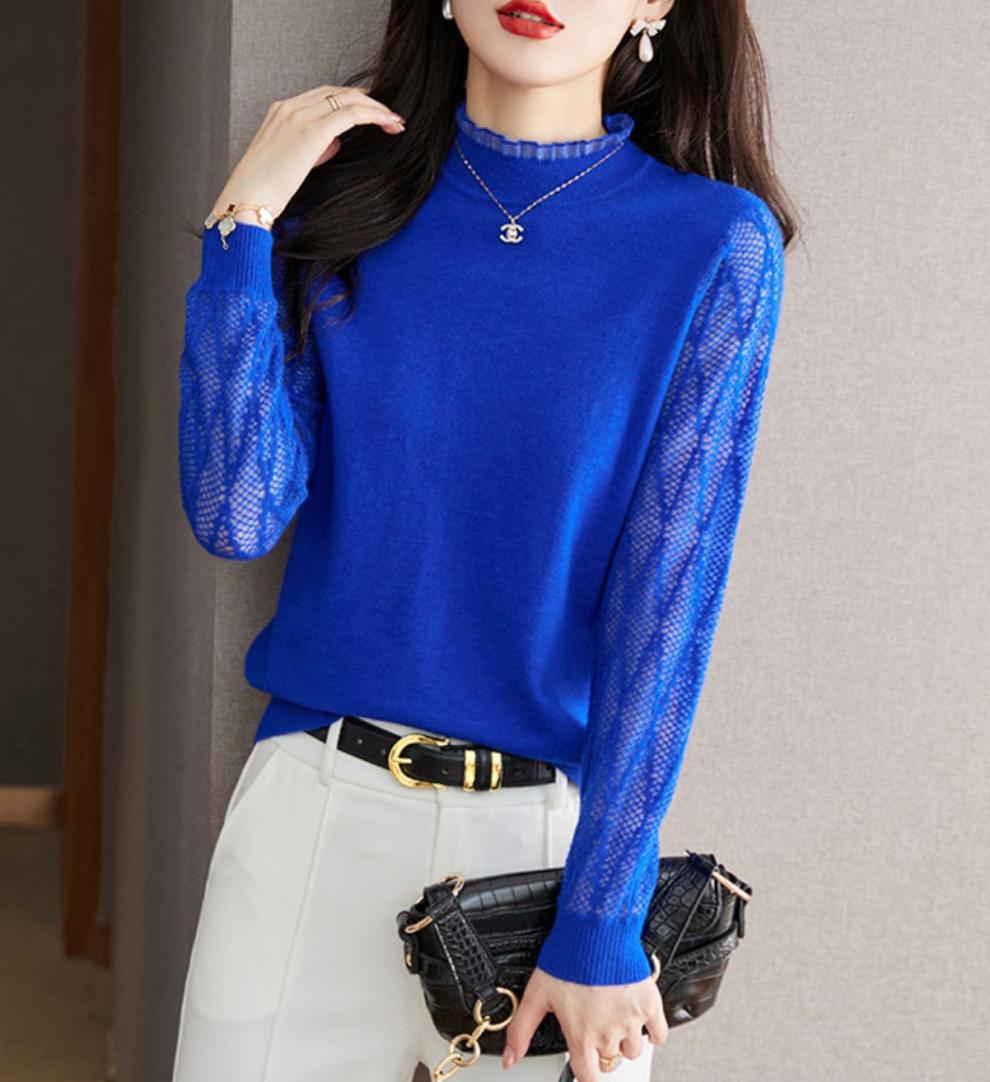 하프 하이 칼라 레이스베이스 셔츠 여자의 봄 2024 새로운 내부 탑 니트 셔츠 블랙 스웨터 봄스토어 가기