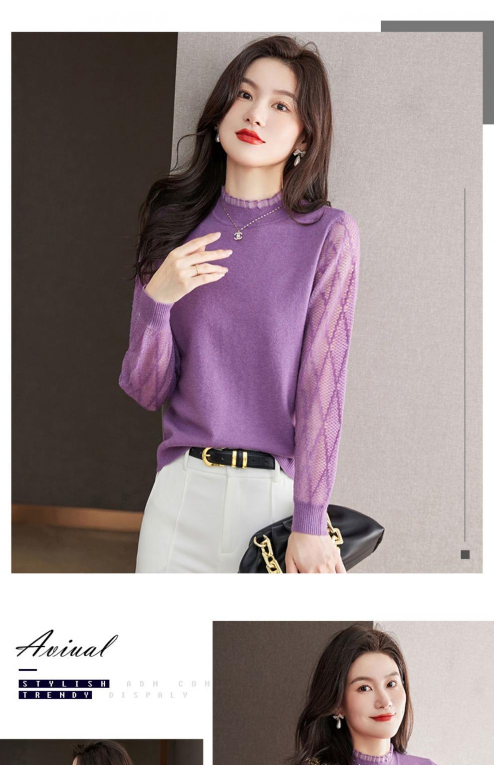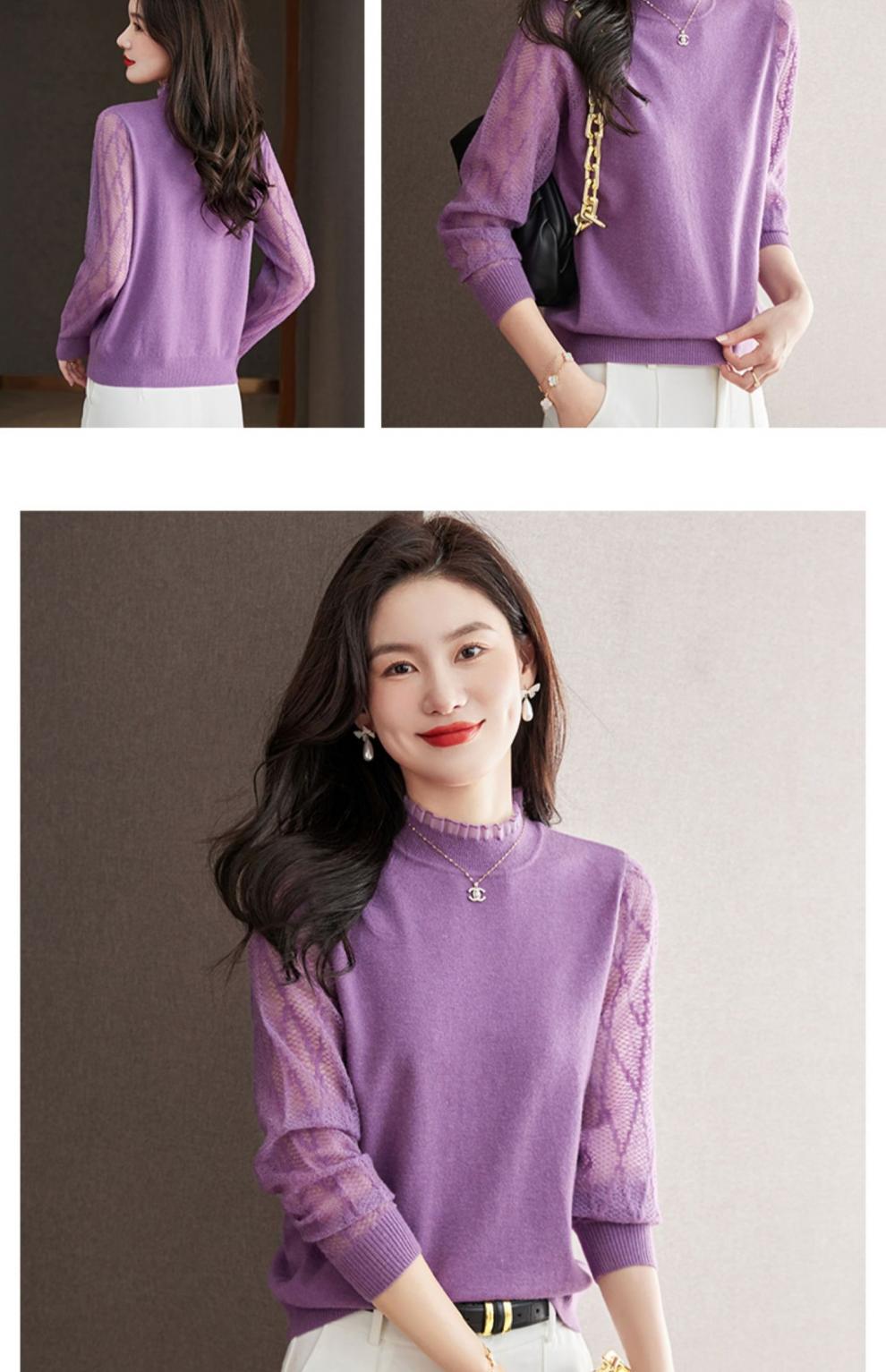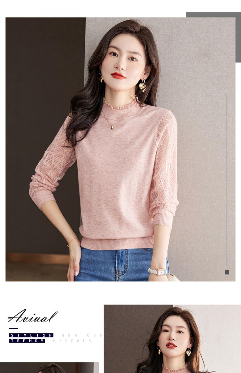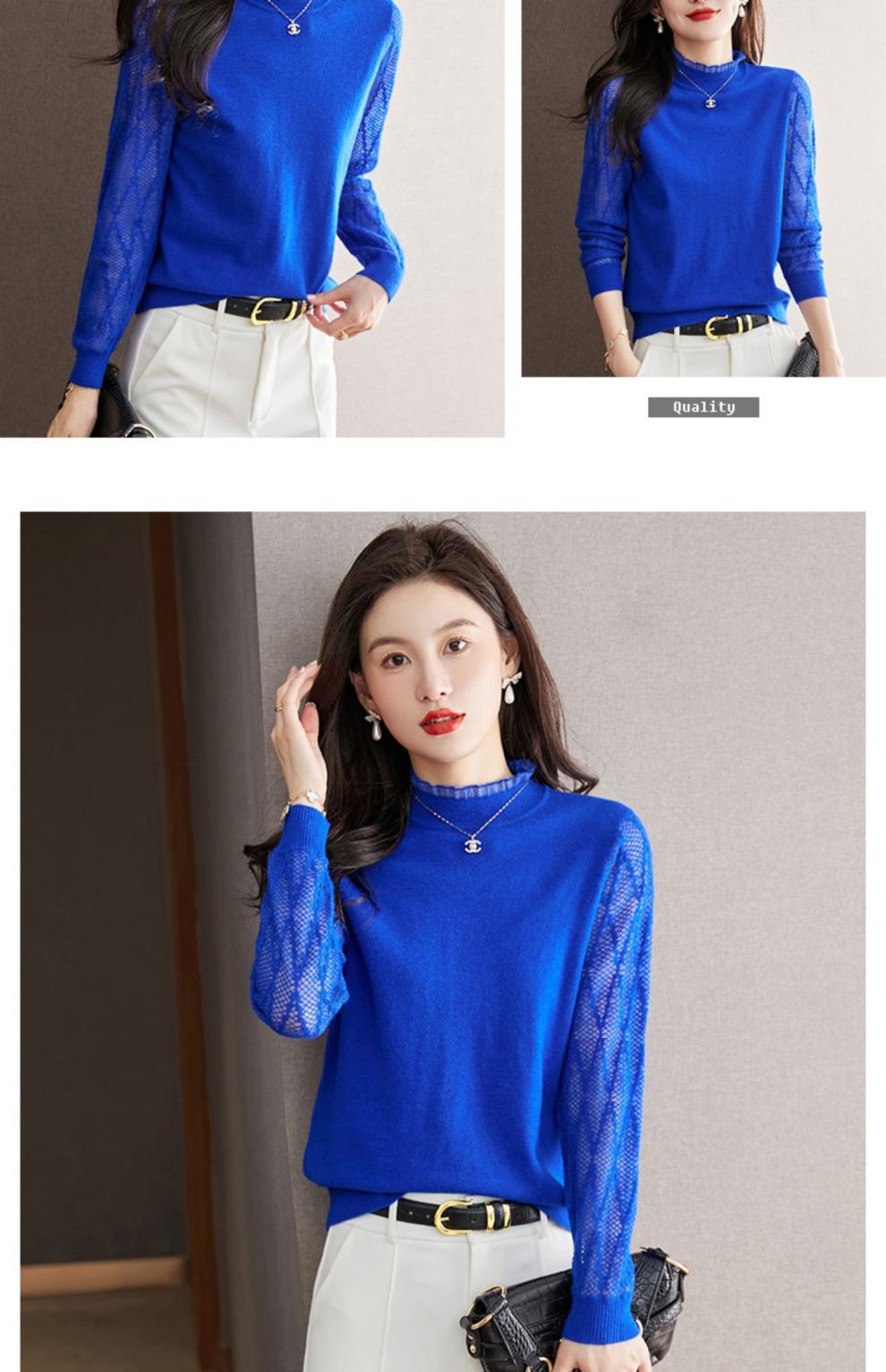 하프 하이 칼라 레이스베이스 셔츠 여자의 봄 2024 새로운 내부 탑 니트 셔츠 블랙 스웨터 봄스토어 가기