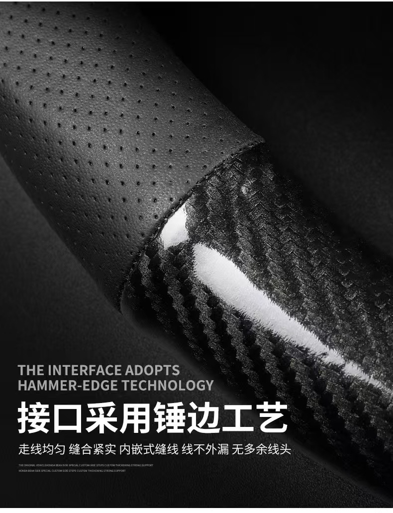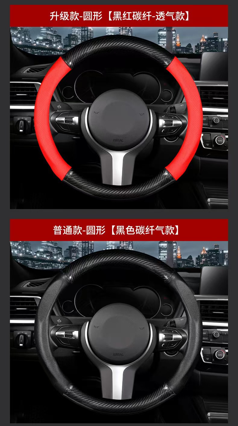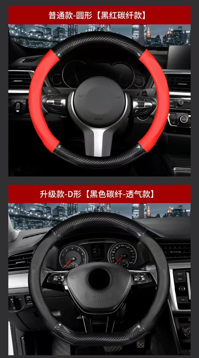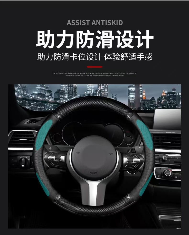 국경 간 자동차 탄소 섬유 패턴 스티어링 휠 커버 사계절 보편적 인 미끄럼 방지 땀 흡수성 손 재봉 핸들 커버 내부 장식