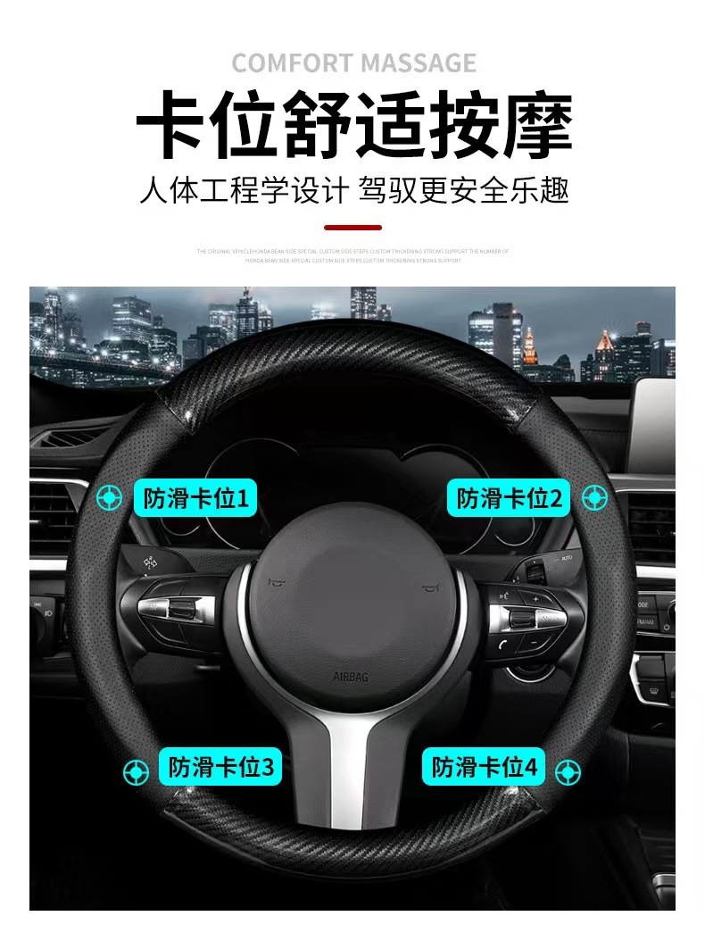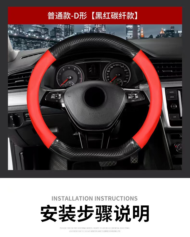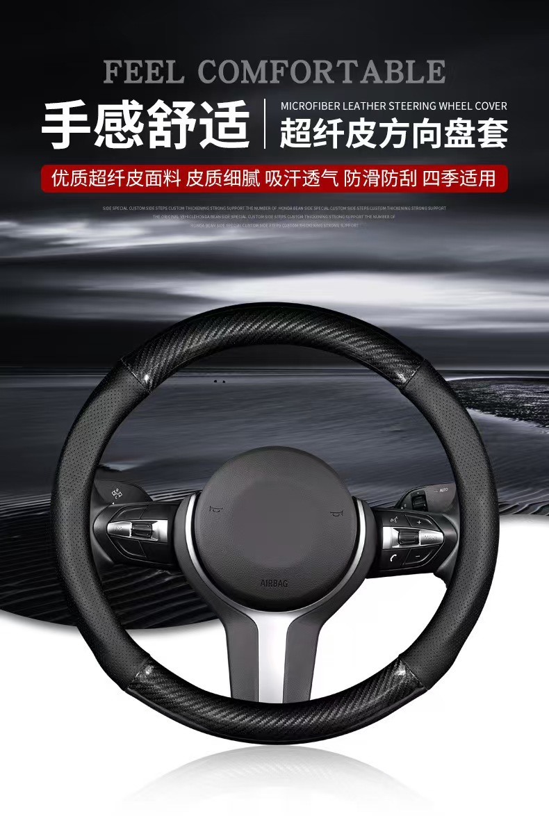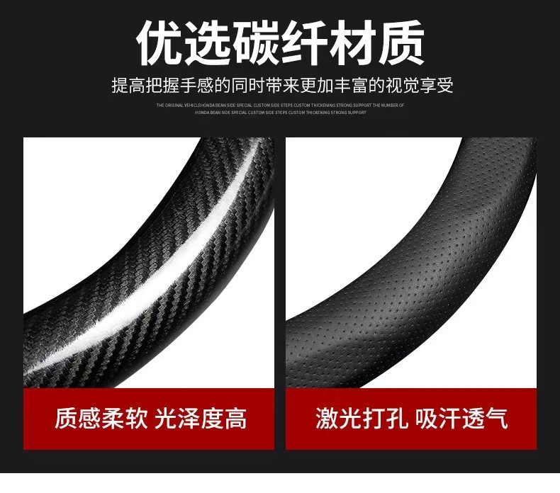 국경 간 자동차 탄소 섬유 패턴 스티어링 휠 커버 사계절 보편적 인 미끄럼 방지 땀 흡수성 손 재봉 핸들 커버 내부 장식