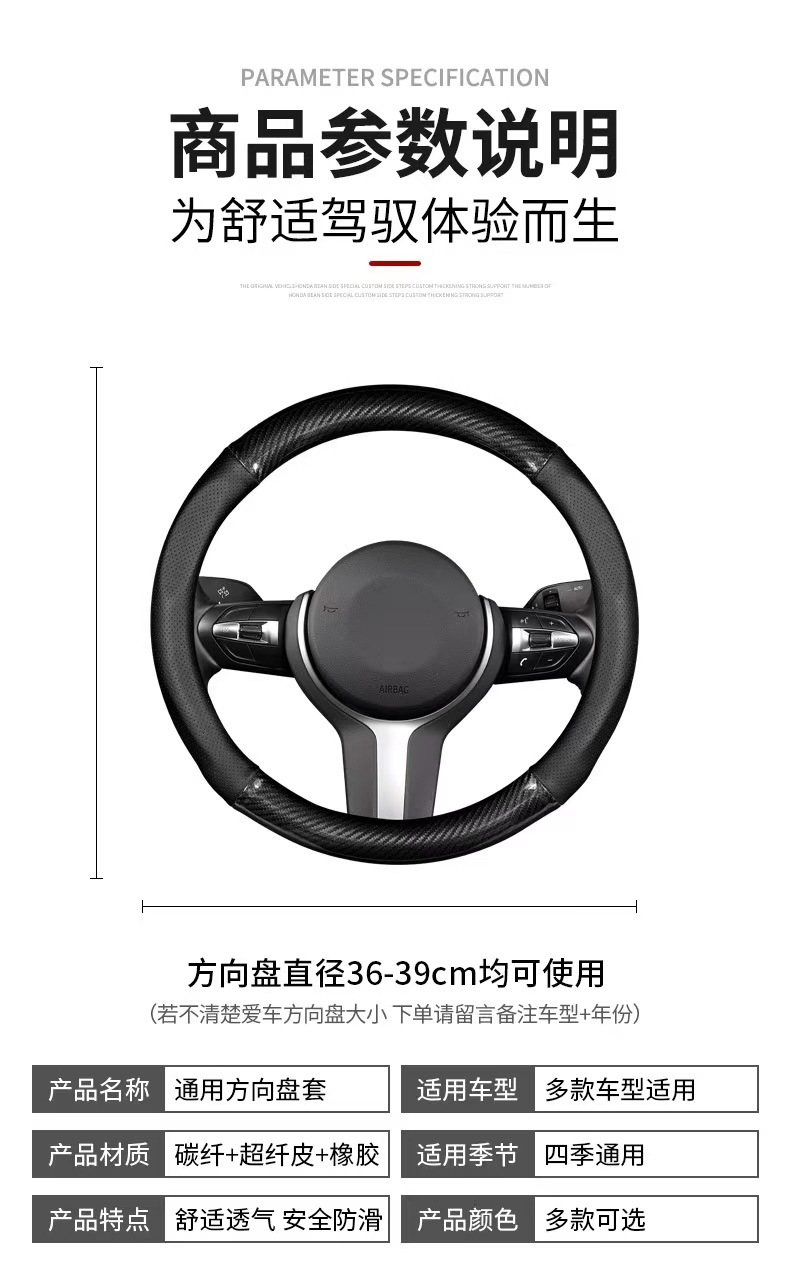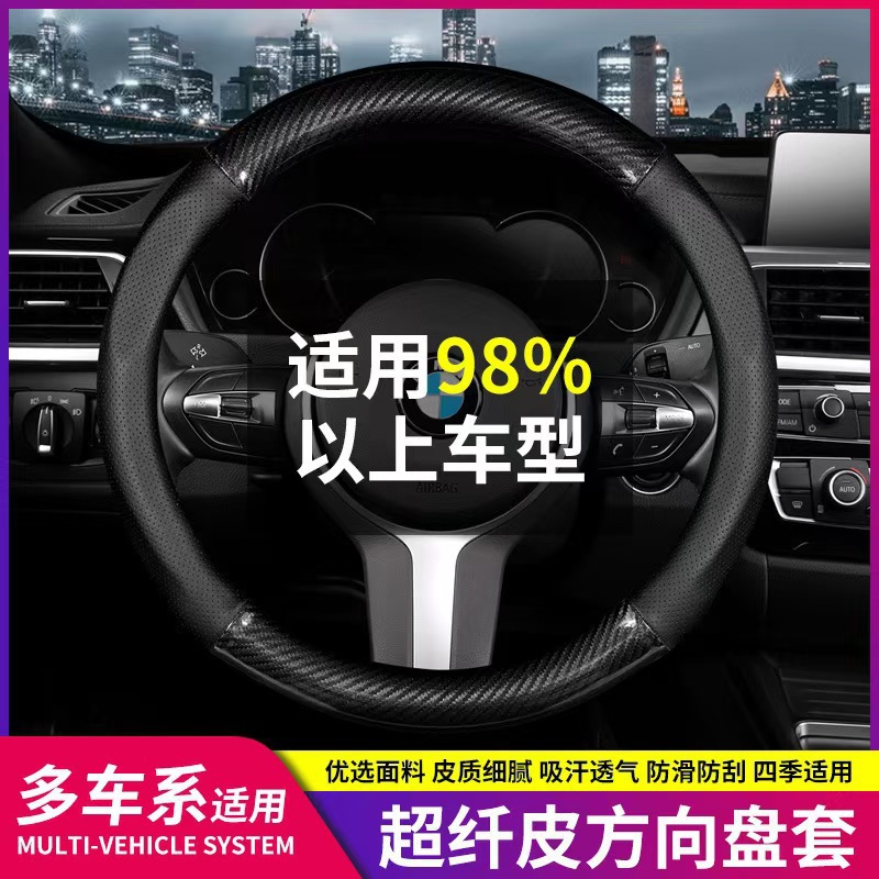 국경 간 자동차 탄소 섬유 패턴 스티어링 휠 커버 사계절 보편적 인 미끄럼 방지 땀 흡수성 손 재봉 핸들 커버 내부 장식스토어 가기