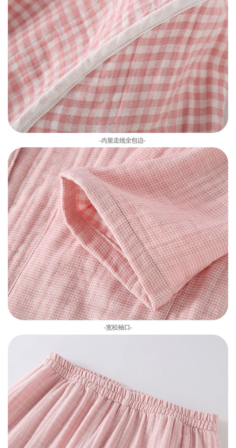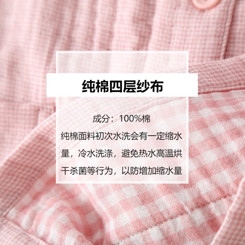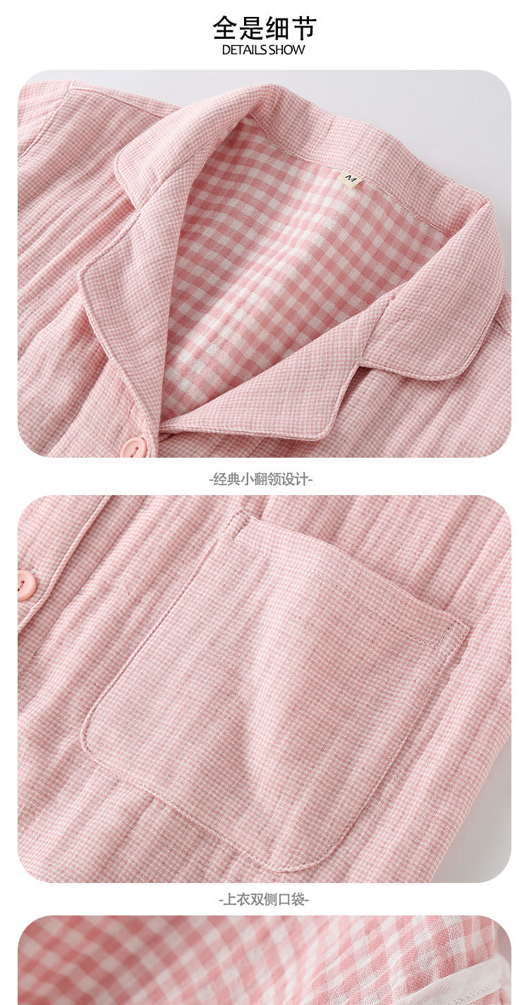무인쇄 일본식 고급 두꺼운 순면 4겹 거즈 잠옷 여성용 체크무늬 남성용 긴팔 홈웨어 가을 겨울 세트스토어 가기