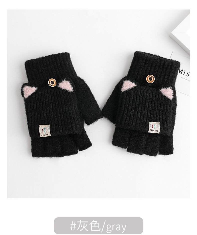겨울 여성용 장갑, 귀엽고 따뜻하며 오픈 핑거, 반장갑, 여아용 플립 탑, 다섯 손가락 장갑, 부드러운 글쓰기용 장갑, 중대형 어린이용