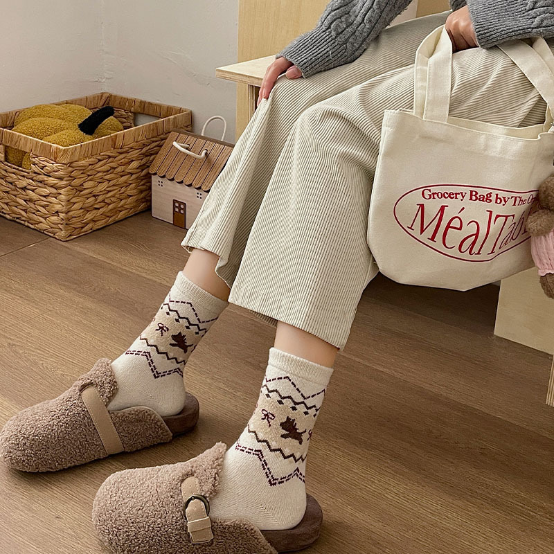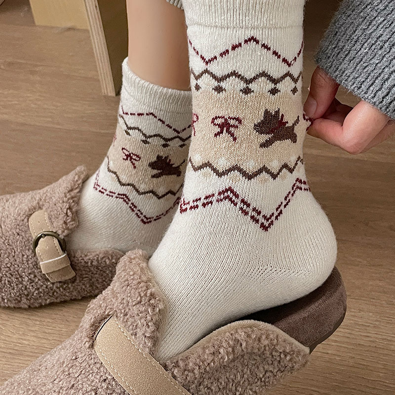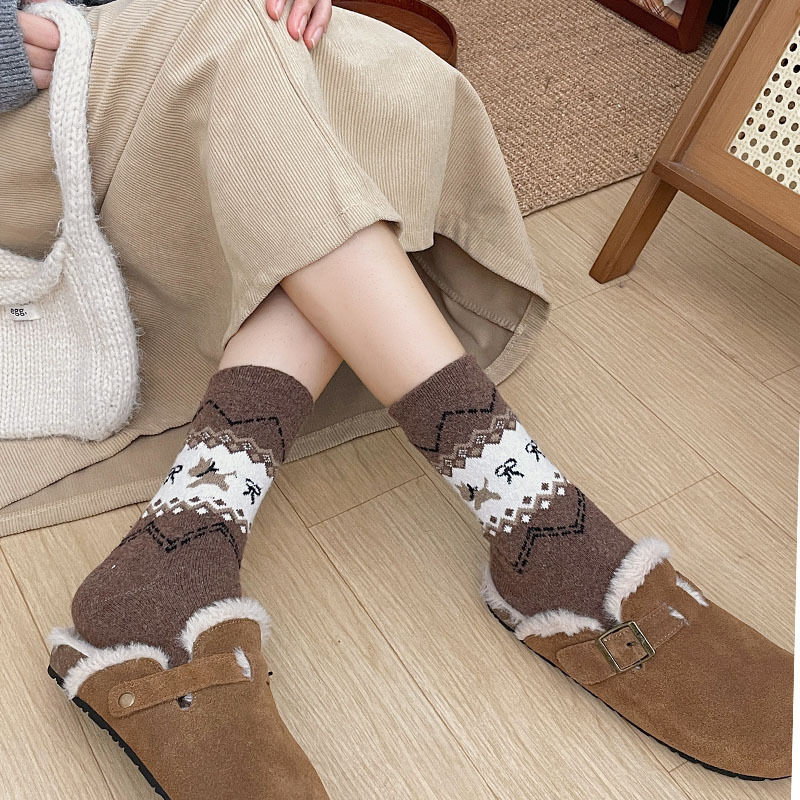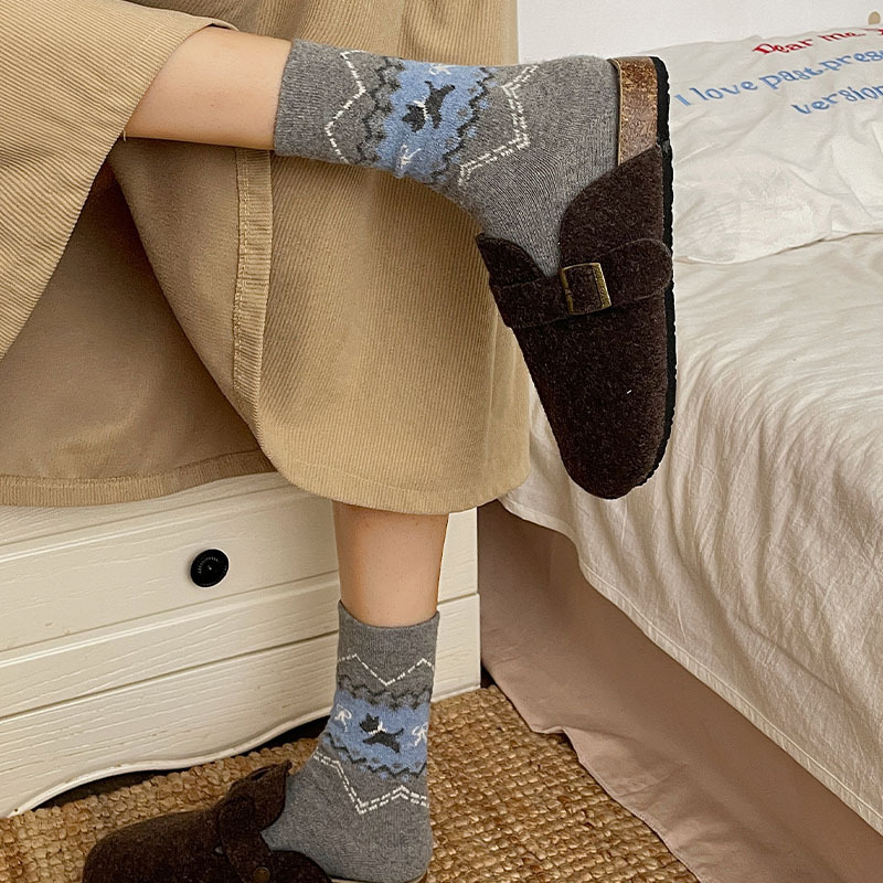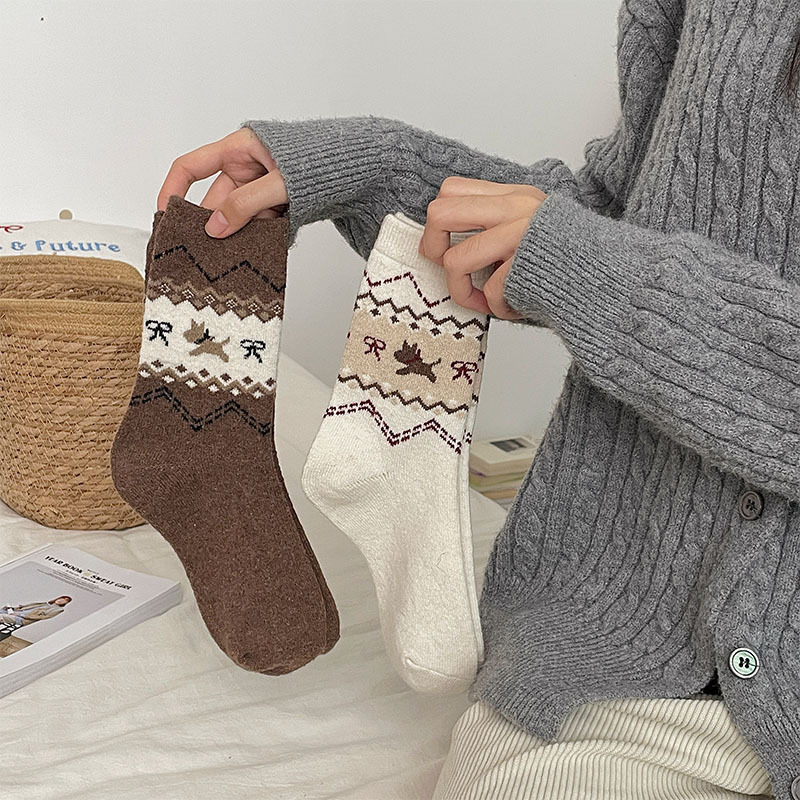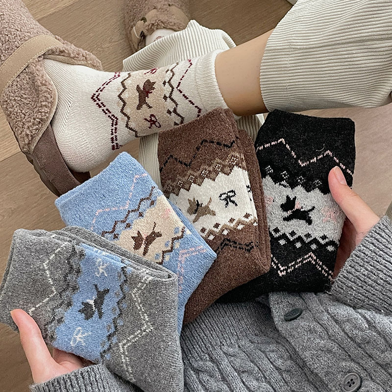 일본 대학 스타일 어린이를위한 빈티지 양모 양말 가을과 겨울 두꺼운 따뜻한 귀여운 Bowknot 강아지 양말