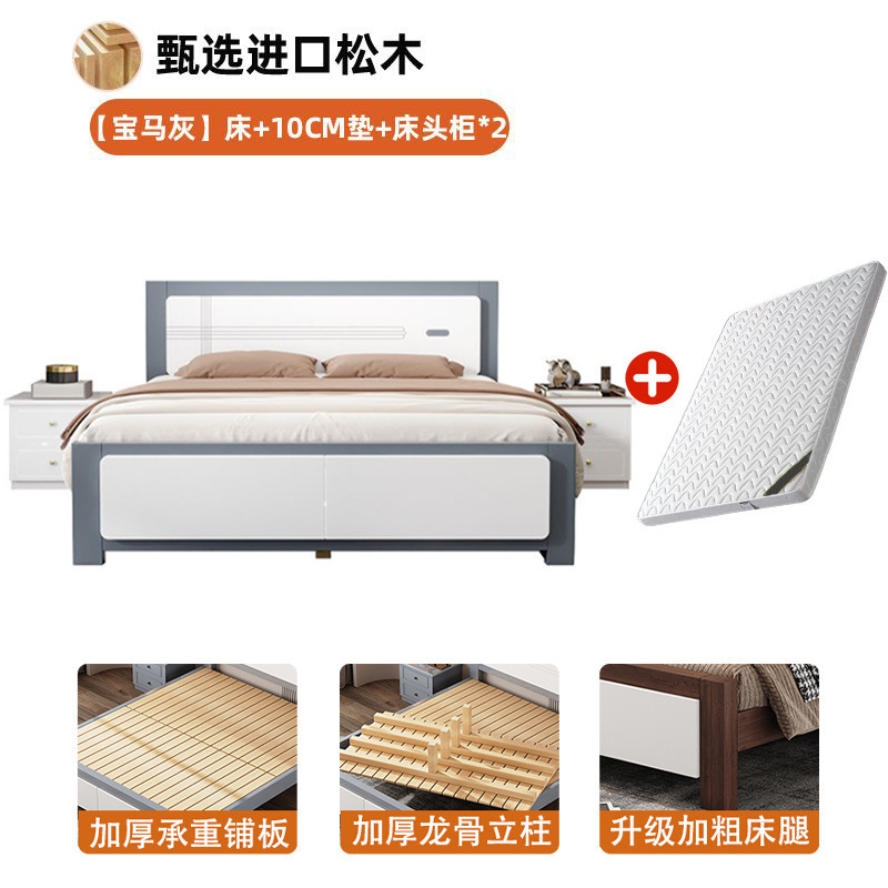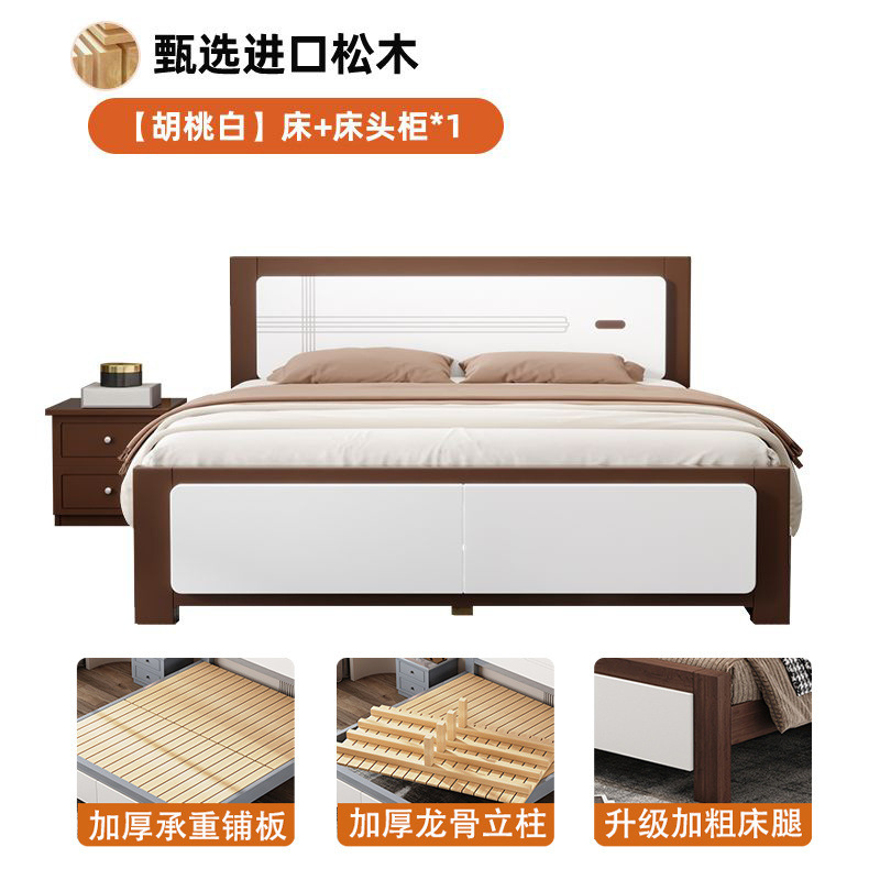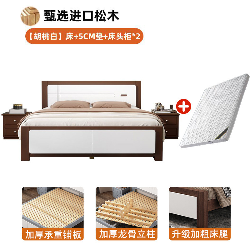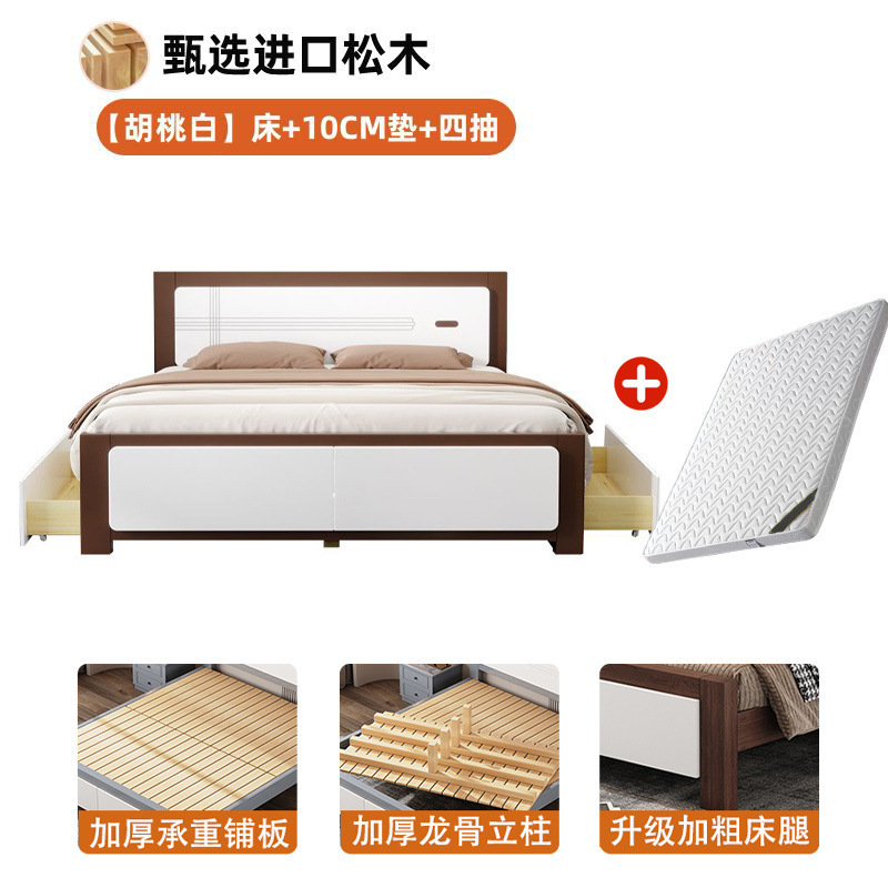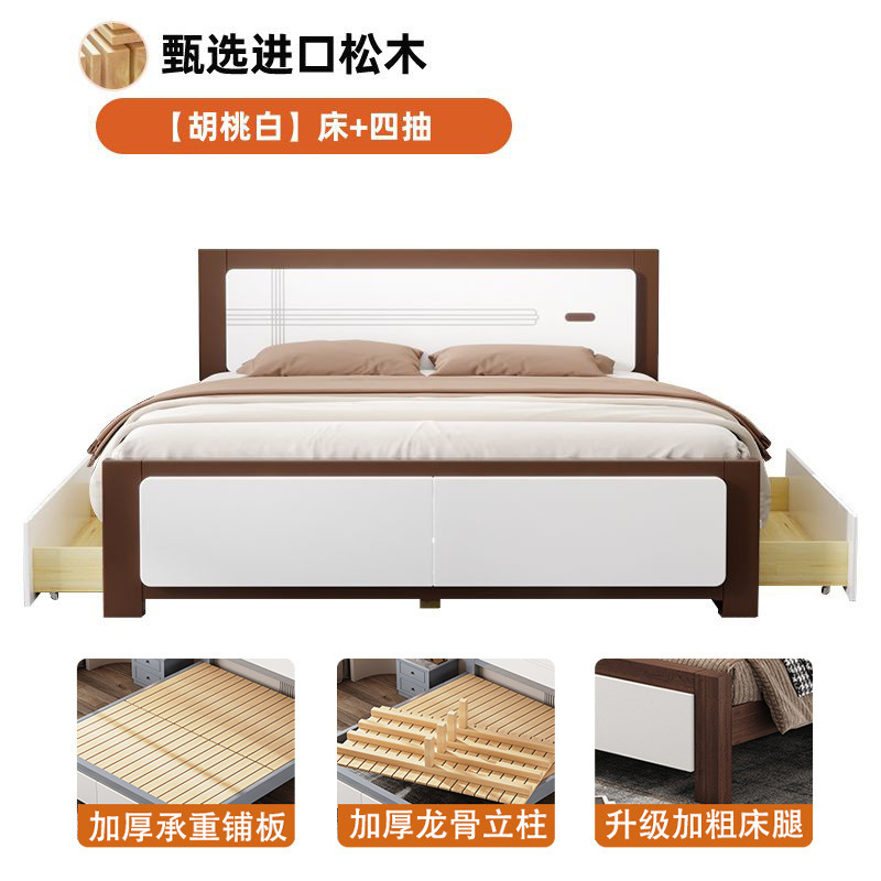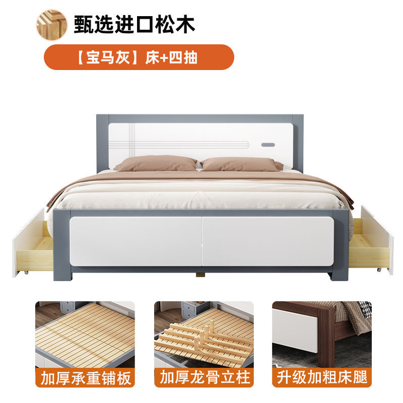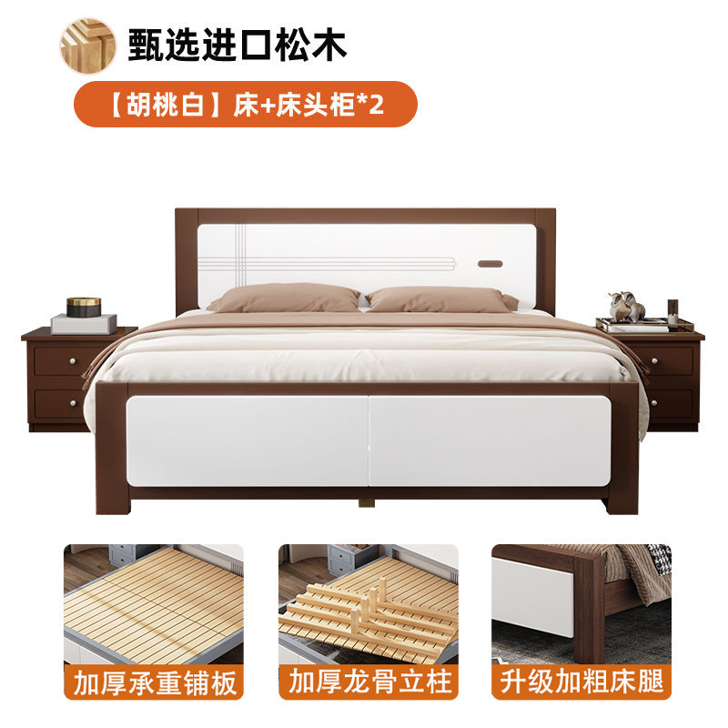 전체 단단한 나무 침대 간단한 단단한 나무 침대 현대 더블 침대 미터 마스터 침실 퀸 침대 1.5 미터 가정용 1.8 저장 침대 웨딩 침대