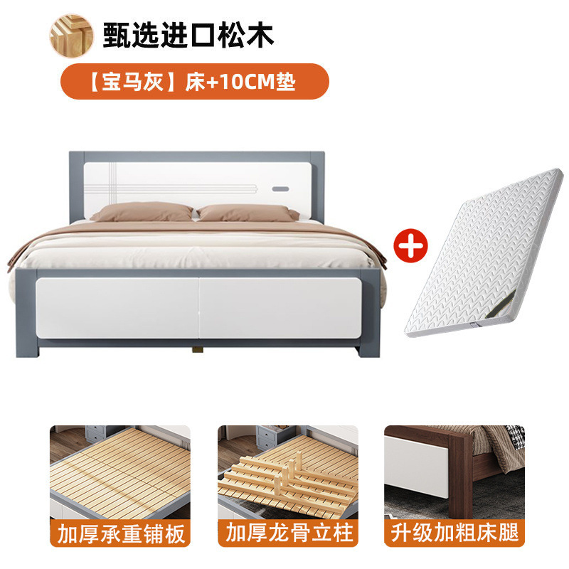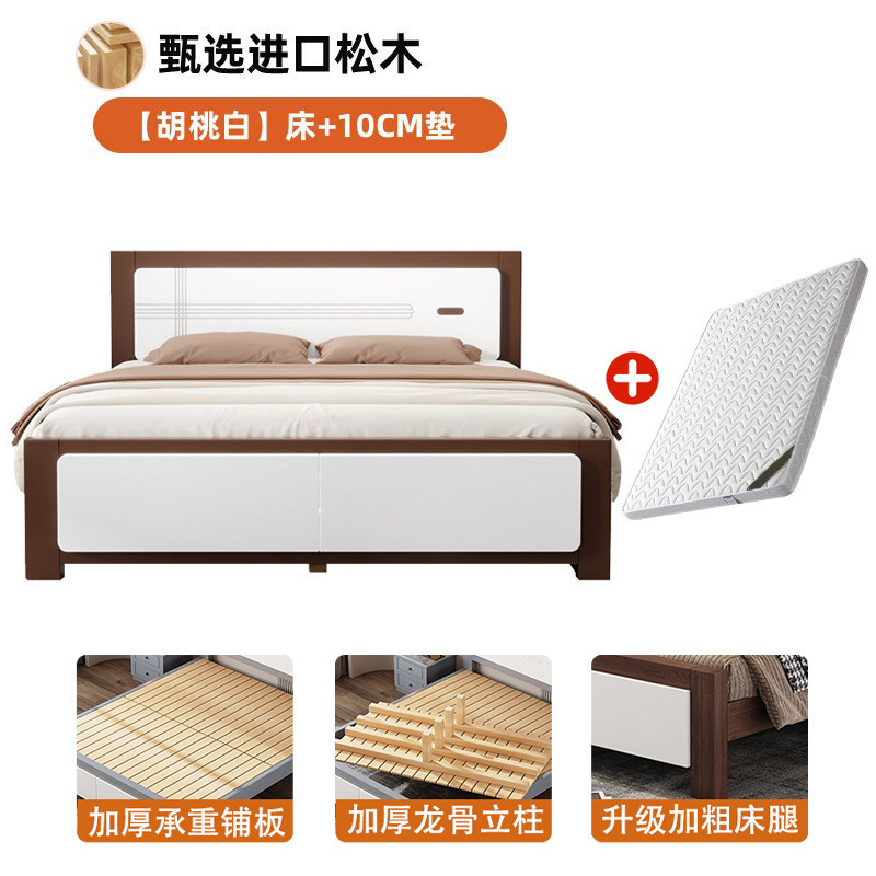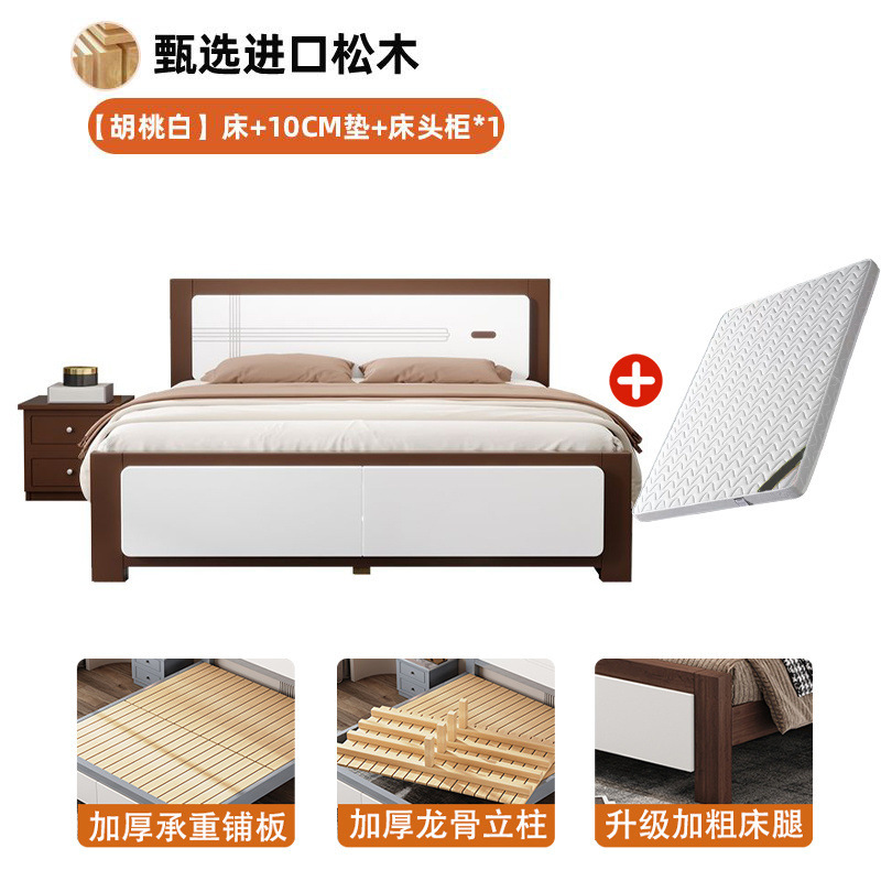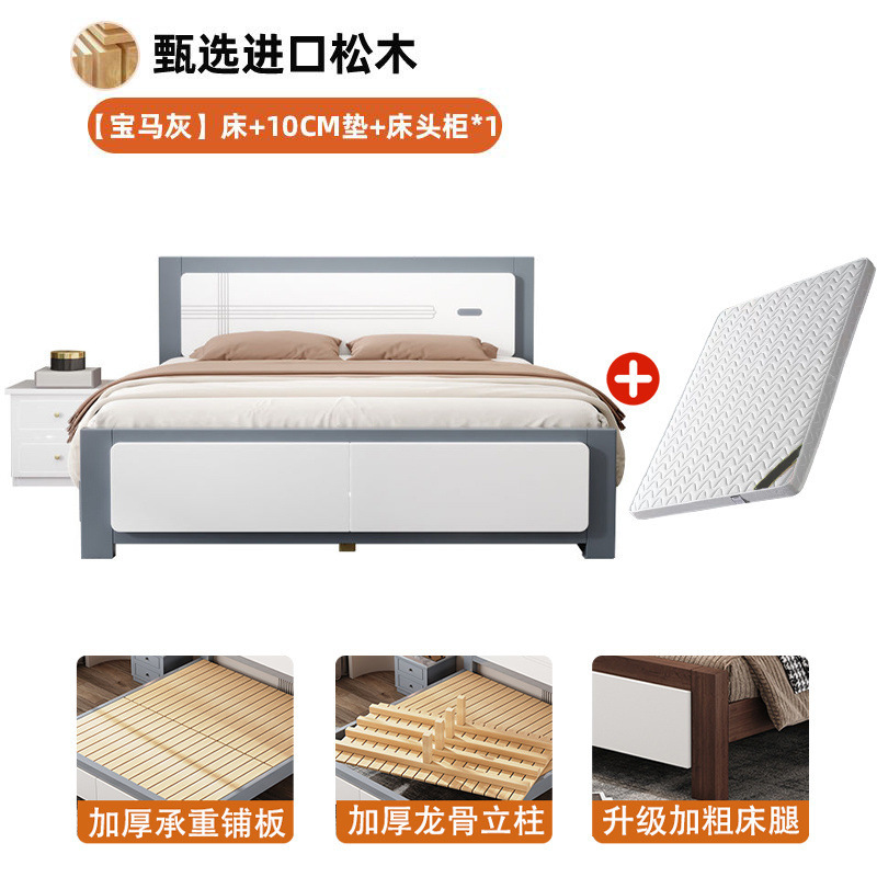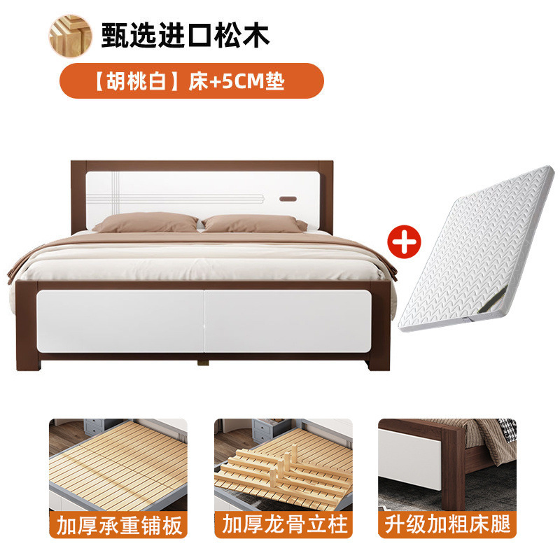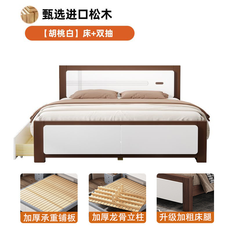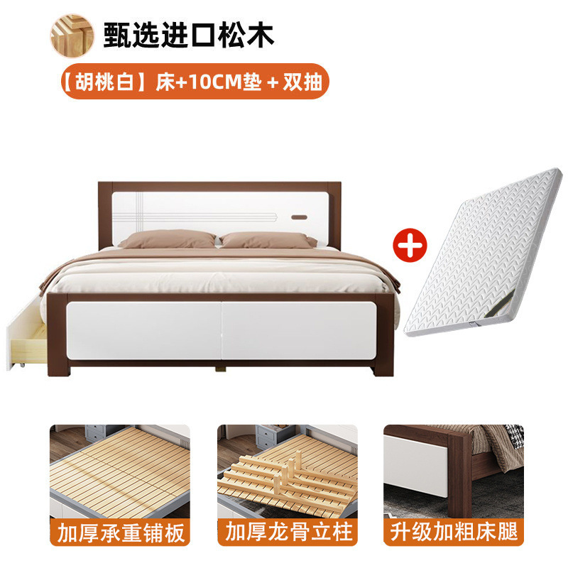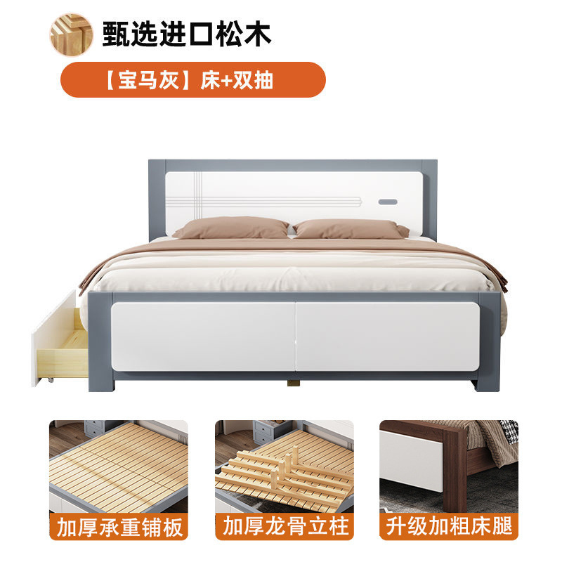 전체 단단한 나무 침대 간단한 단단한 나무 침대 현대 더블 침대 미터 마스터 침실 퀸 침대 1.5 미터 가정용 1.8 저장 침대 웨딩 침대