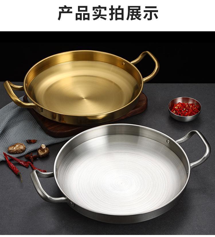 한국식 스테인리스 건조 냄비 해산물 냄비 부대 뜨거운 냄비 황금 평면 바닥 얕은 냄비 접시 접시 상업 Binaural Xiao Zhou