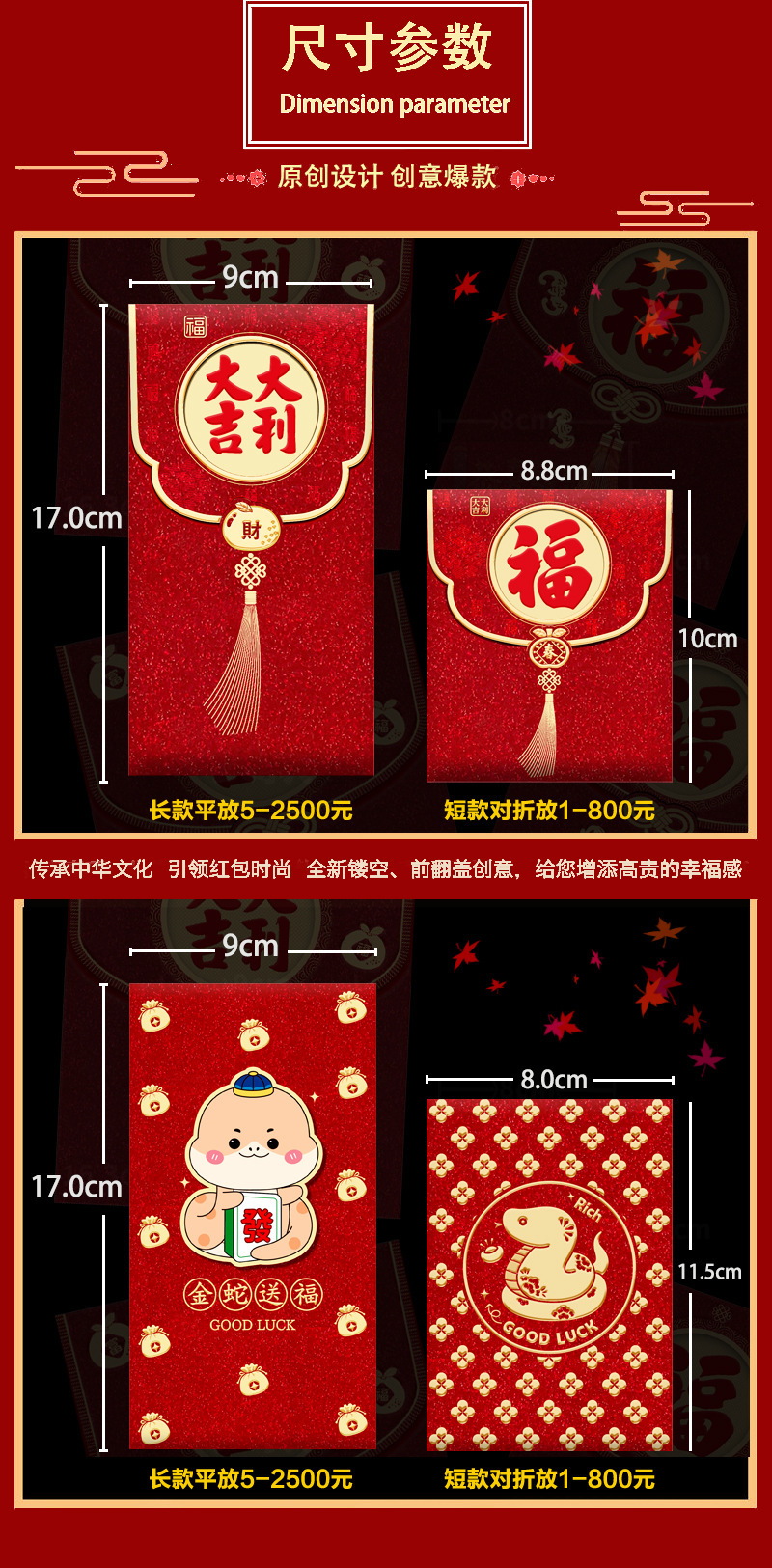 뱀의 해 붉은 봉투 새해 구정 봄 축제 붉은 봉투 위대한 포춘 가방 헤푸 새해 가방 큰 스몰 사이즈 빨간 봉투 결혼식 이익