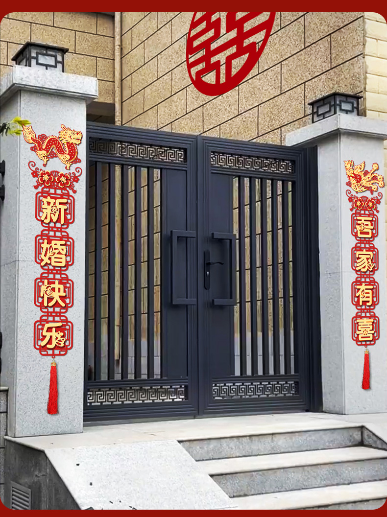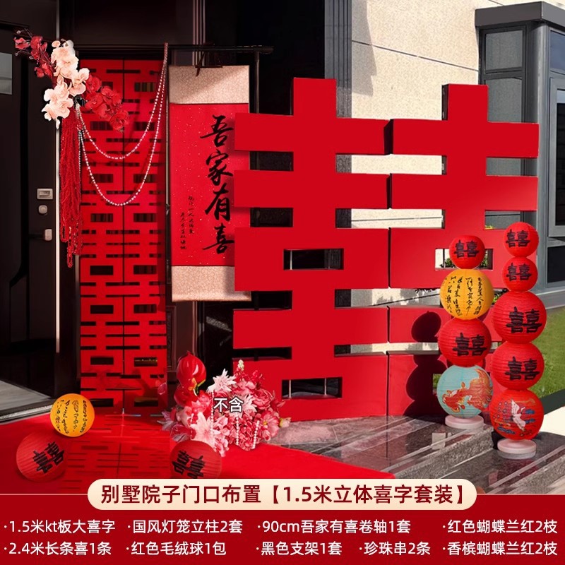 농촌 안뜰 서브 게이트 웨딩 커플 웨딩 단어 스티커 장식 웨딩 레이아웃 자체 건축 집 남성 느낌