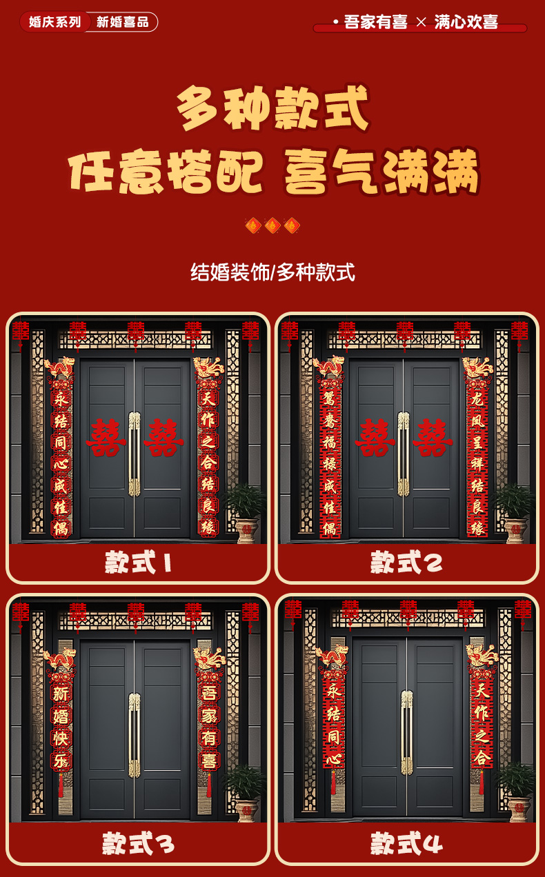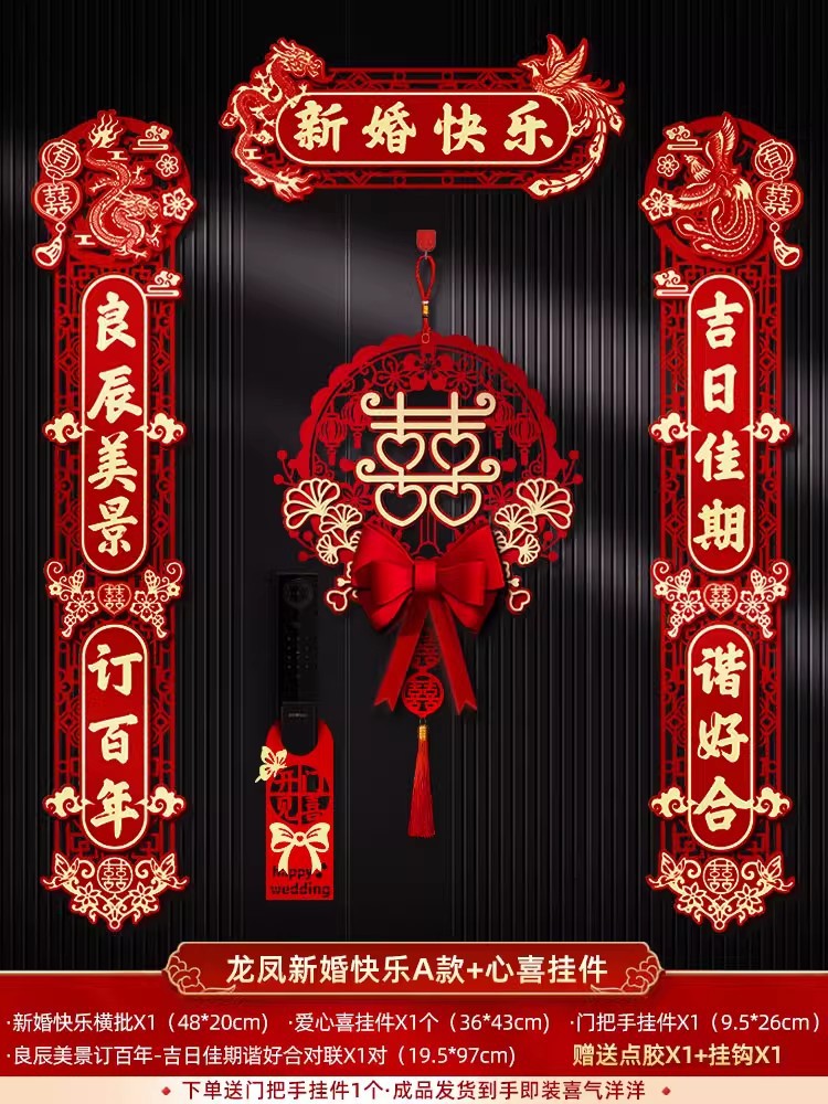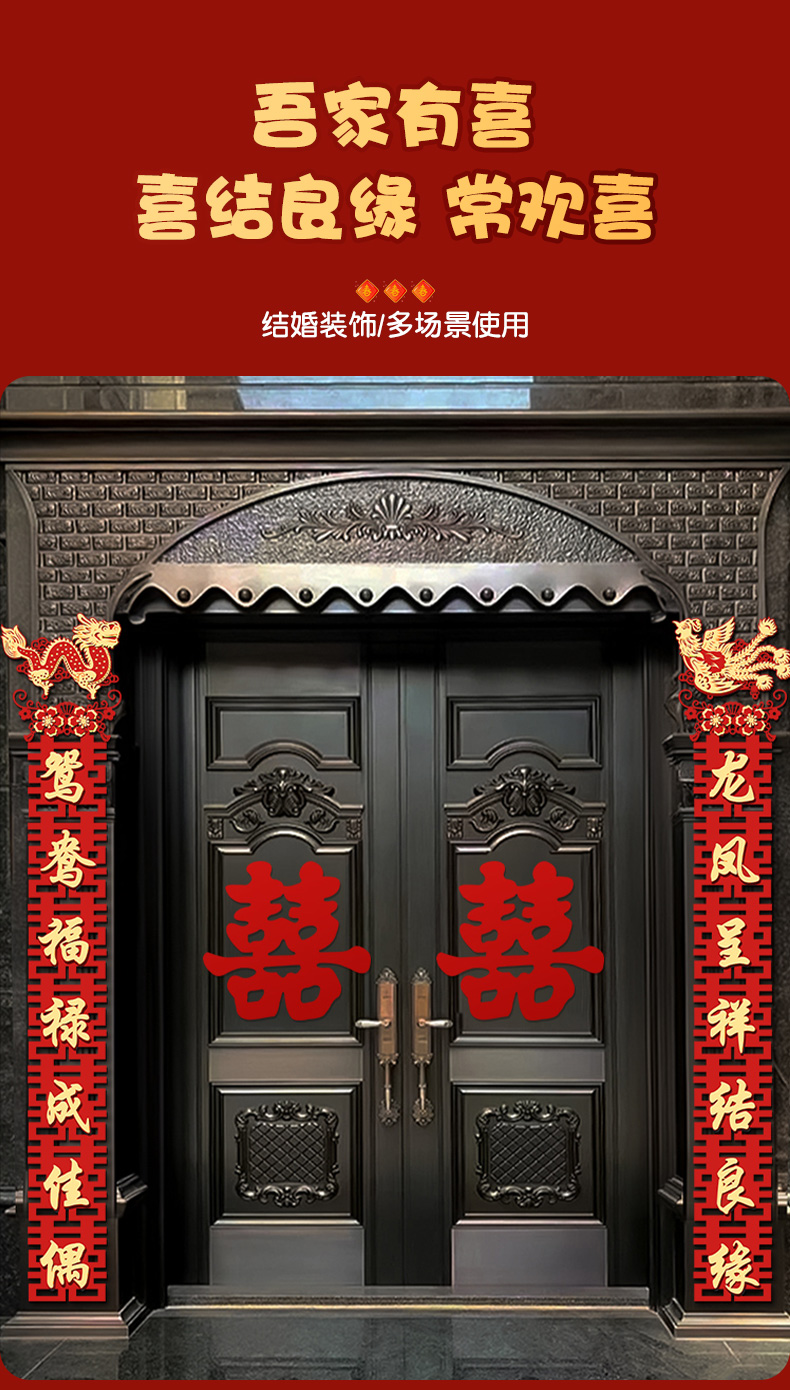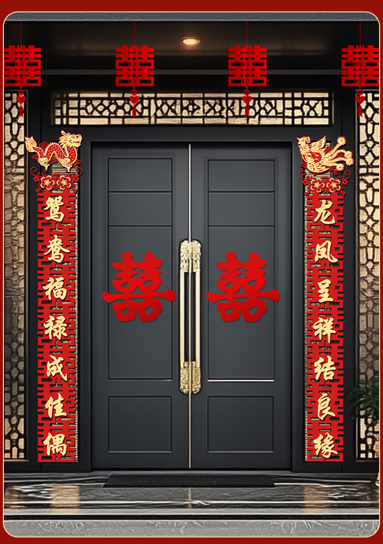 • 2.3m 안뜰 문에 적합한 몰려든 천 유형 E [용과 봉황의 결혼 대련 1세트]